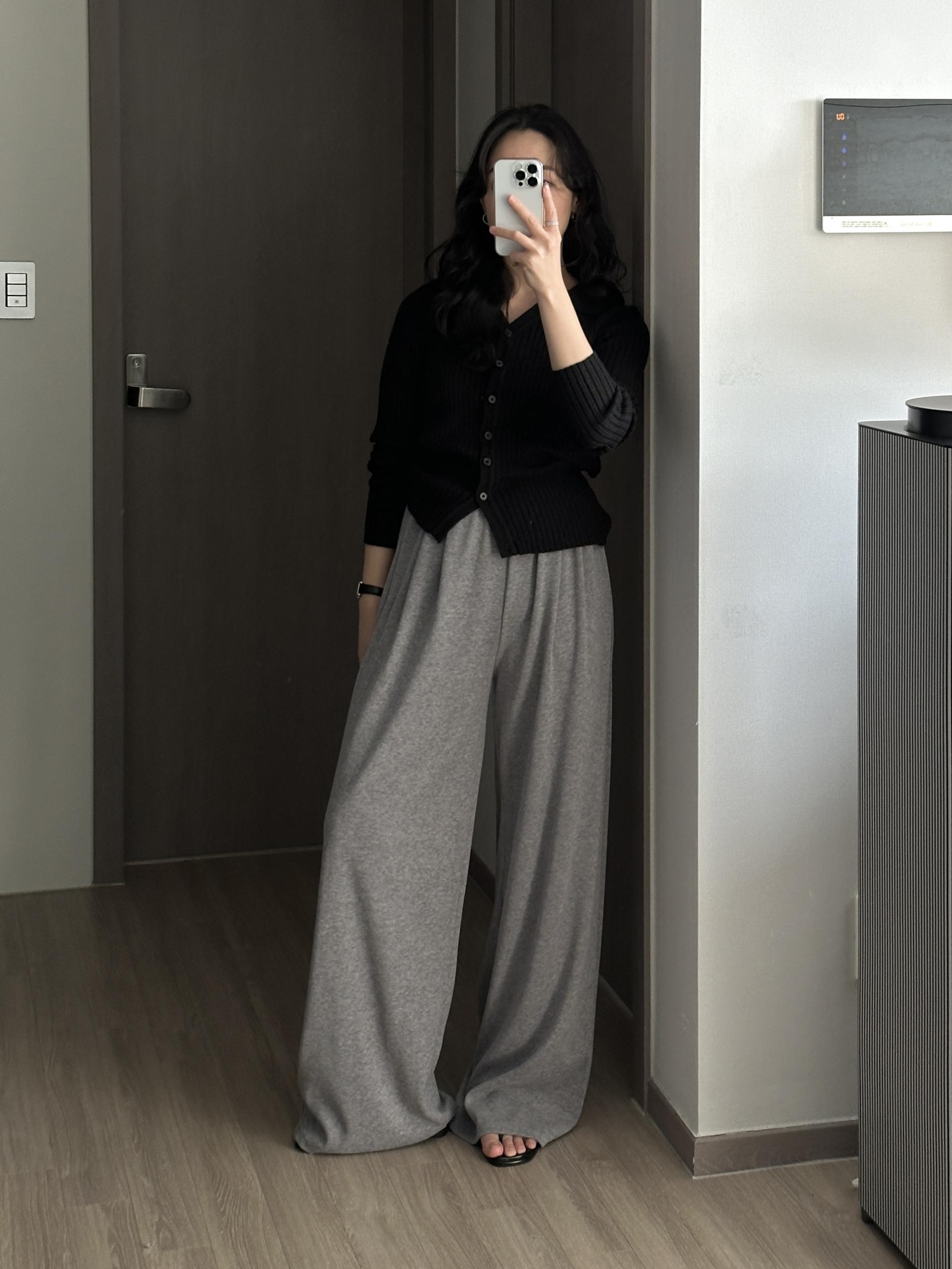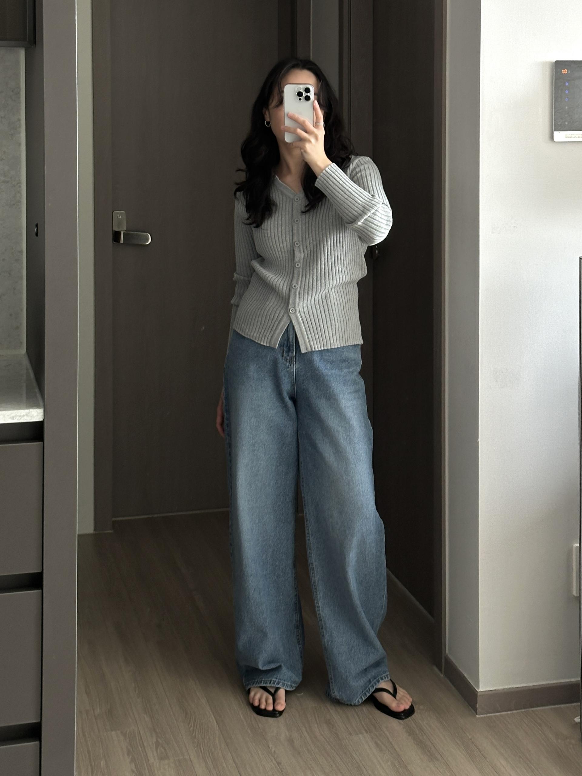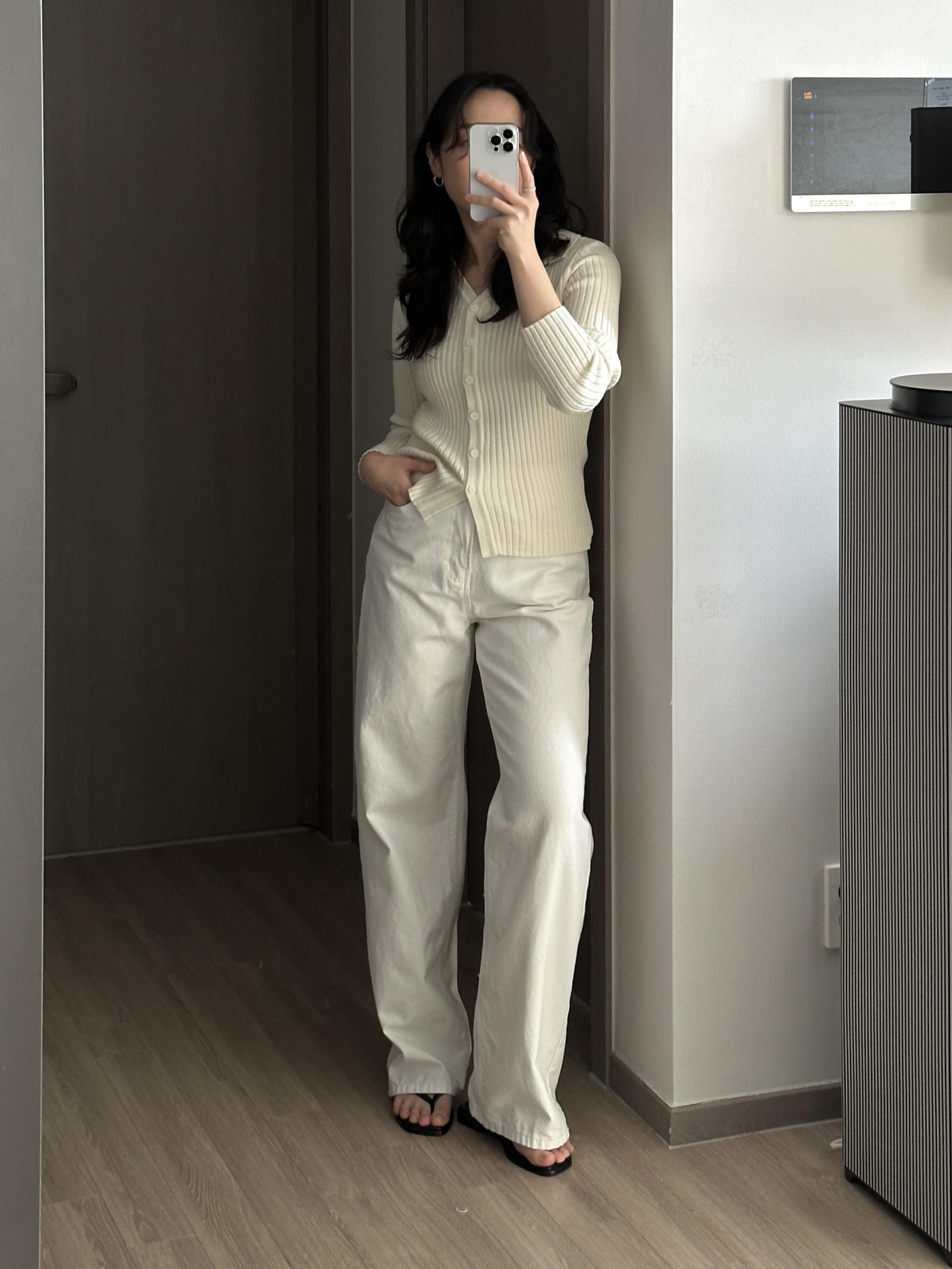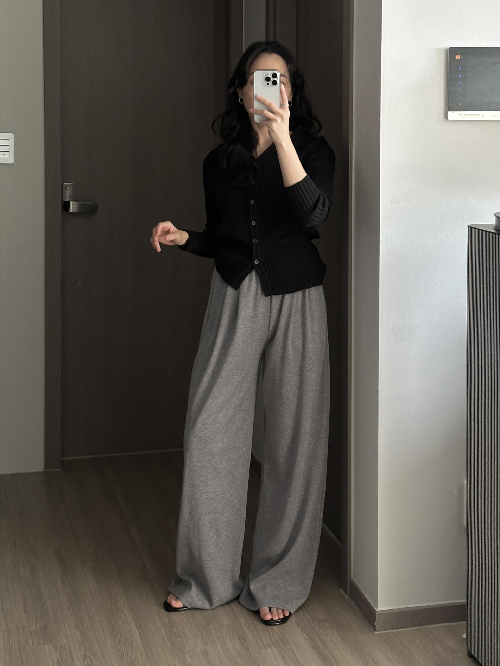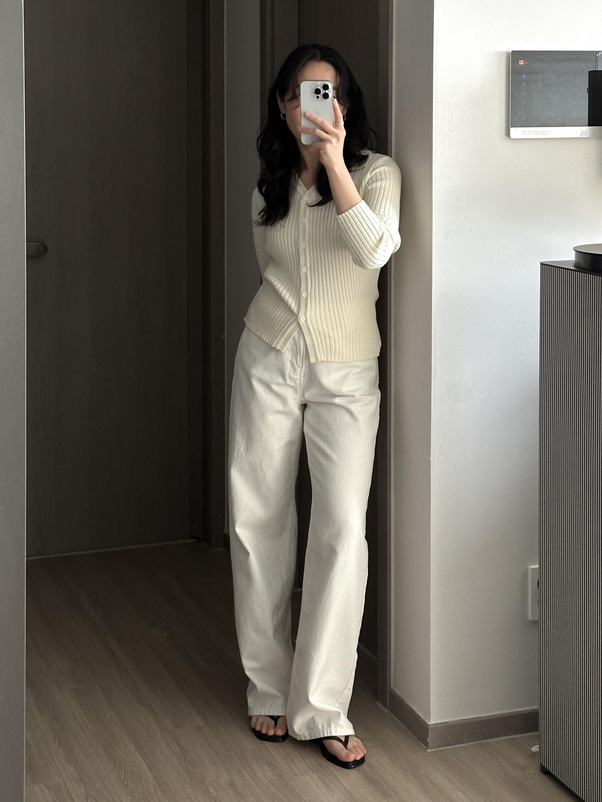 잔잔한 세로 골지로 슬림하게 떨어지는 가디건입니다.