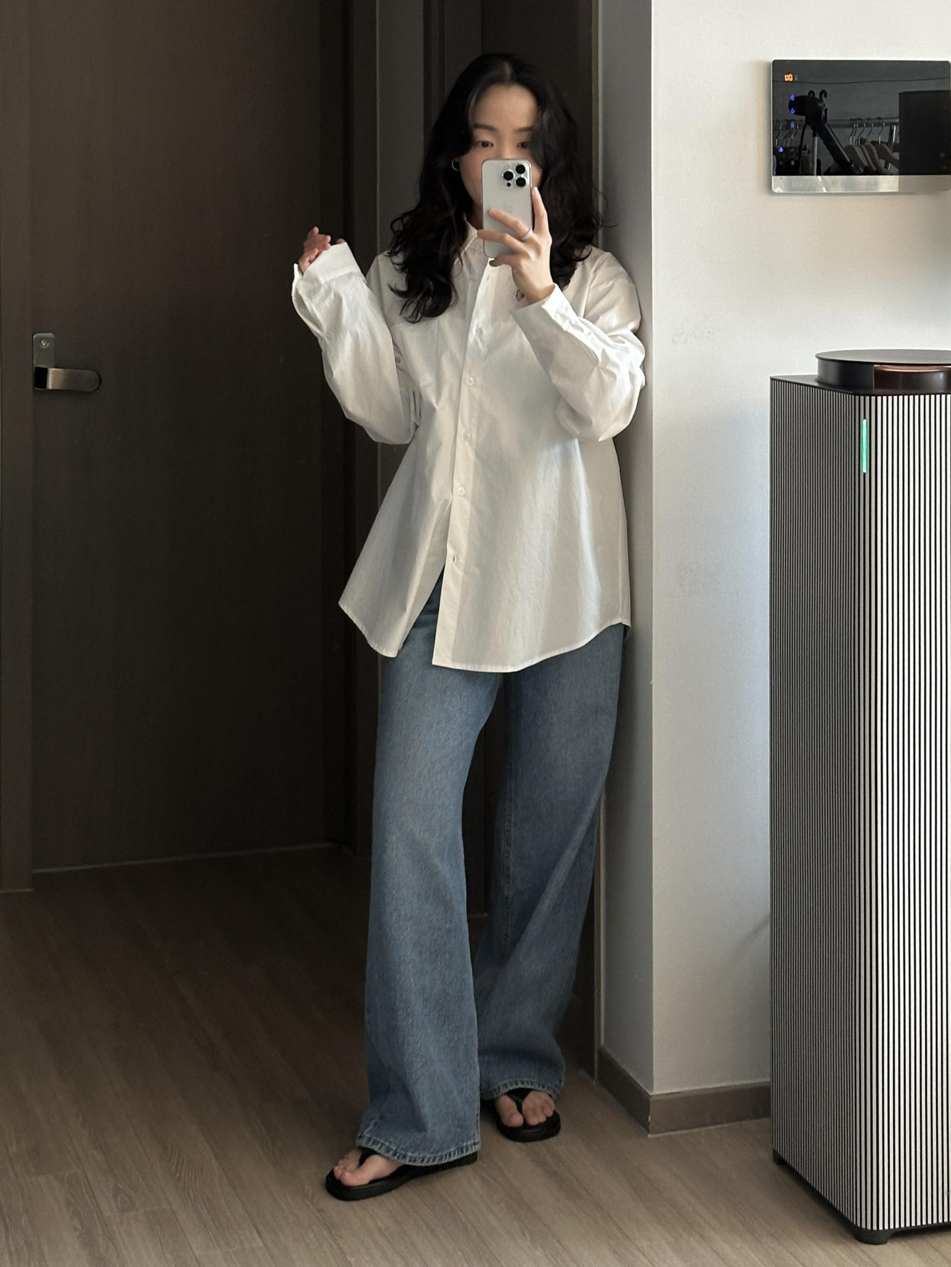 힘 있게 떨어지는 실루엣에 과하지 않은 워싱으로