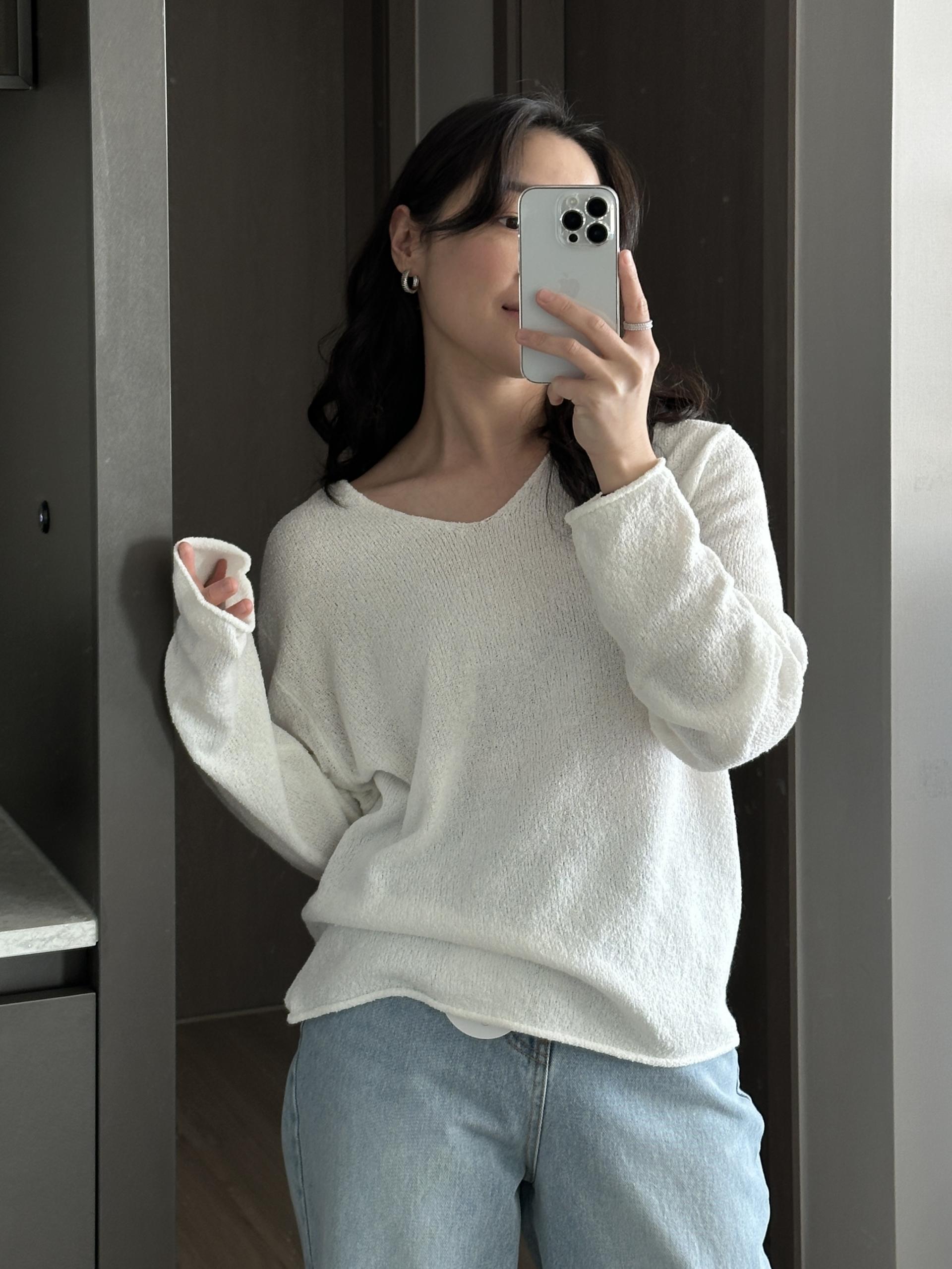 러프한 결감이 고급스러운 플로우 니트입니다.