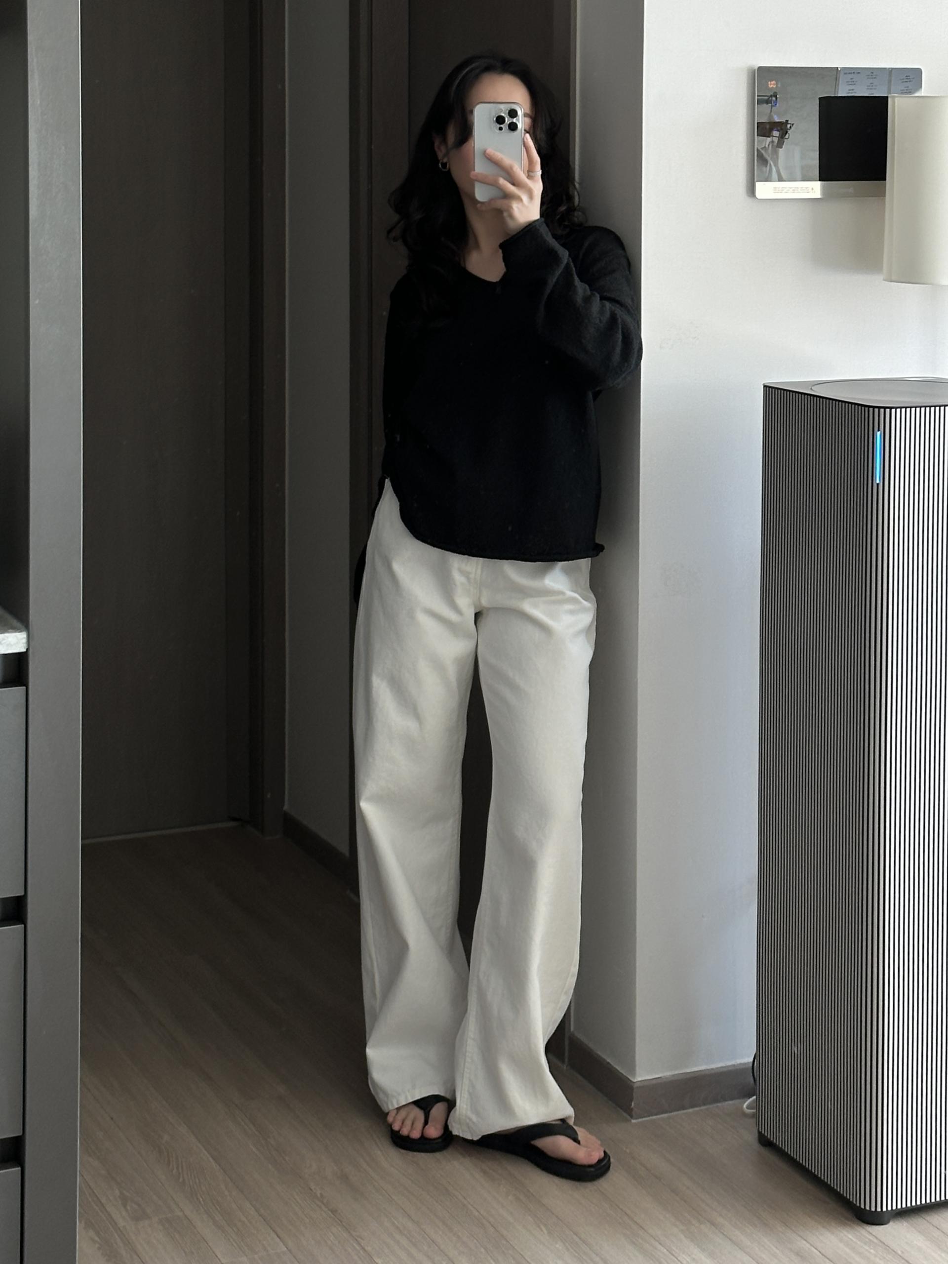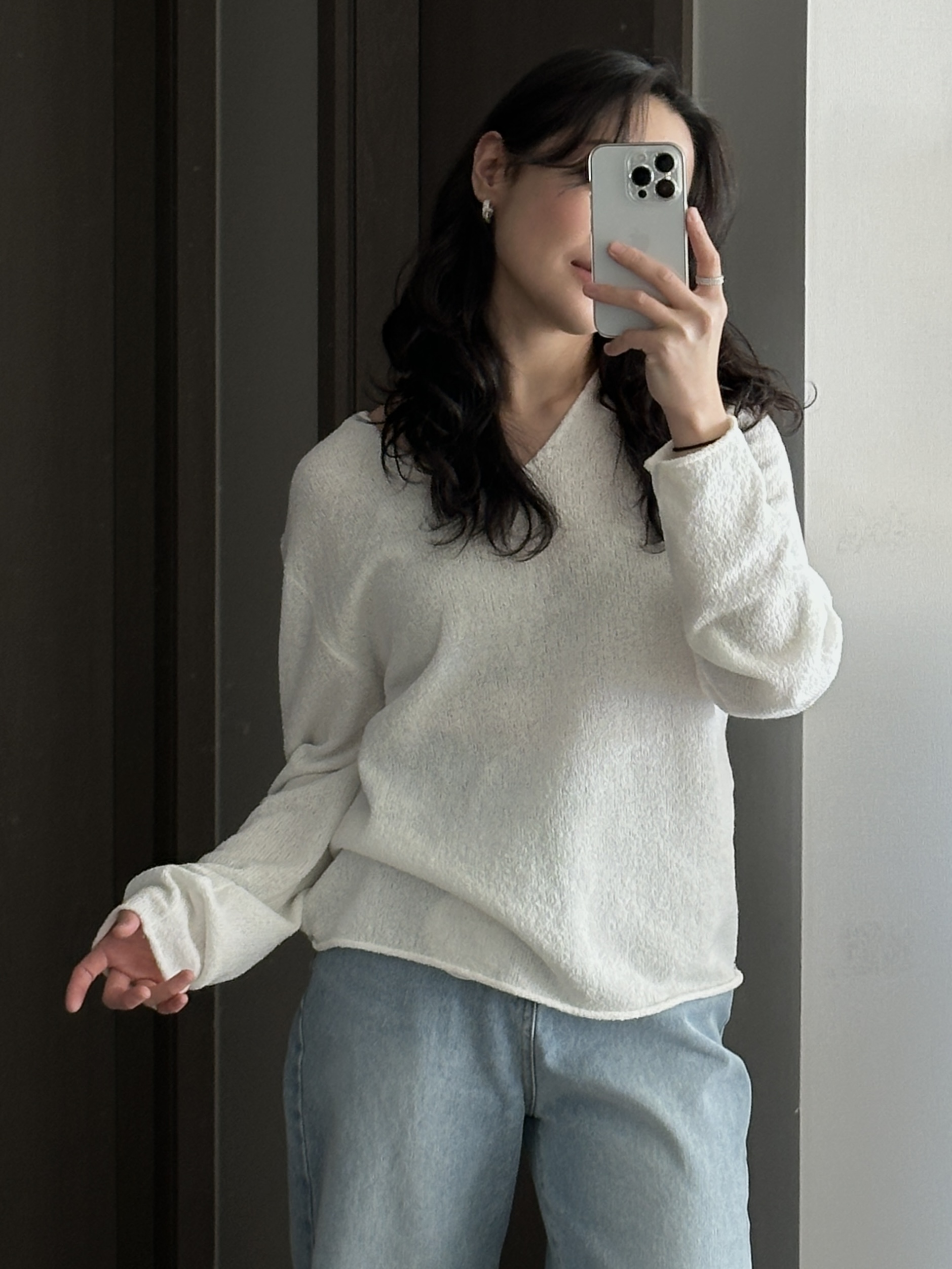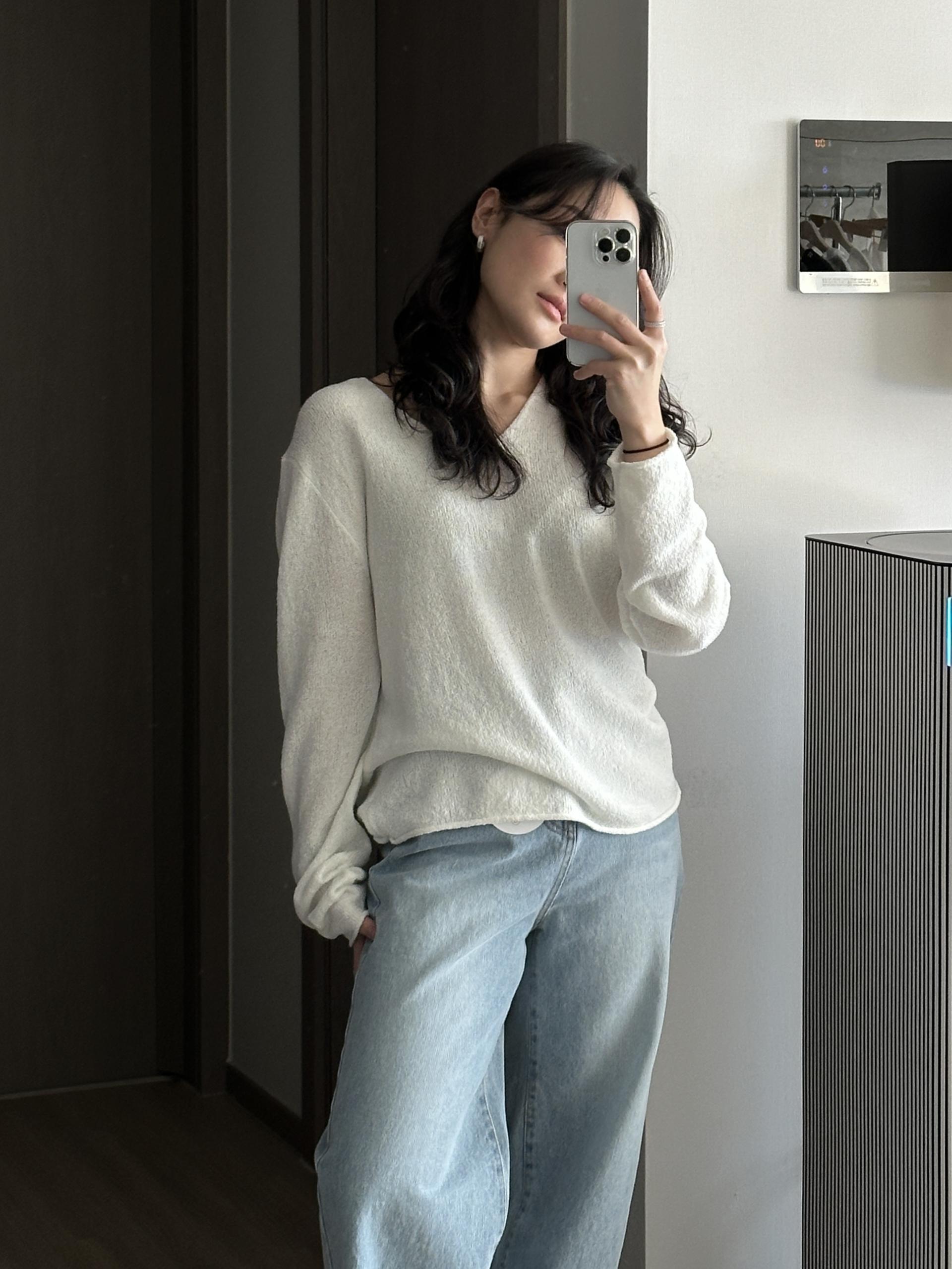 자연스럽게 흐르는 라인에 쇄골이 살짝 드러나는 넥라인으로