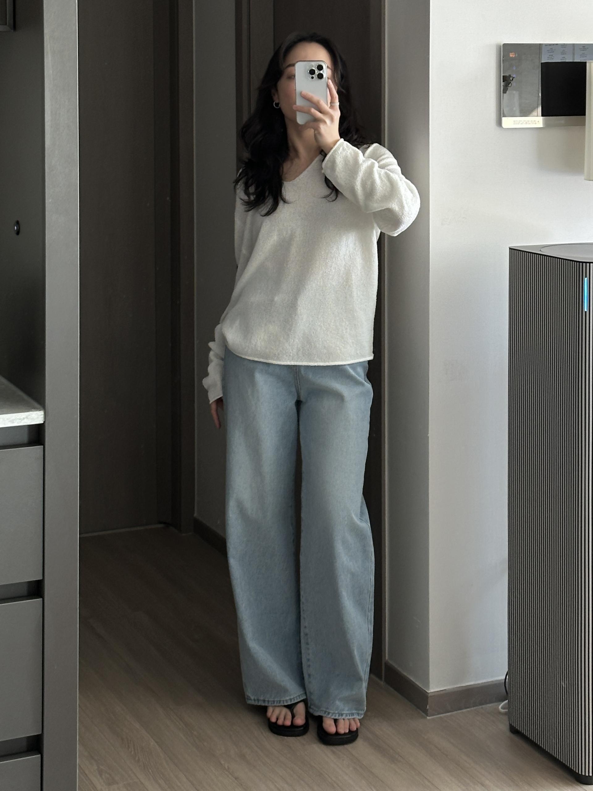 여리여리해 보이면서 넉넉한 품으로 편안하게 입기에 좋아요.
