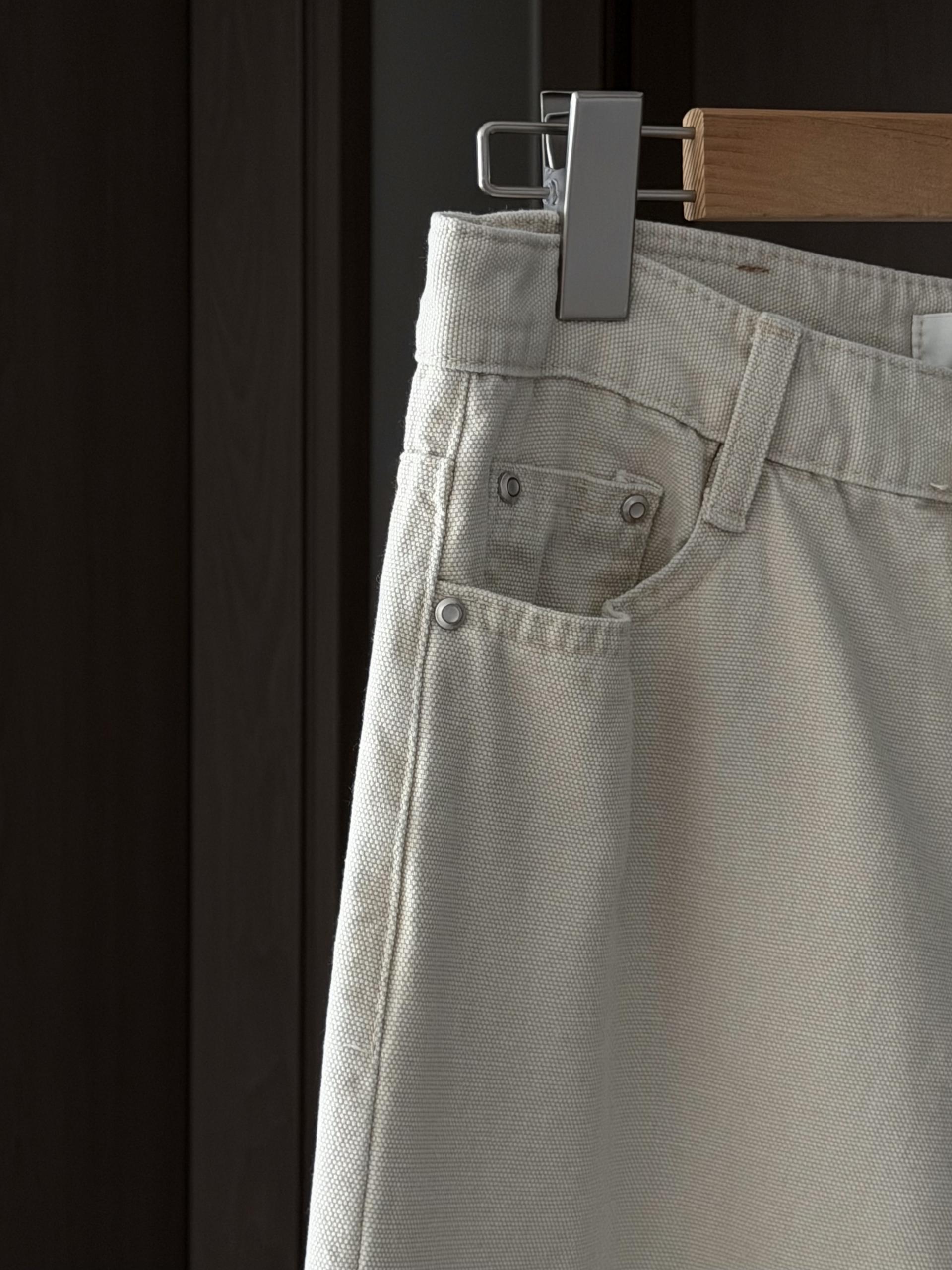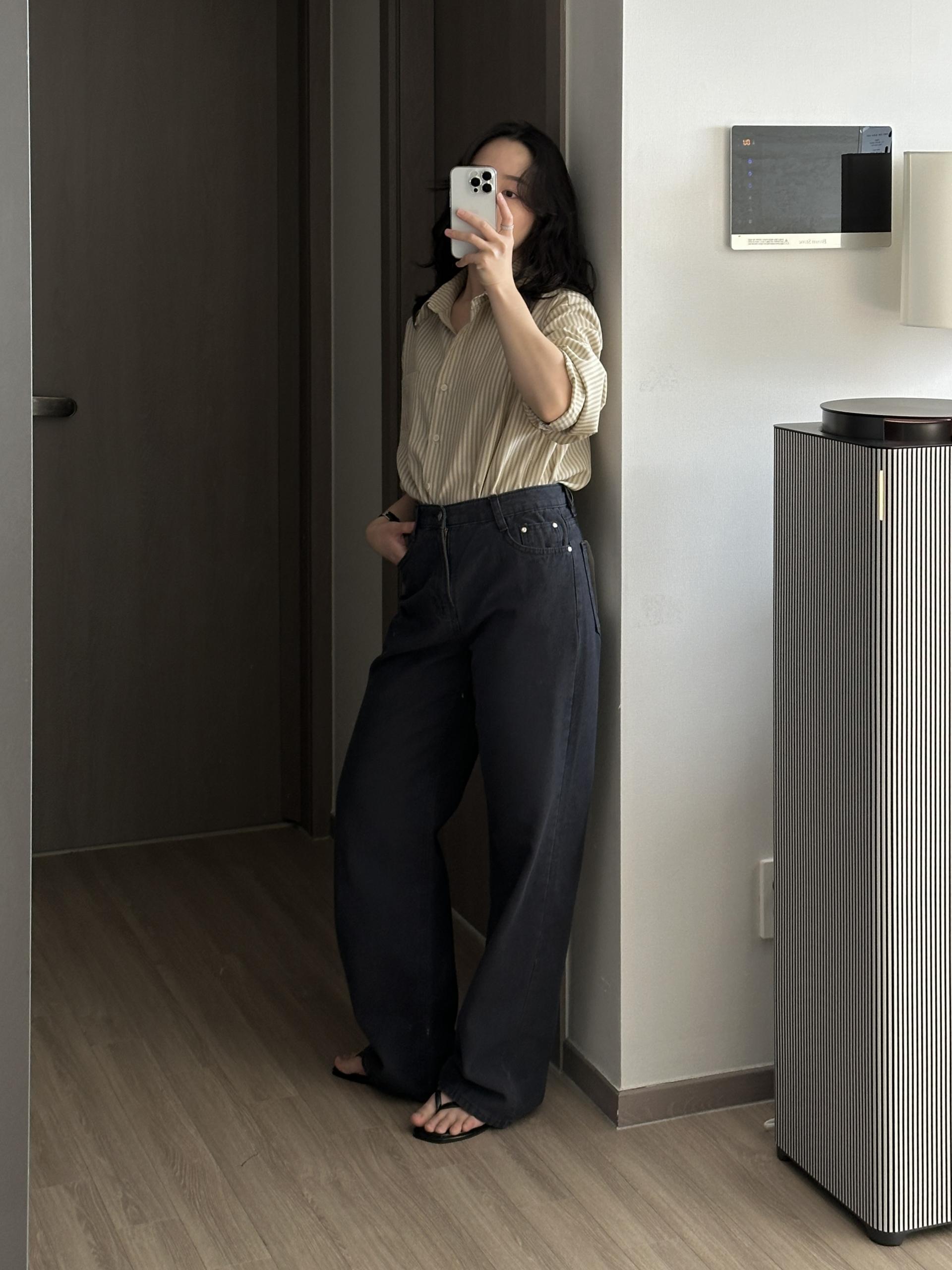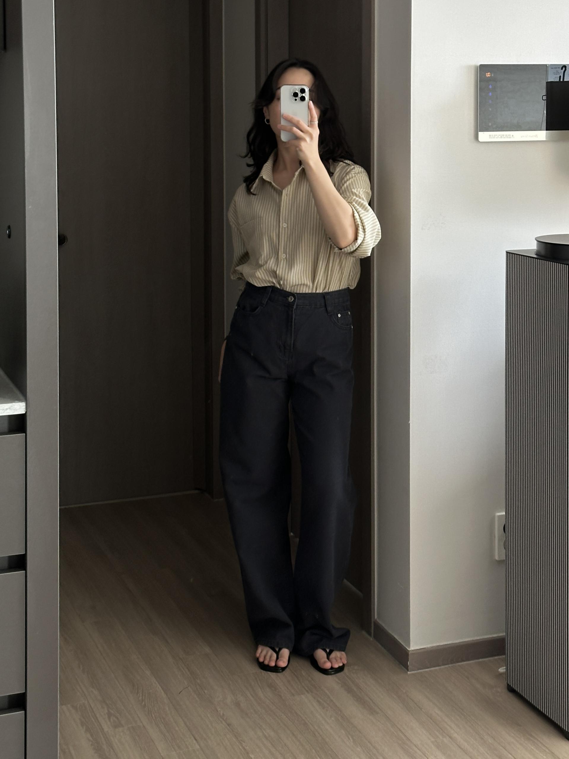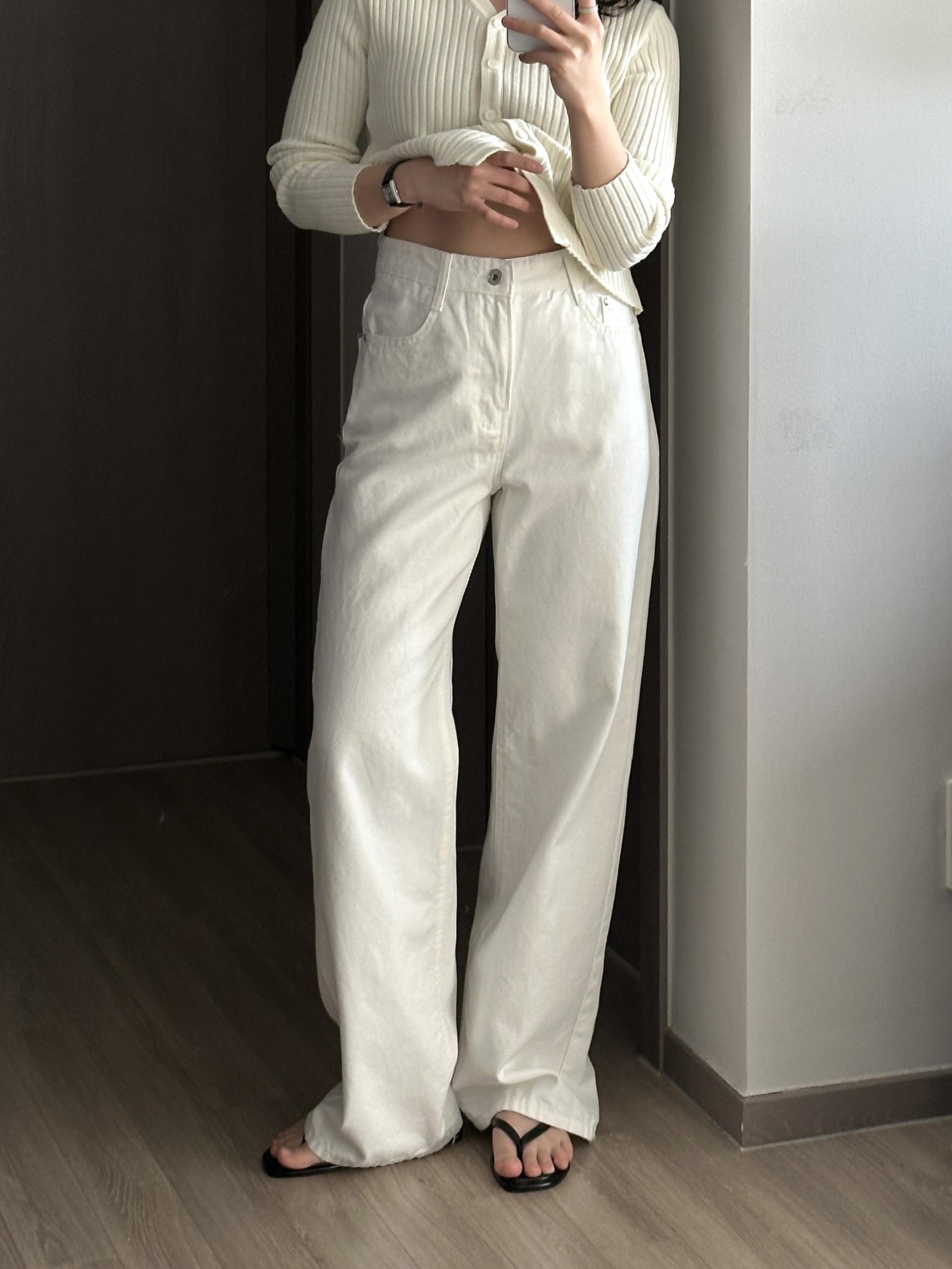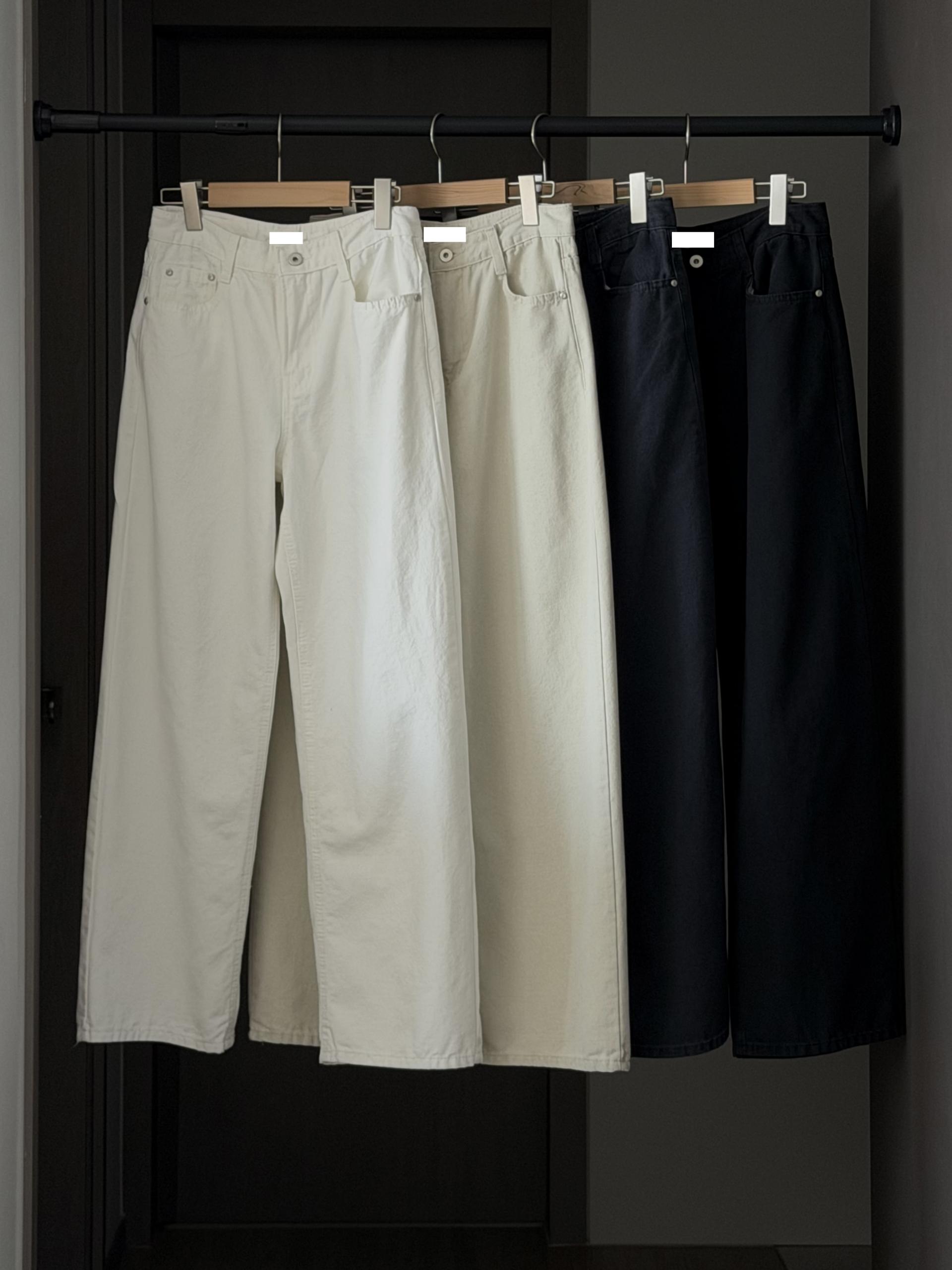 힘 있게 떨어지는 실루엣이 매력적인 팬츠예요.