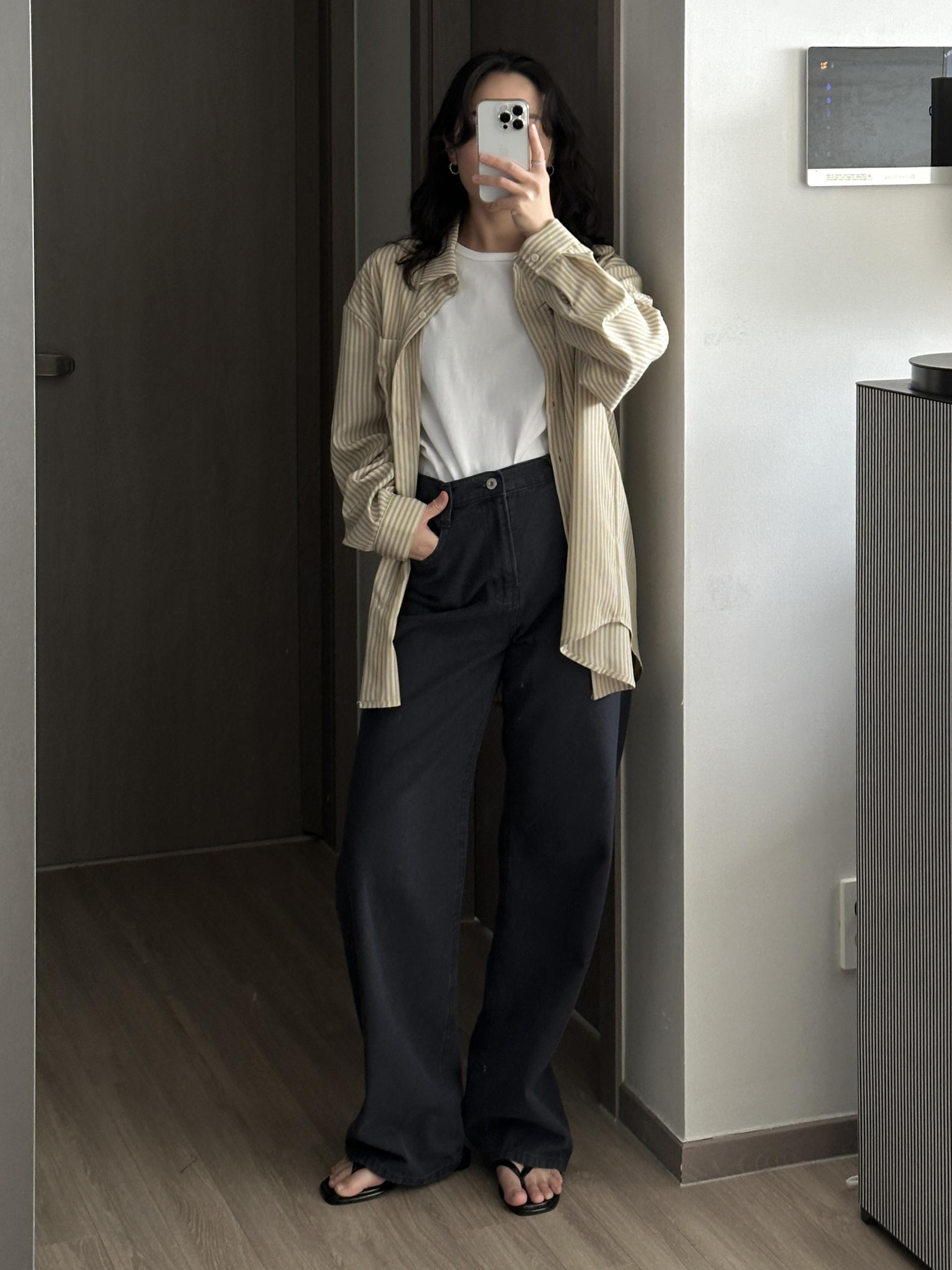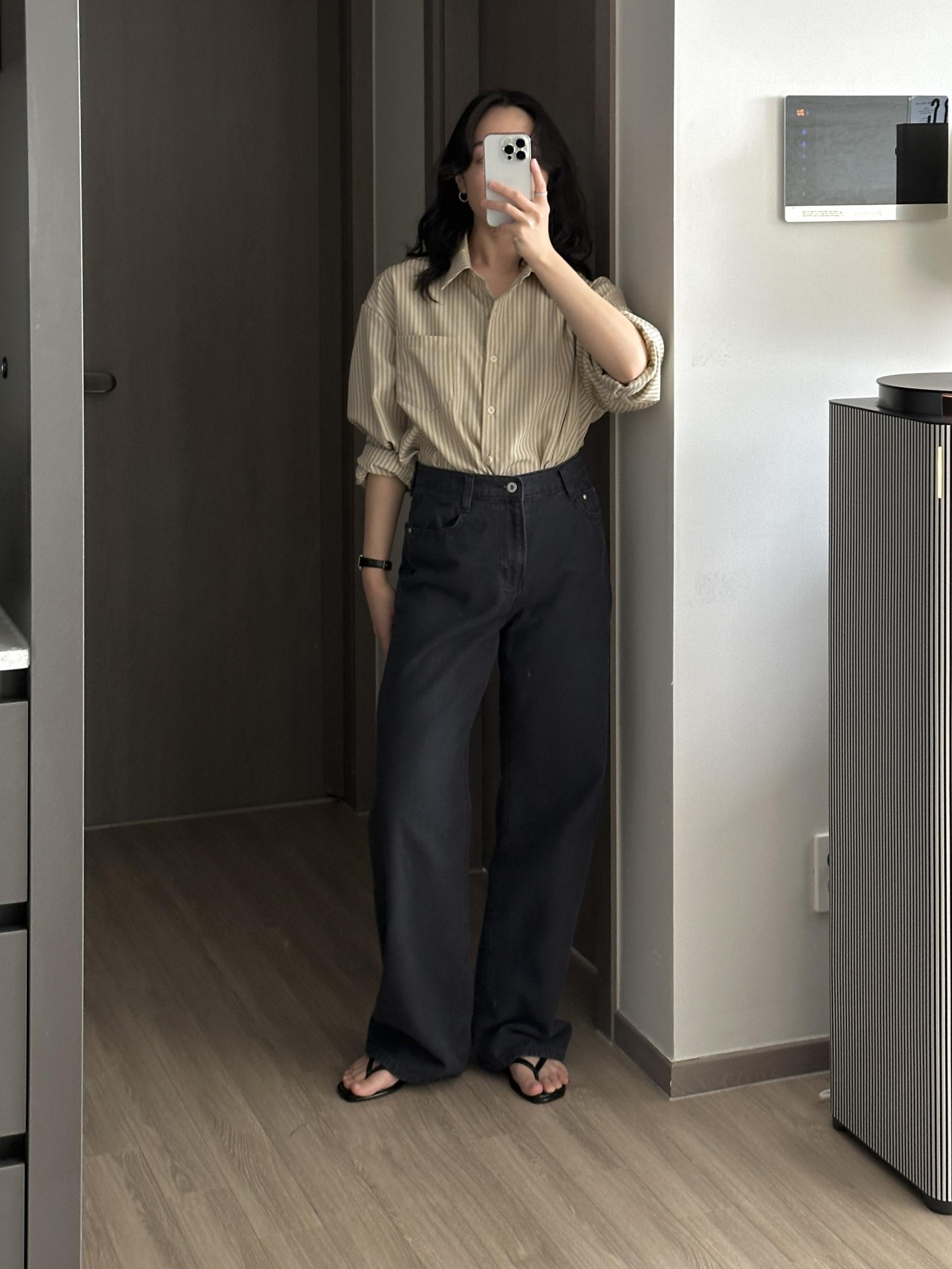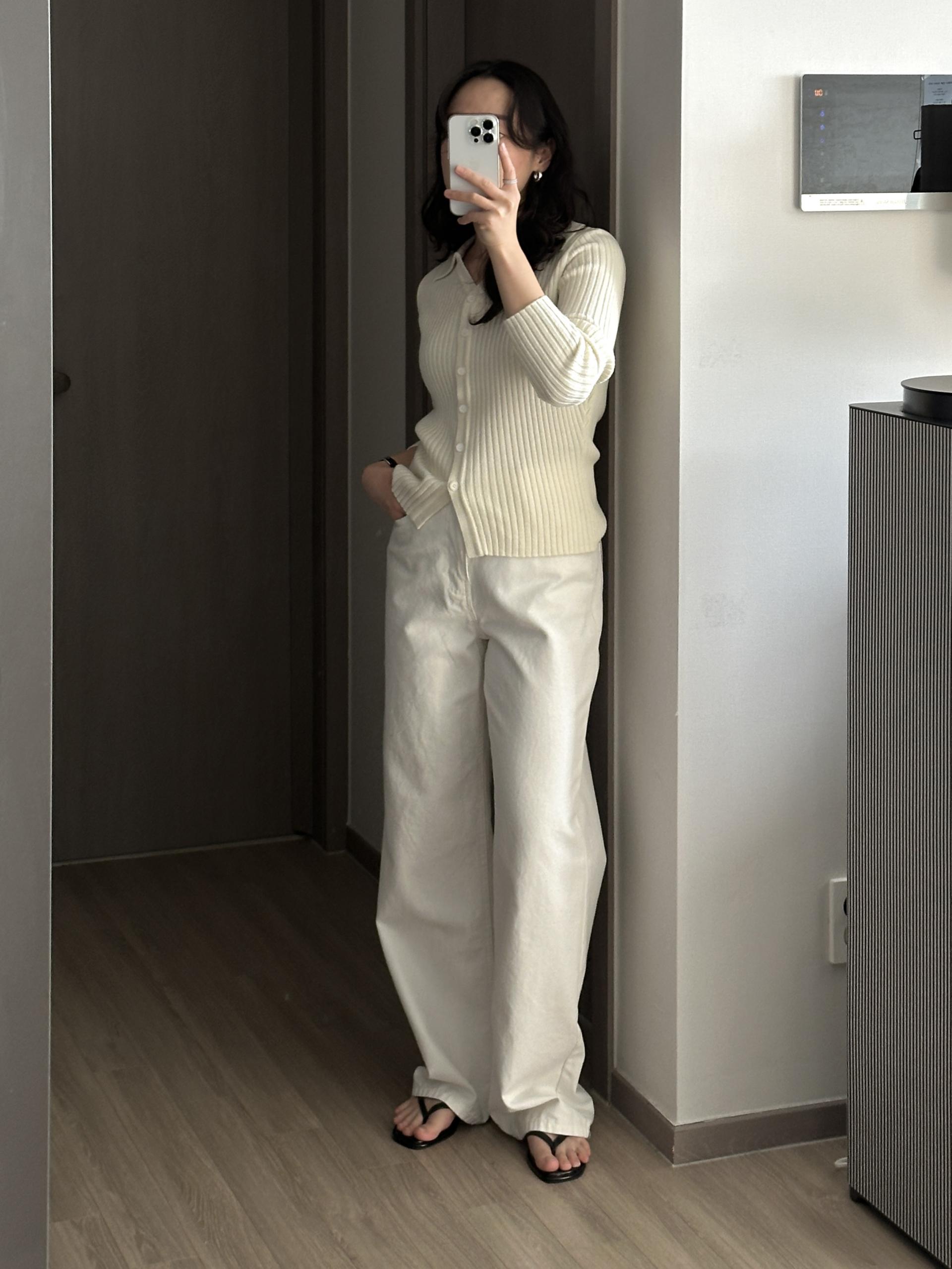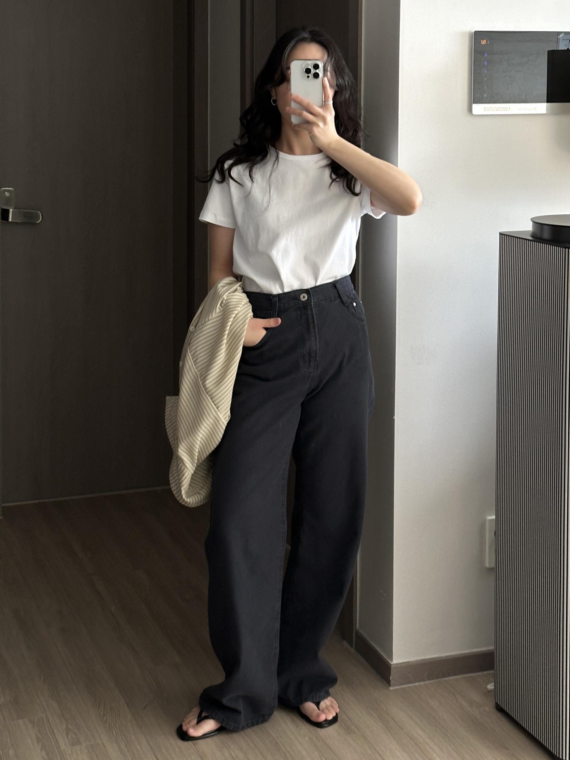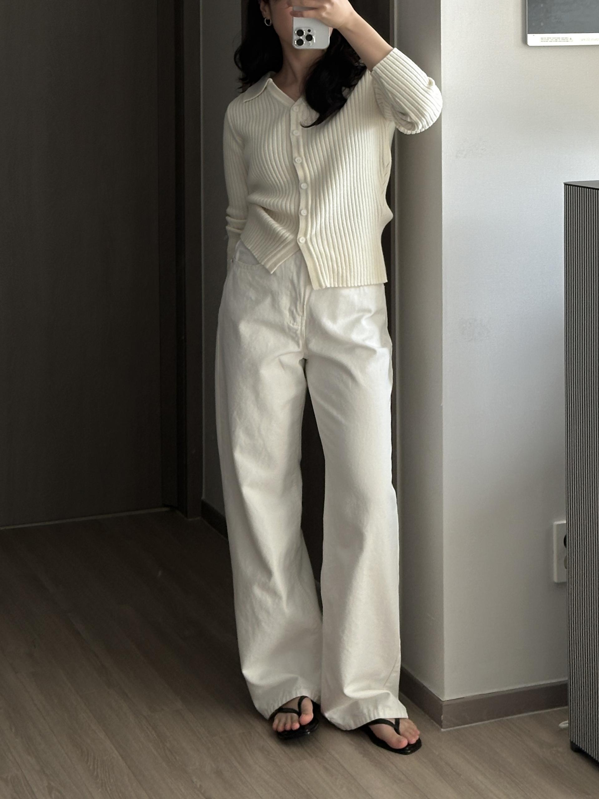 힘 있게 떨어지는 실루엣이 매력적인 팬츠예요.