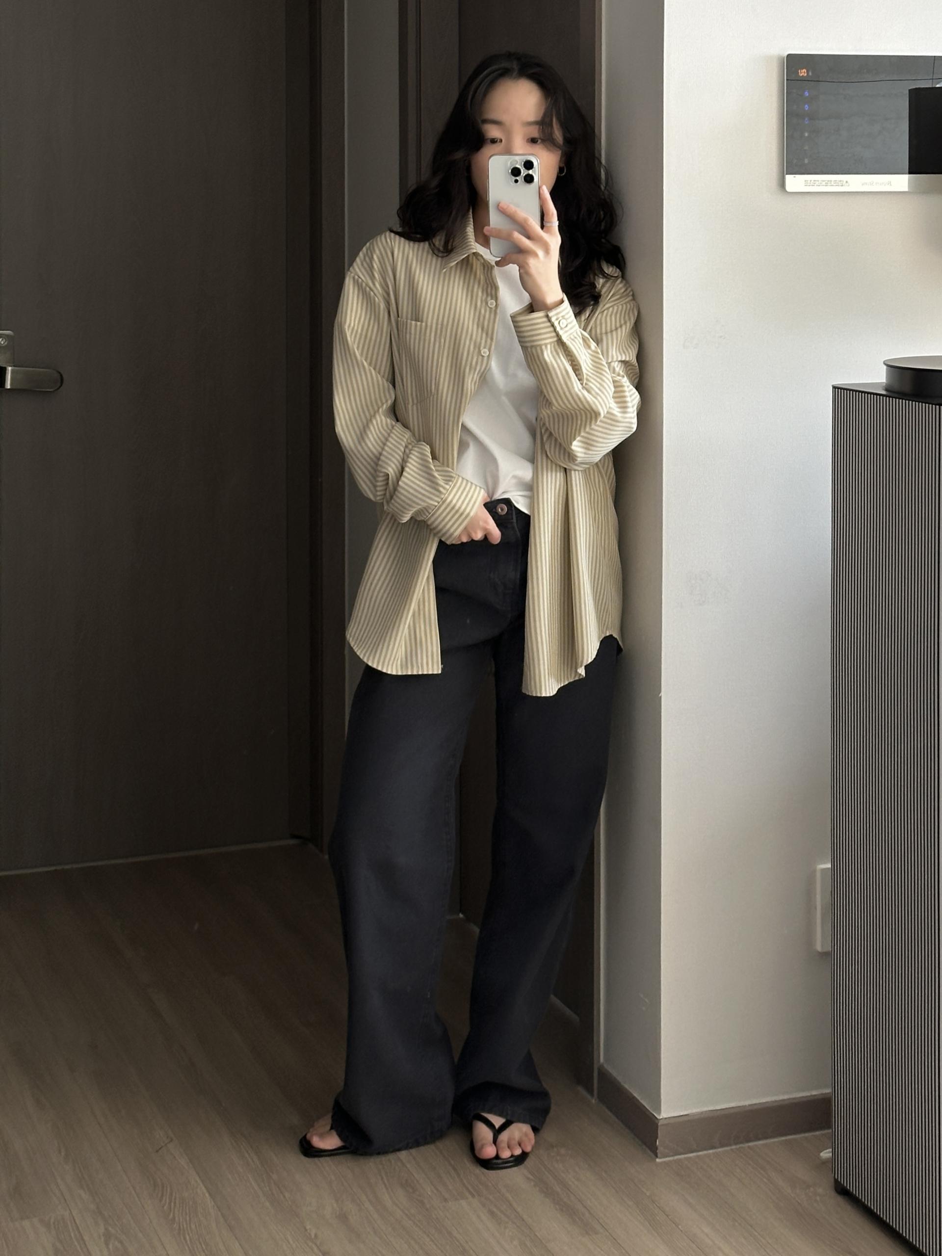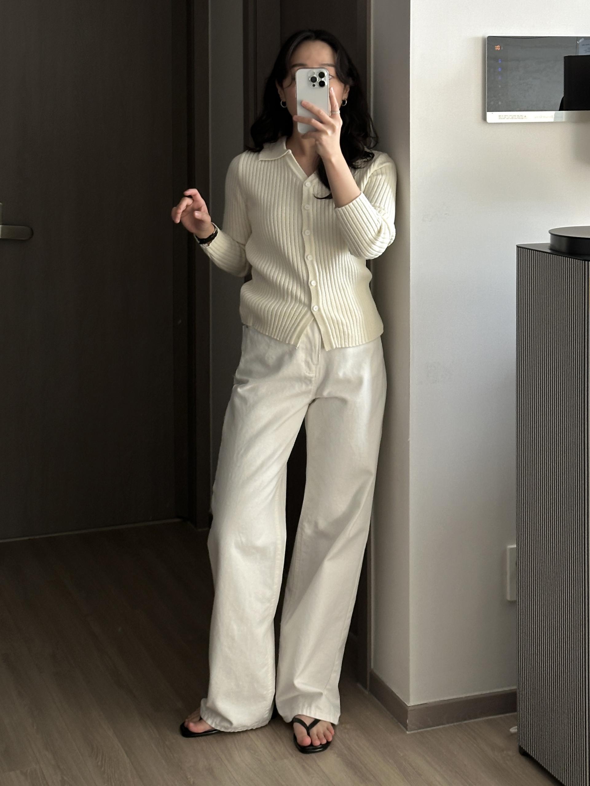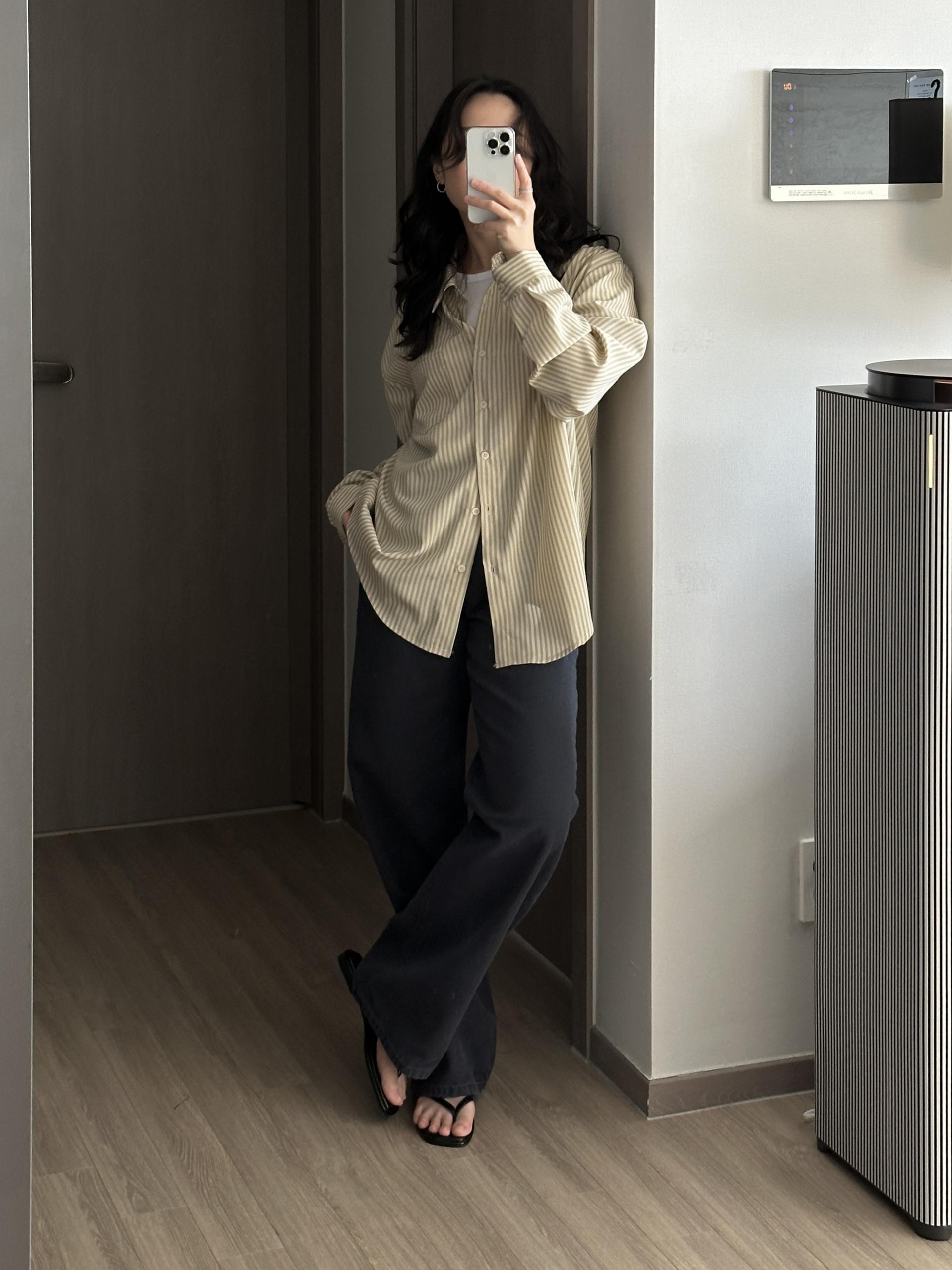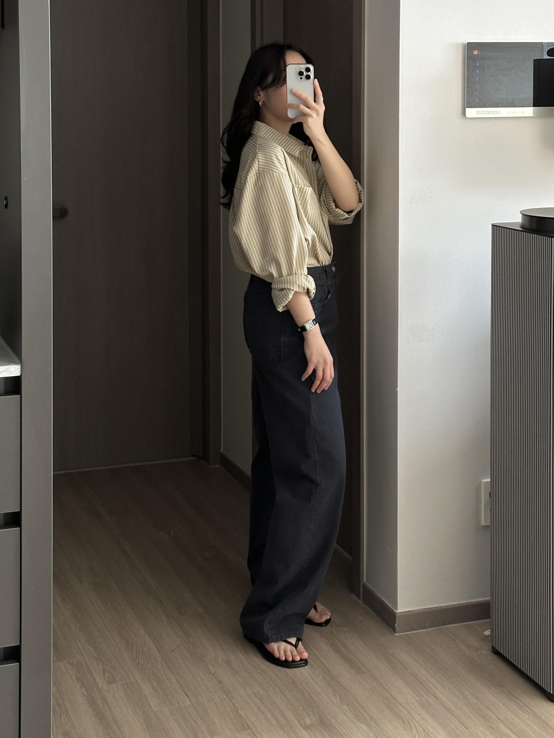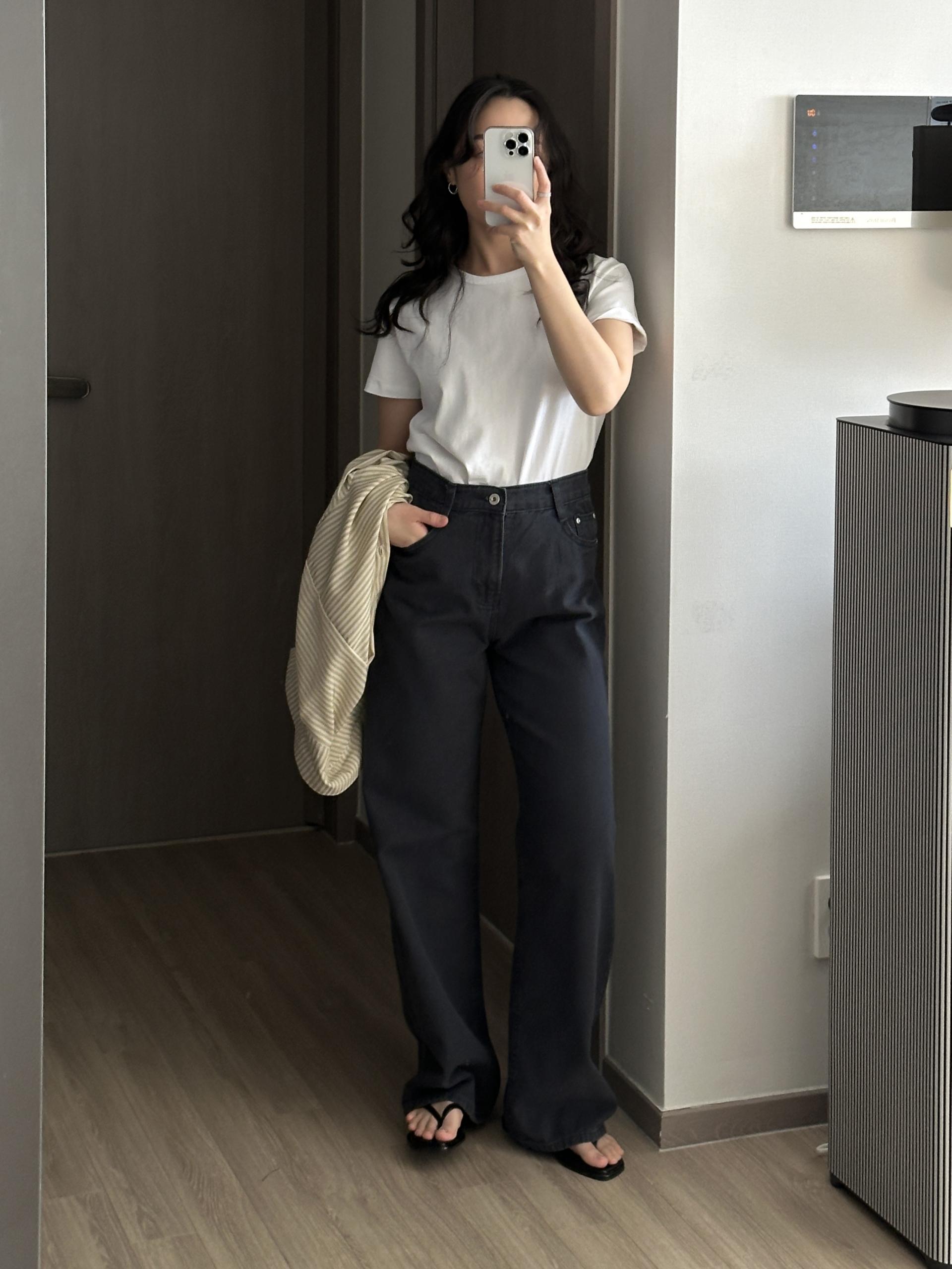 힘 있게 떨어지는 실루엣이 매력적인 팬츠예요.