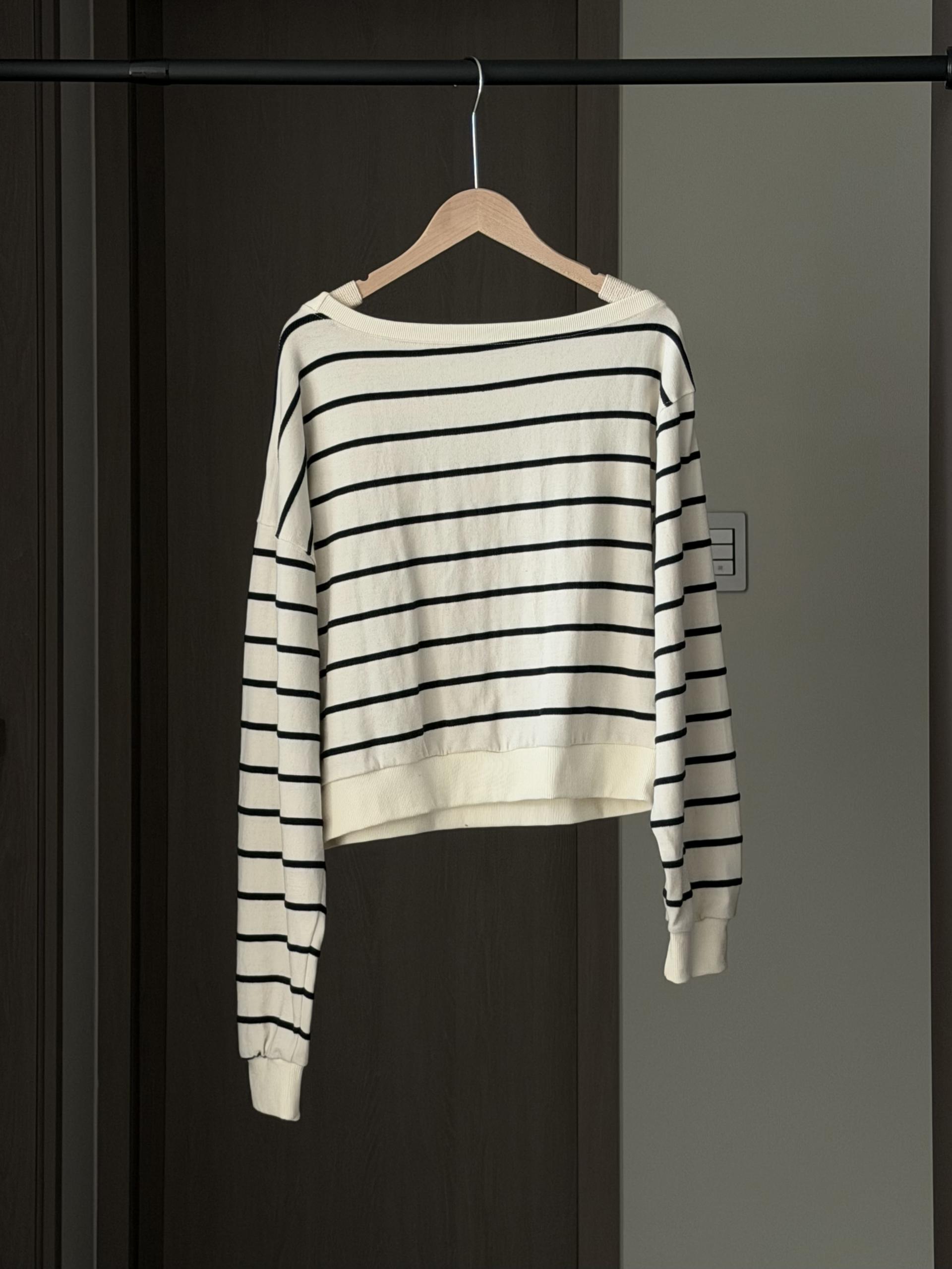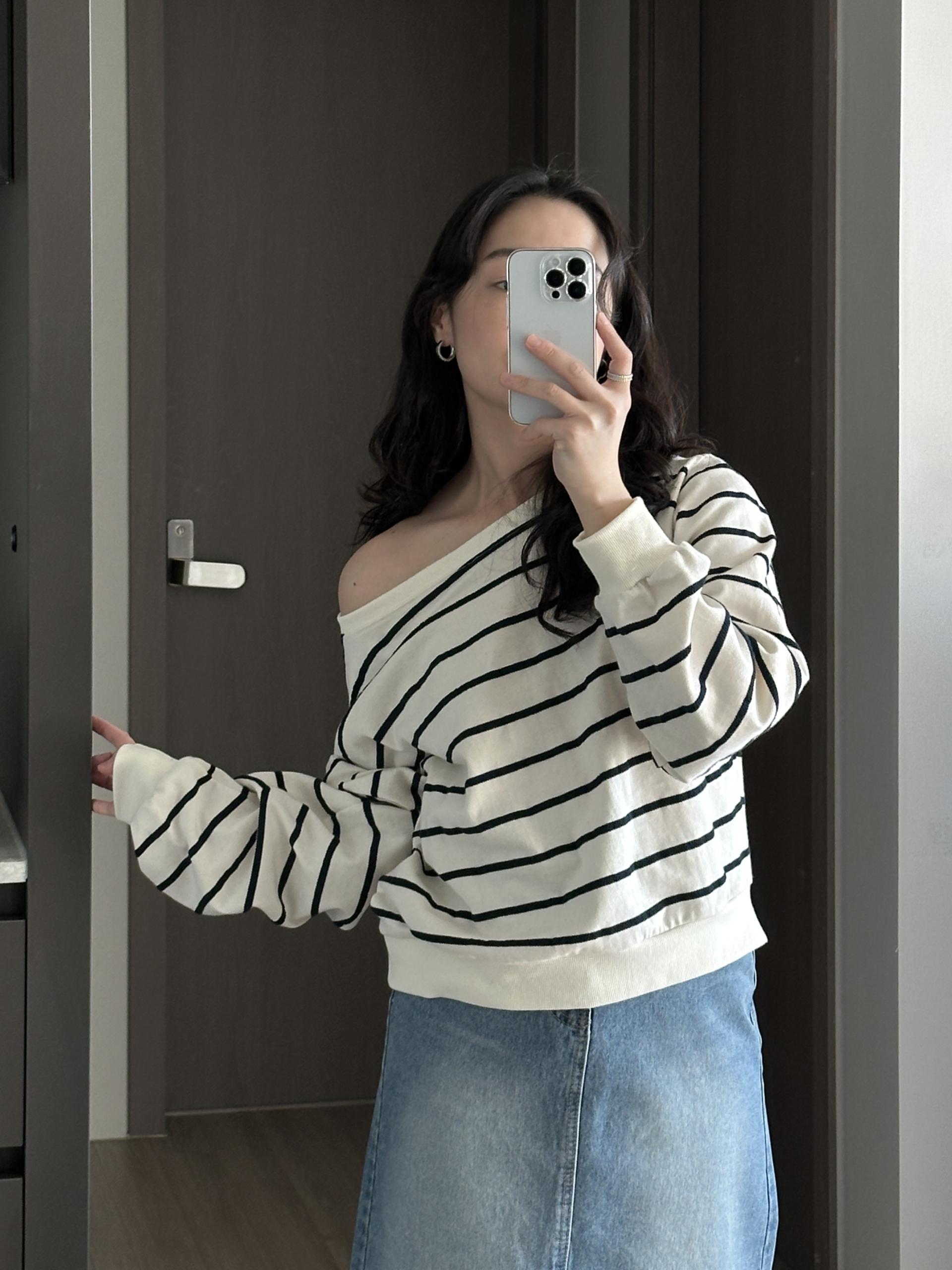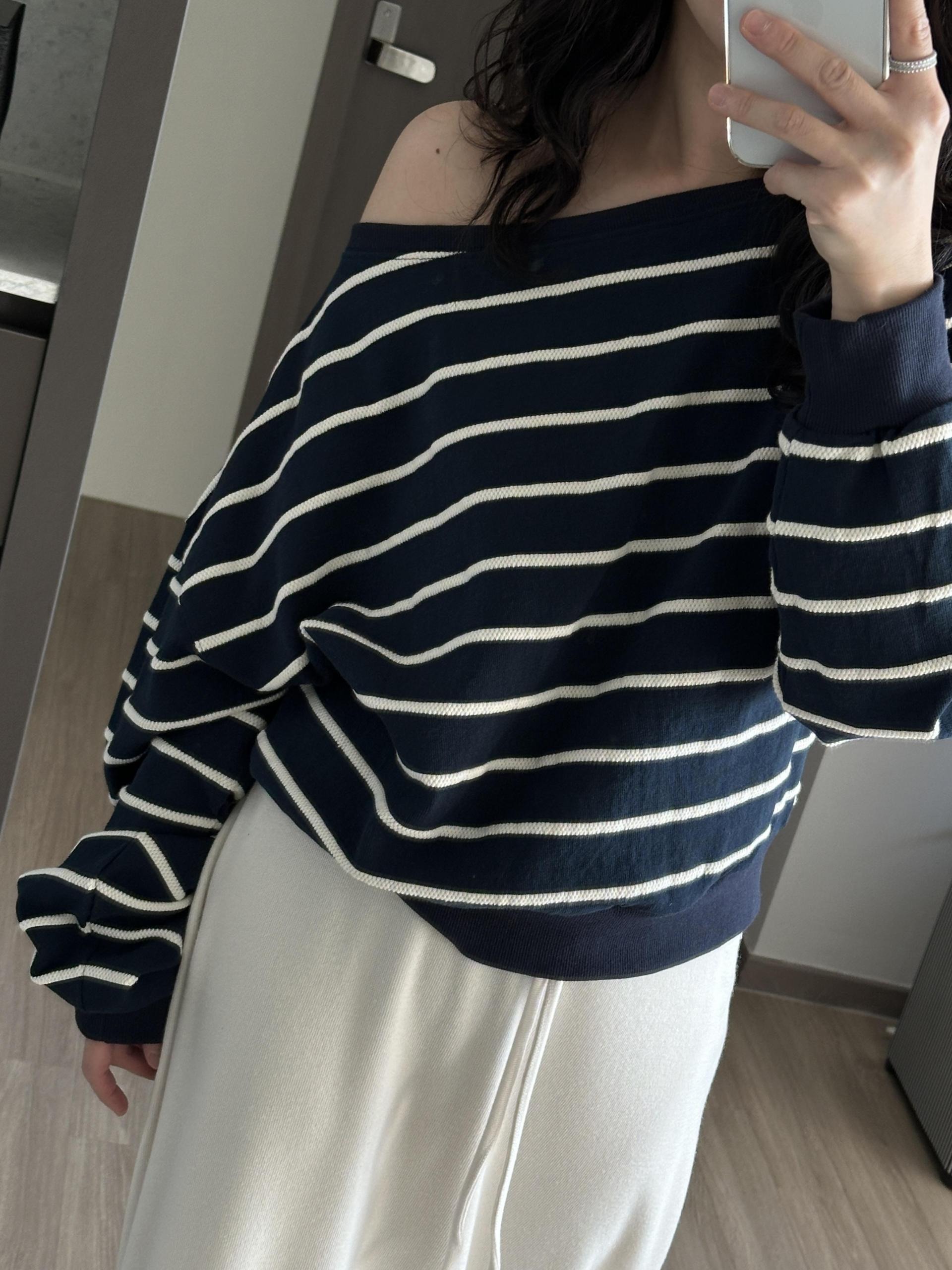 은은한 스트라이프가 매력적인 여유핏 맨투맨입니다.