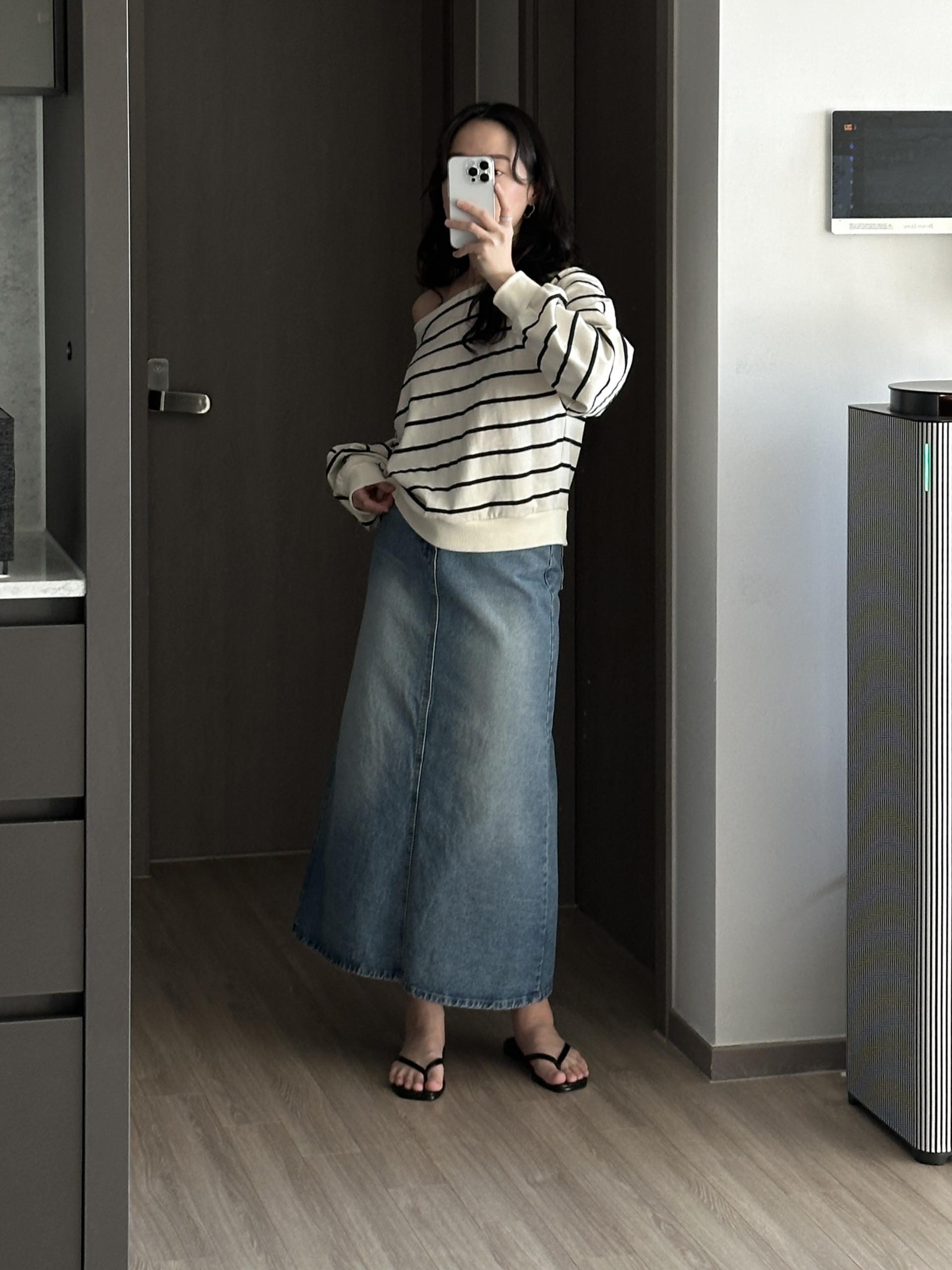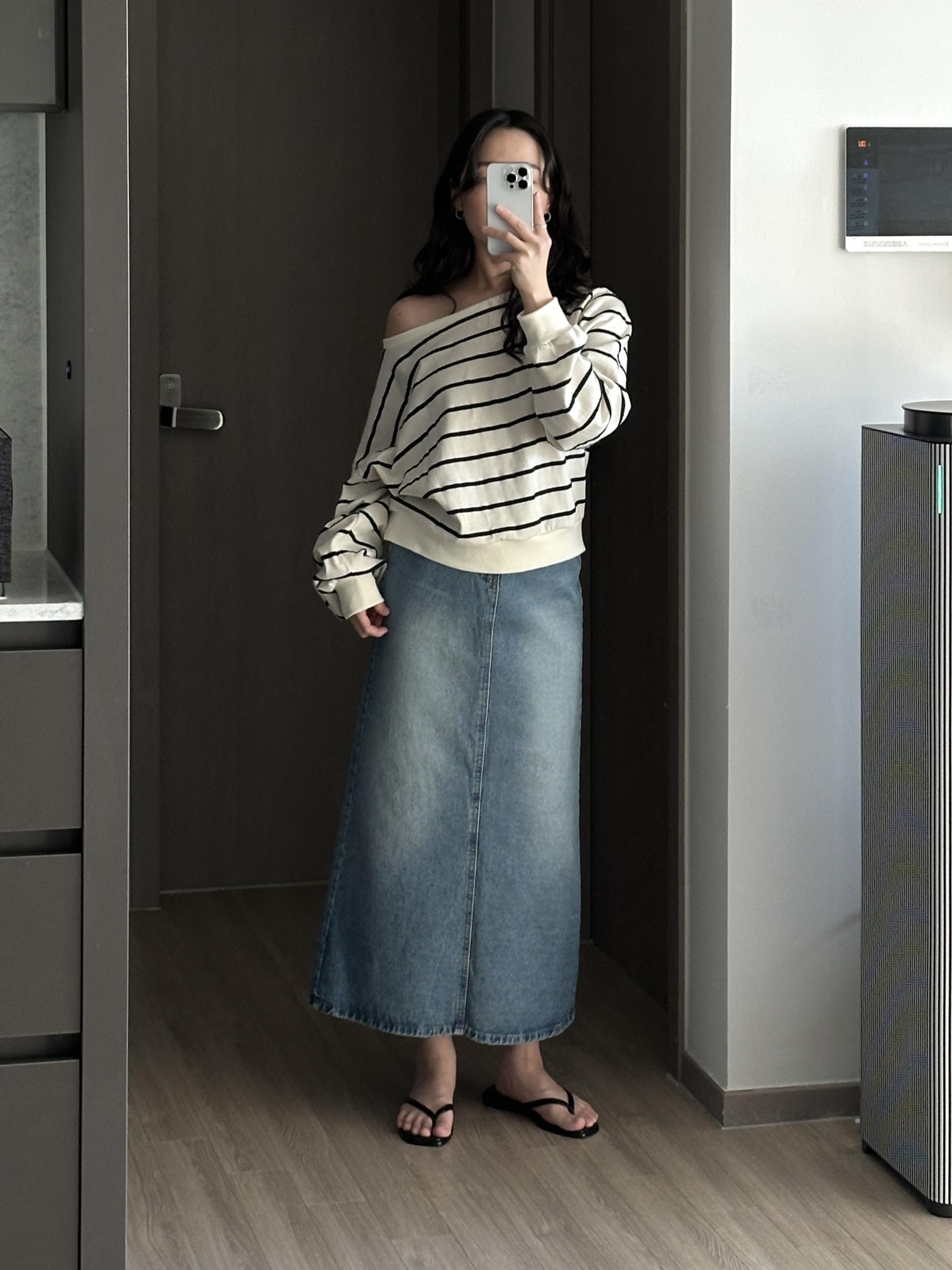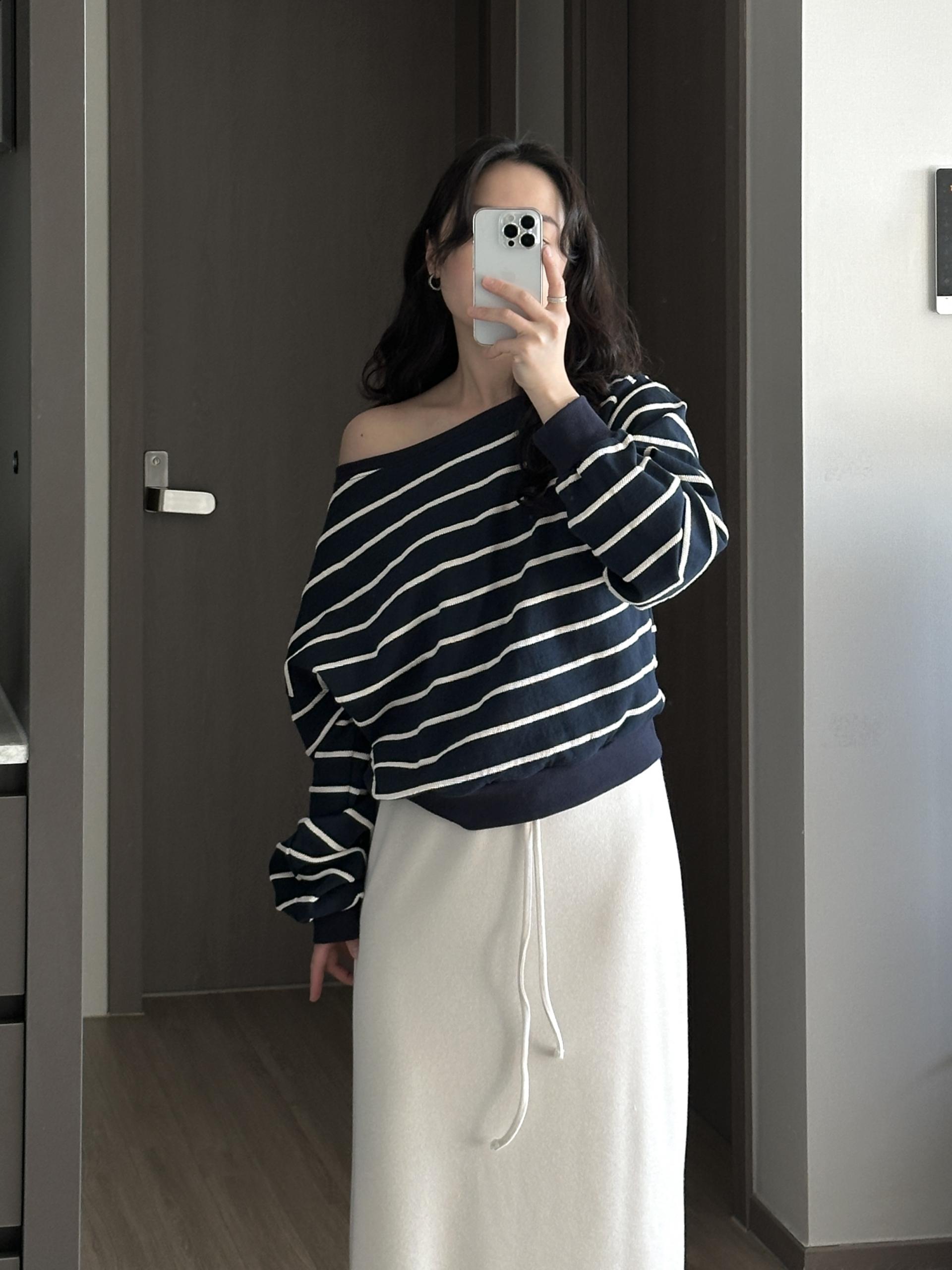 한쪽 어깨를 자연스럽게 내려 연출하실 수 있어요.