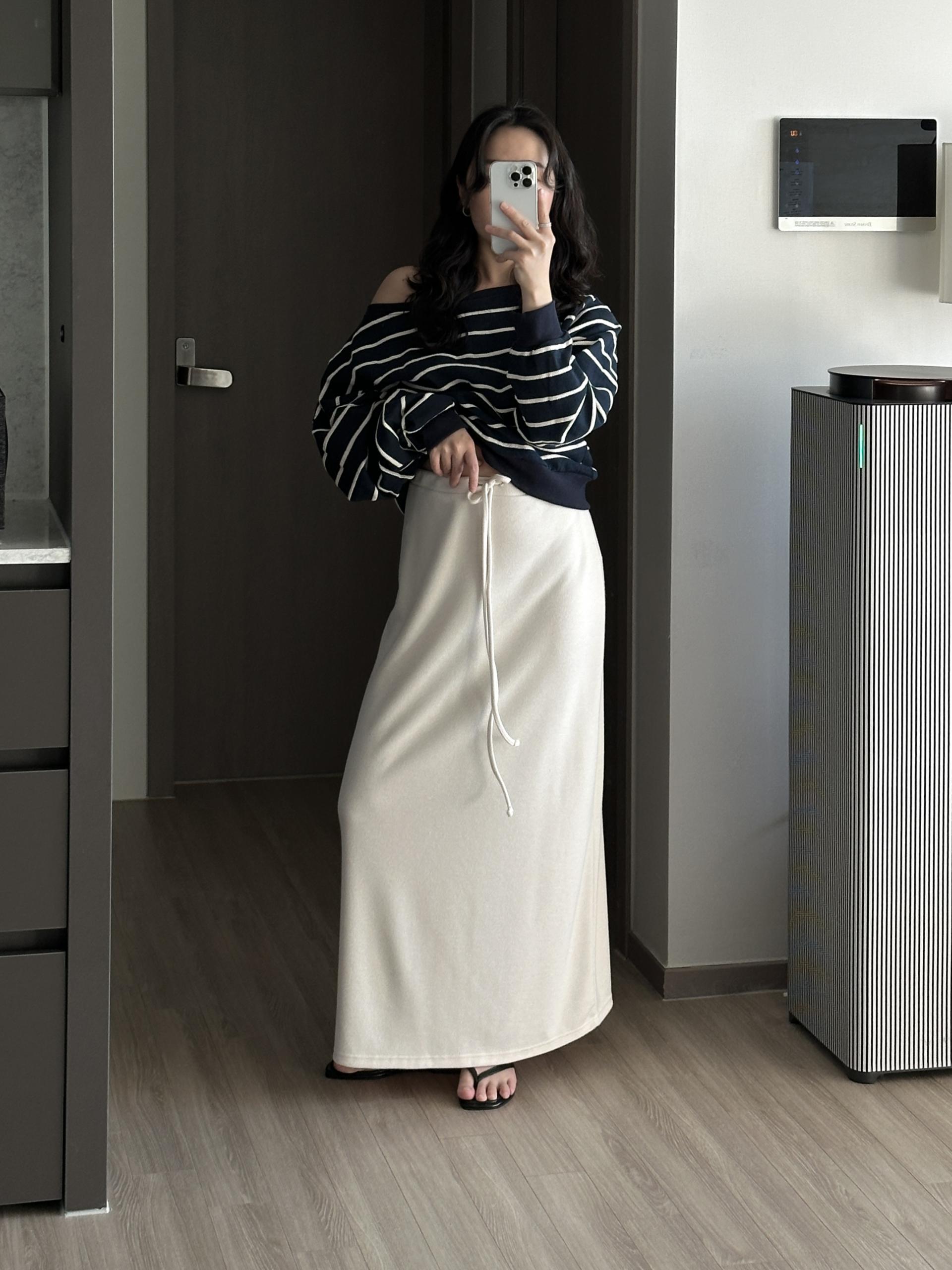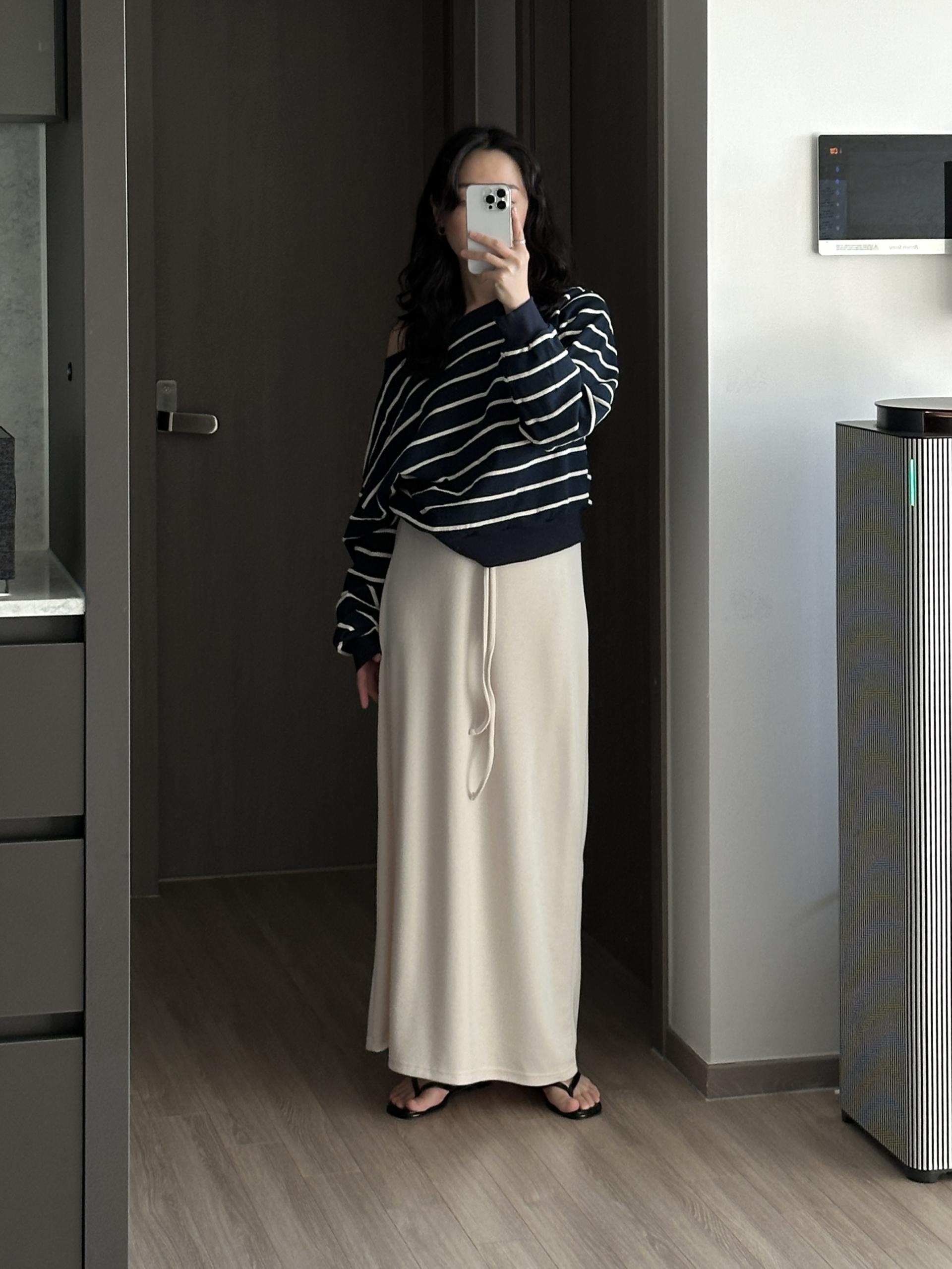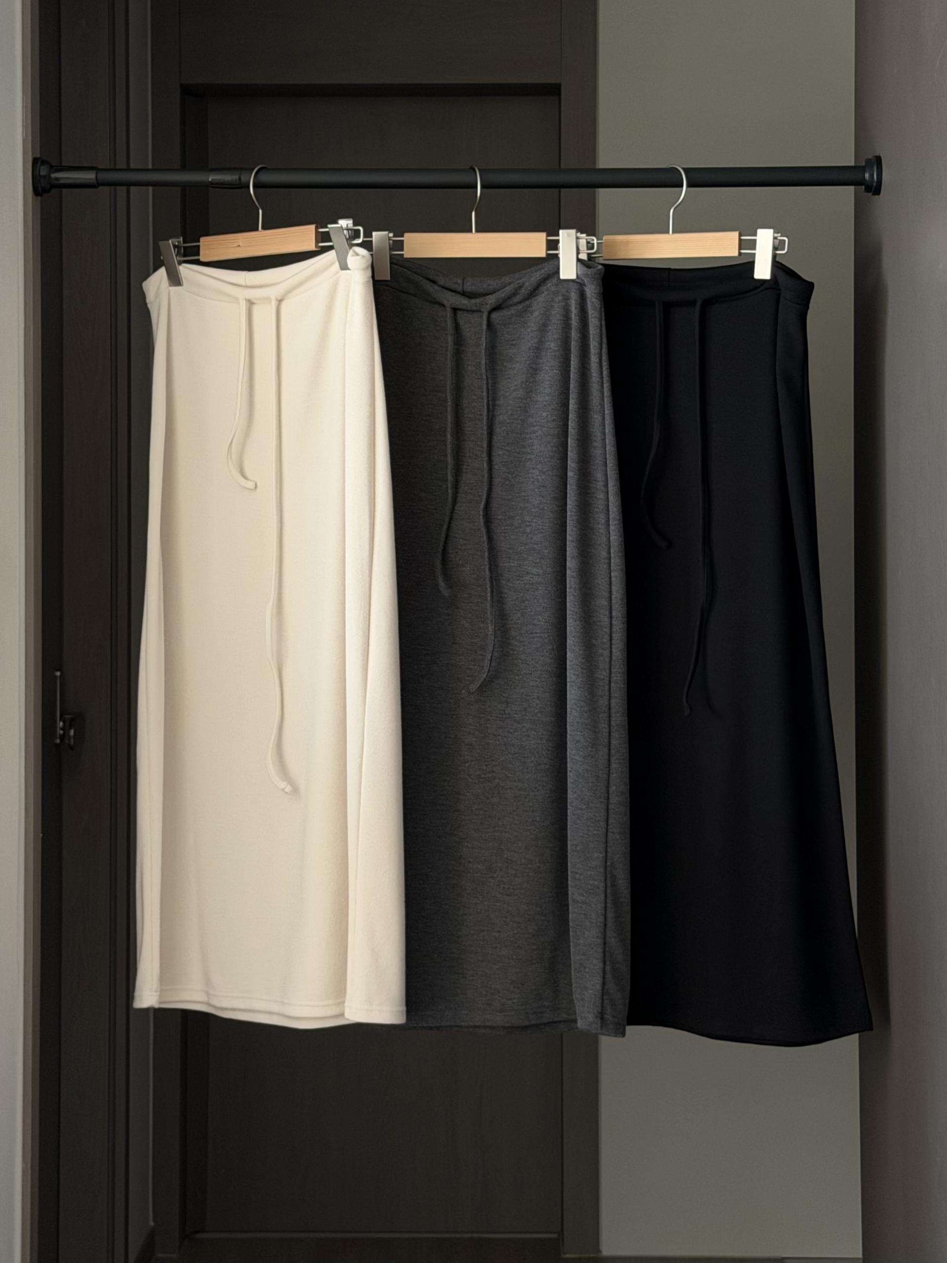 편안하면서 자연스럽게 흐르는 라인이 돋보이는 스커트입니다.