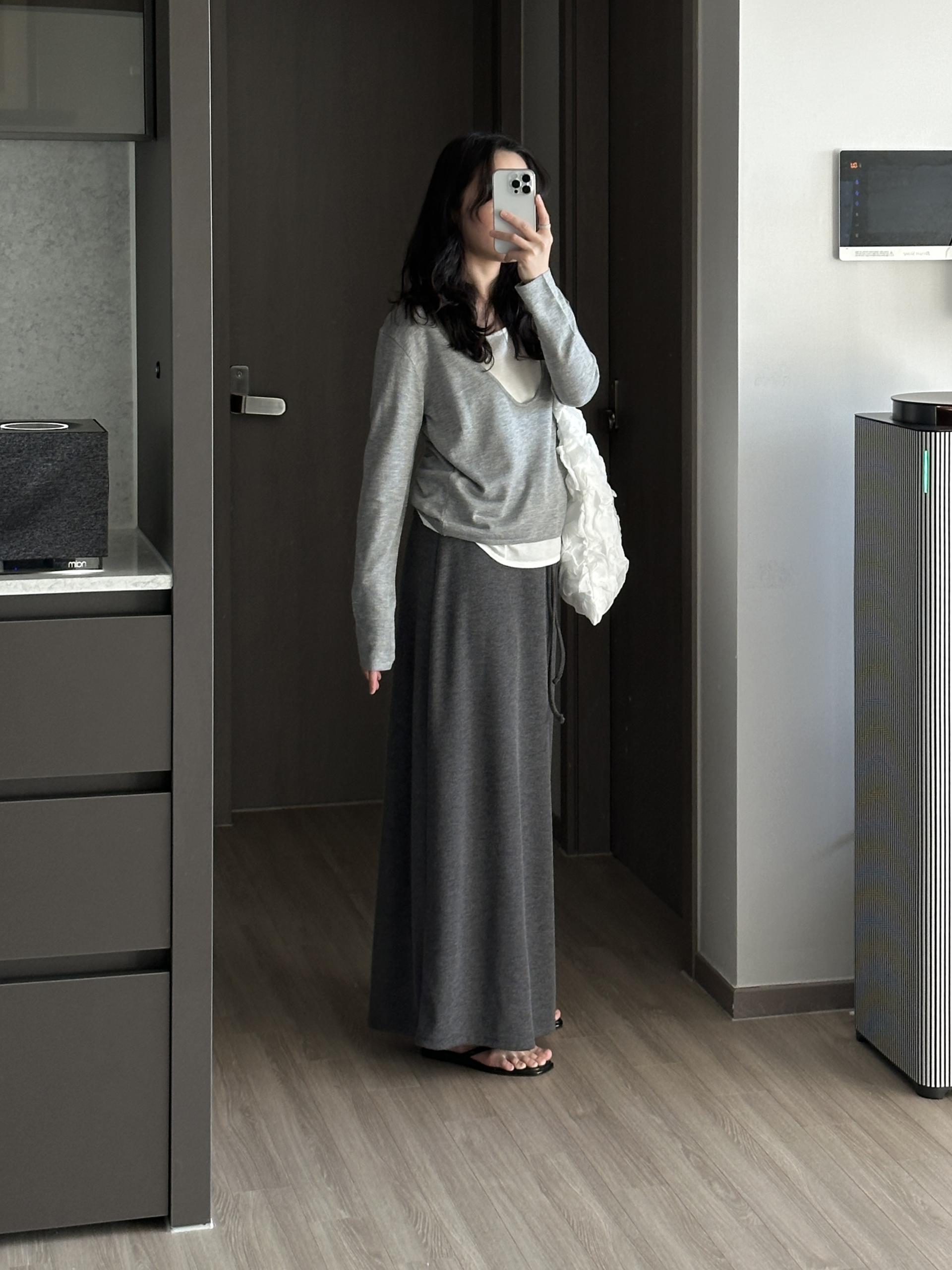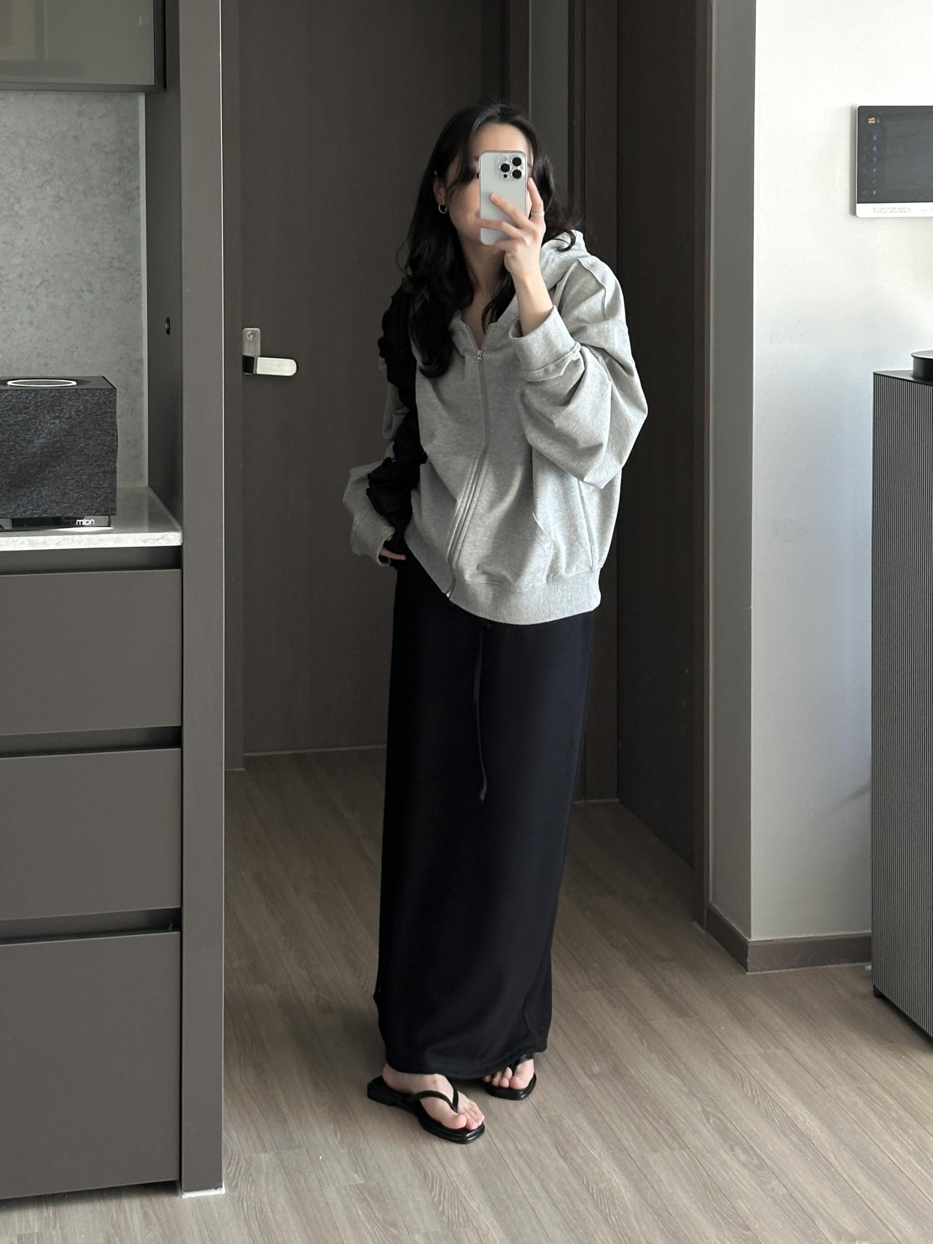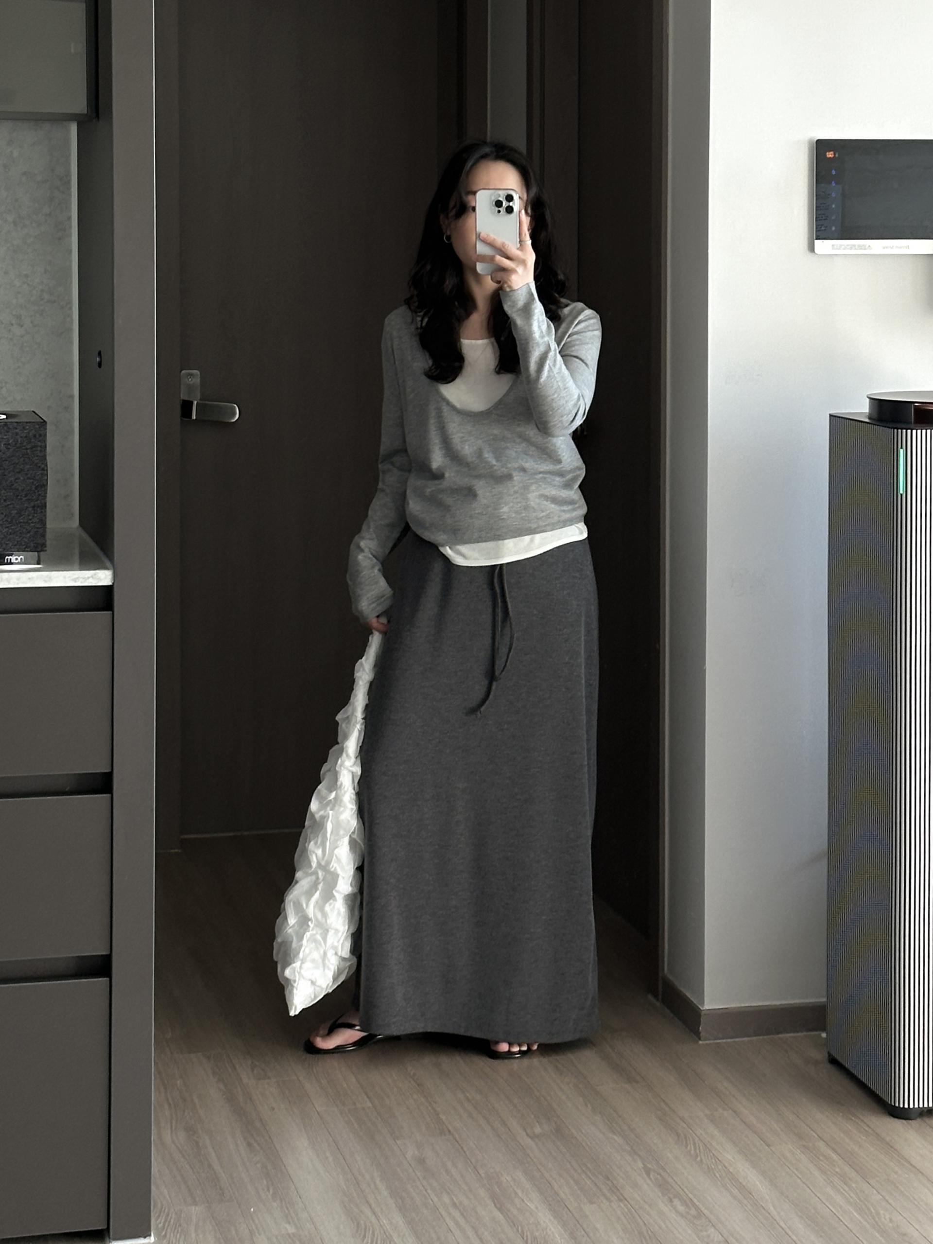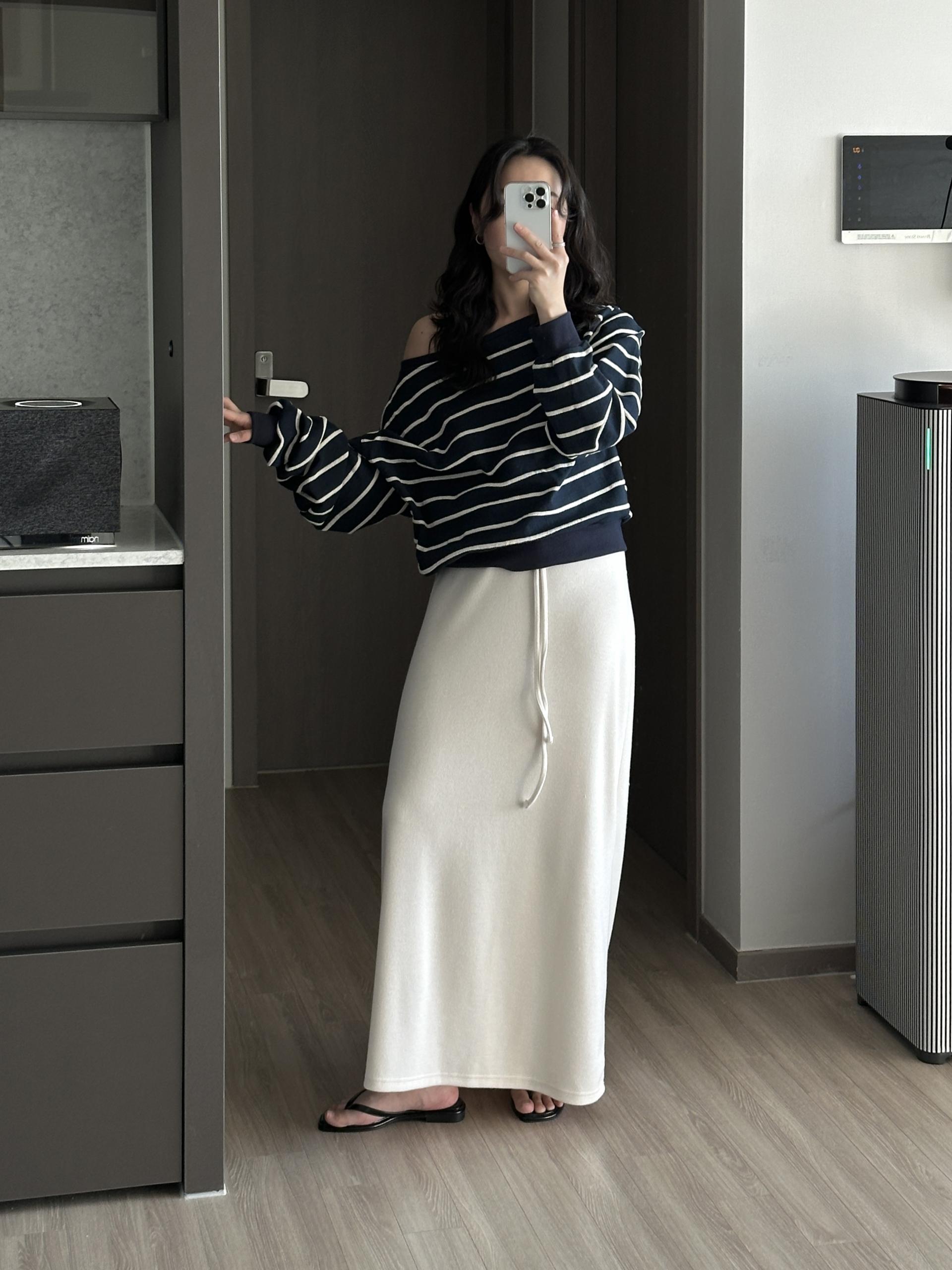 편안하면서 자연스럽게 흐르는 라인이 돋보이는 스커트입니다.