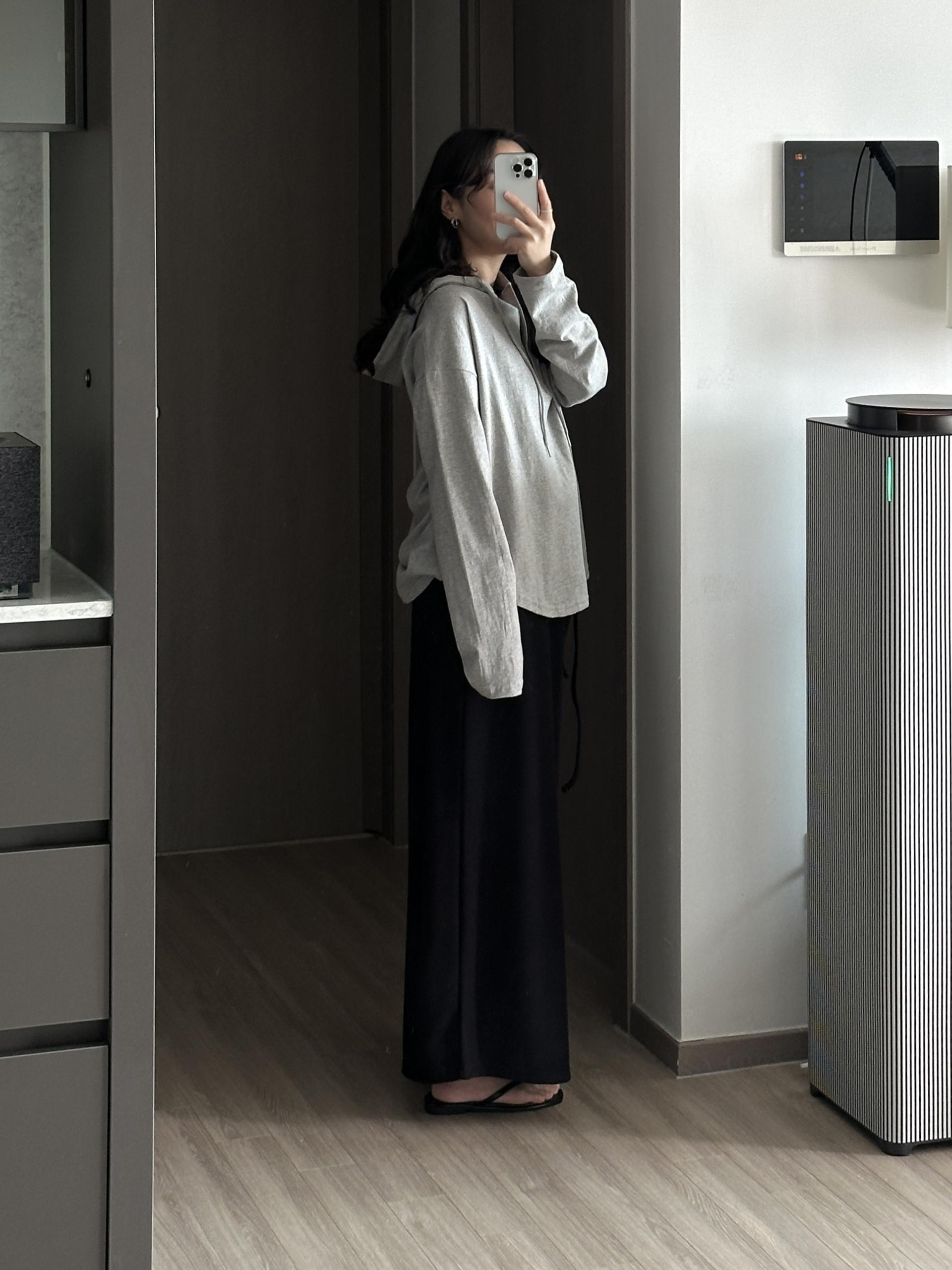 여유 있는 실루엣으로 체형을 보완해주고 착용감이 편안합니다.