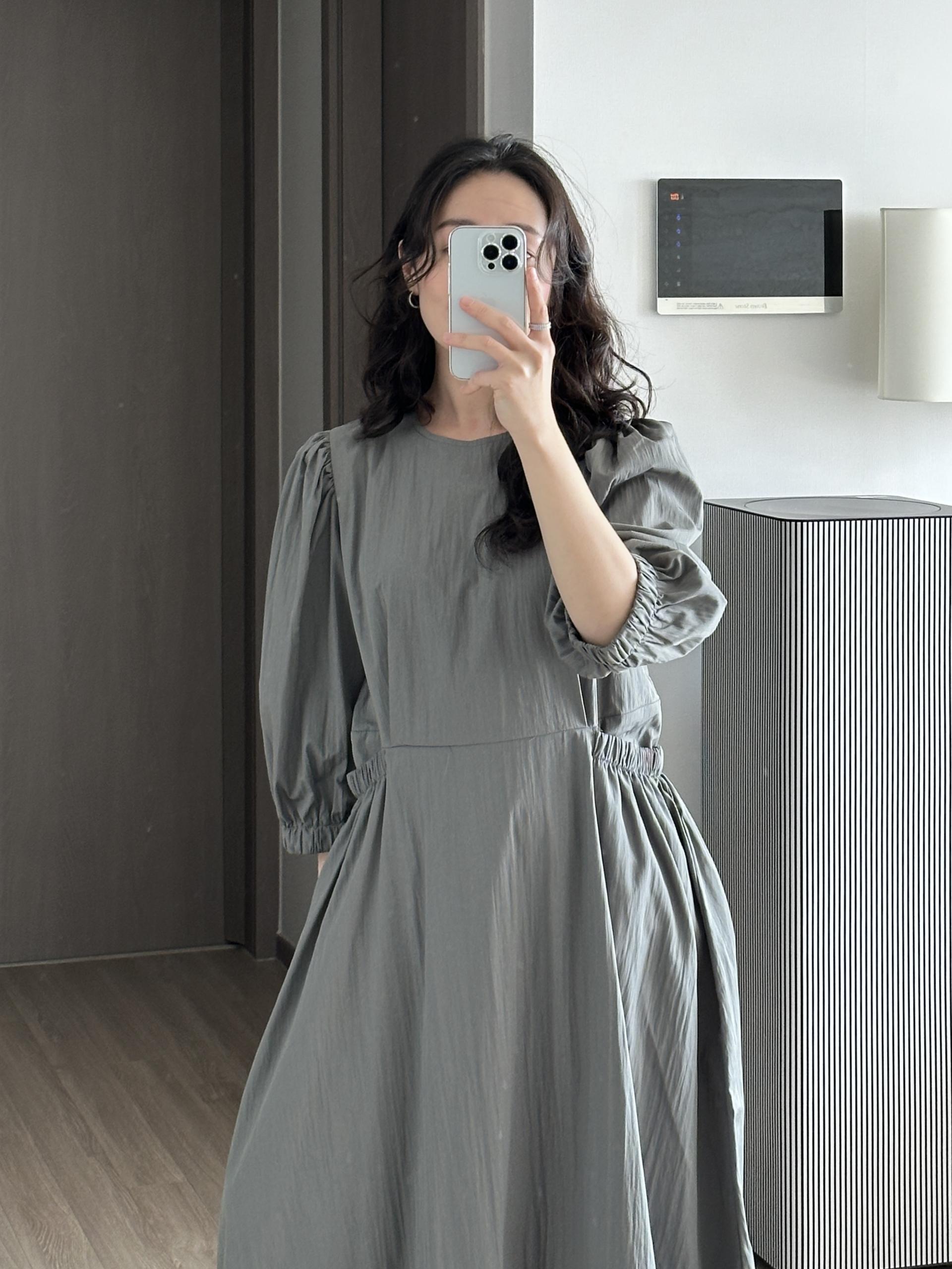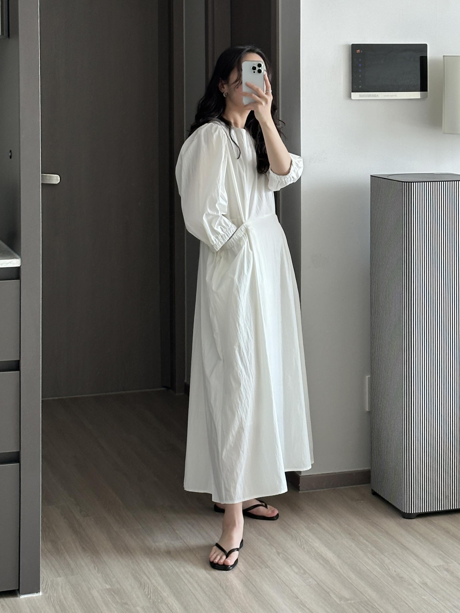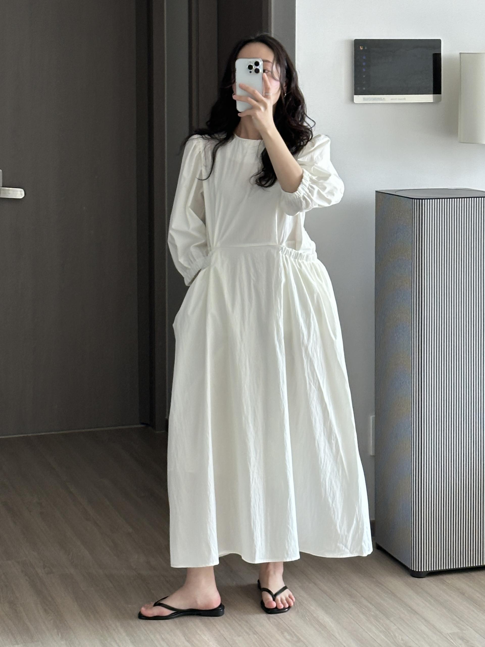 라운드넥은 단정하면서 볼륨감 있는 퍼프 소매가 사랑스럽게