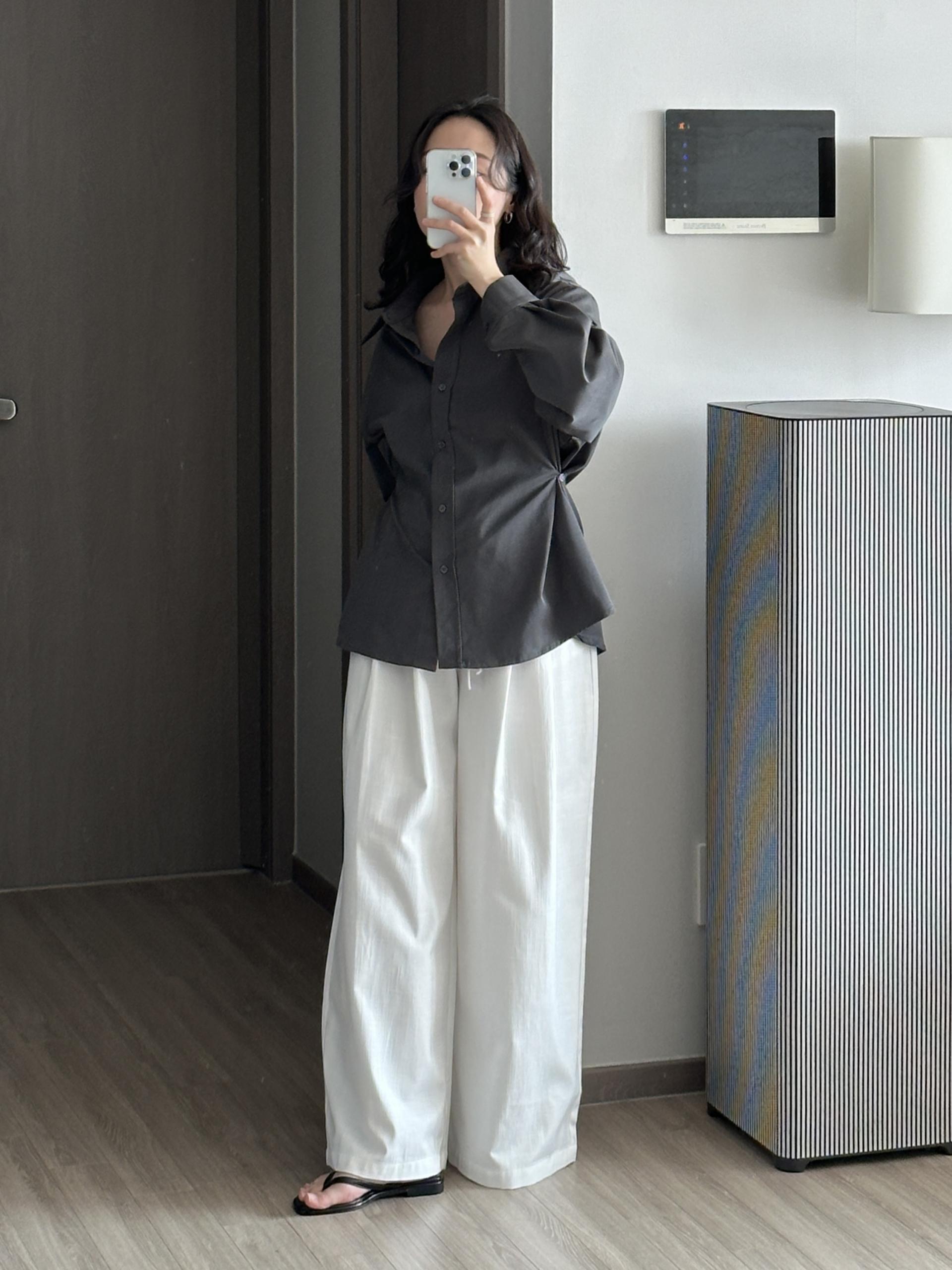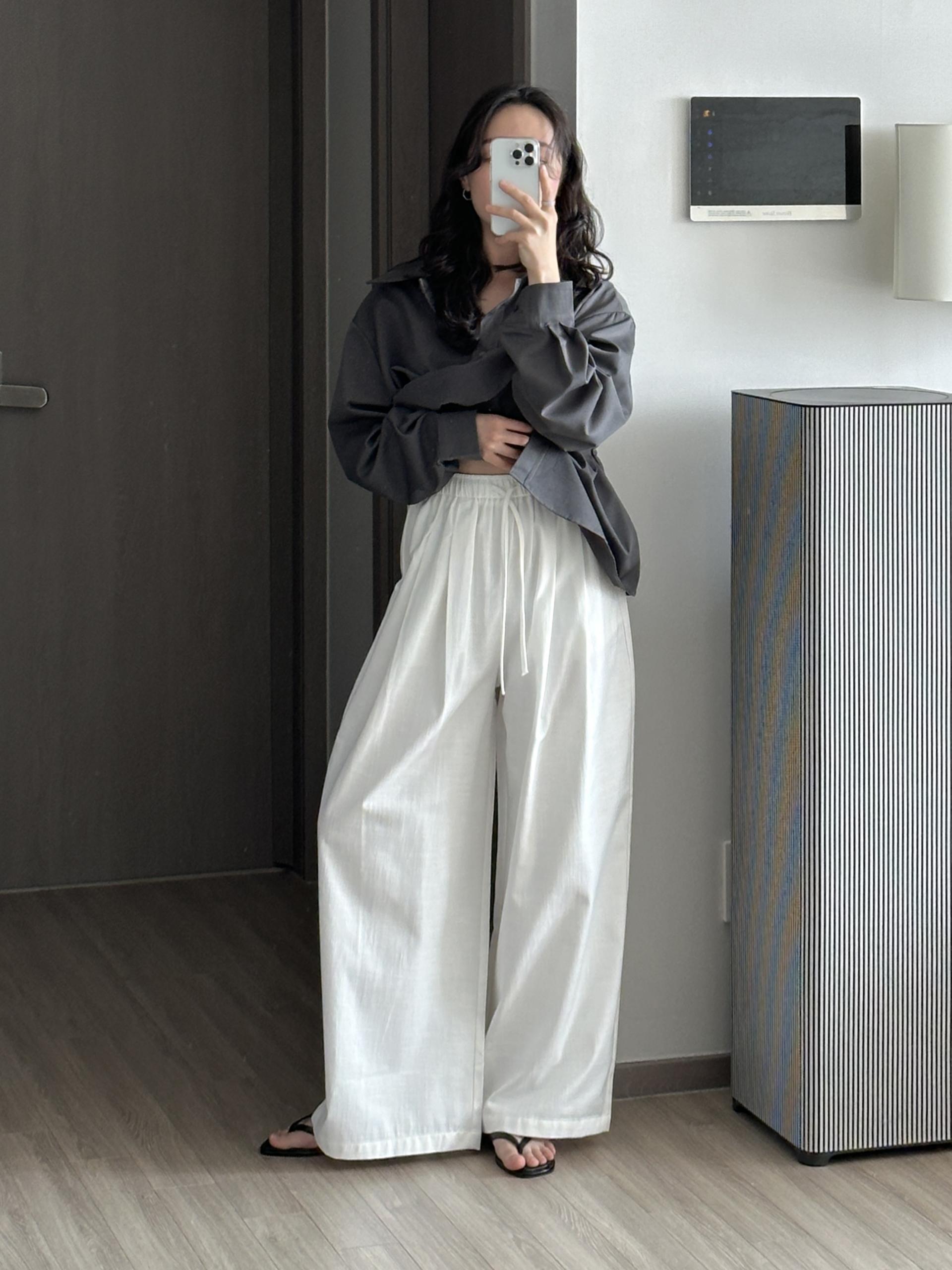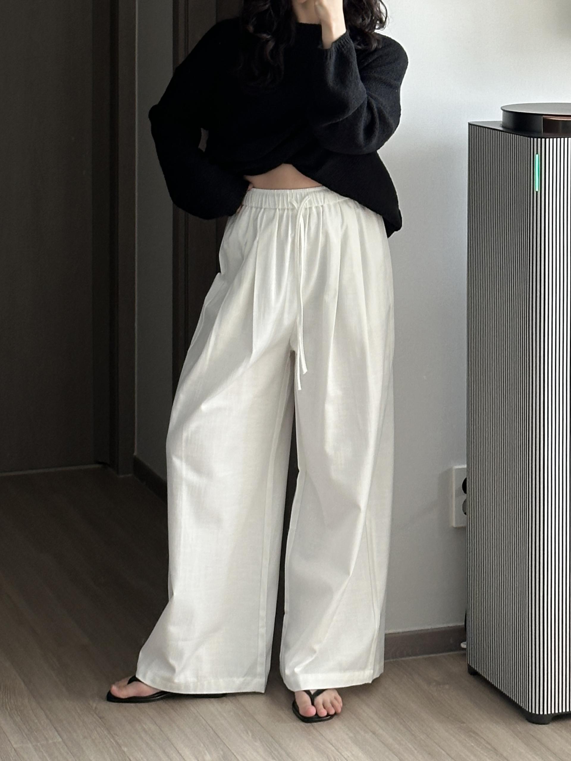 허리 밴딩과 스트링 디테일이 더해져