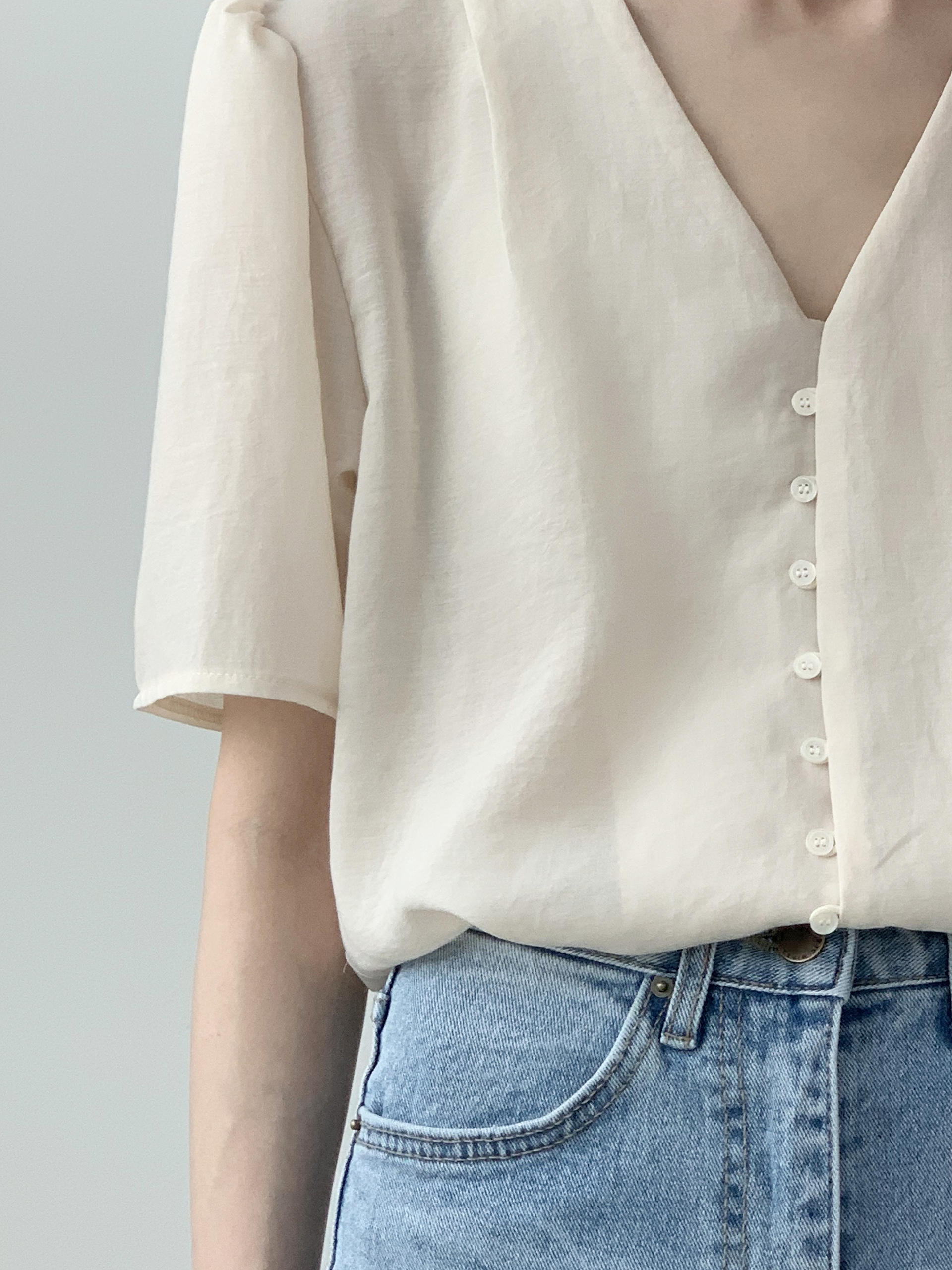 - 목선을 가늘고 여리여리하게 만들어주는 브이넥 디자인