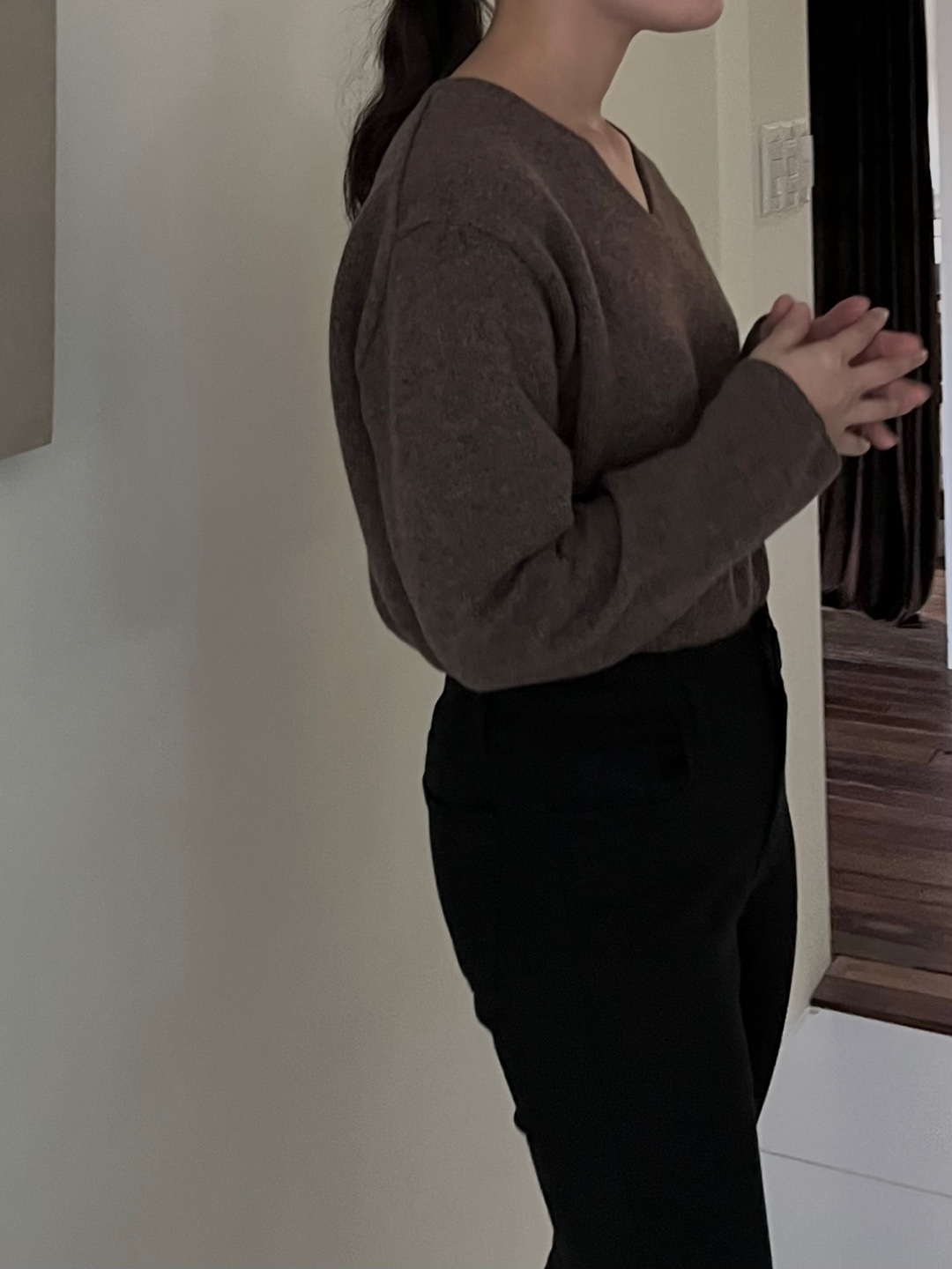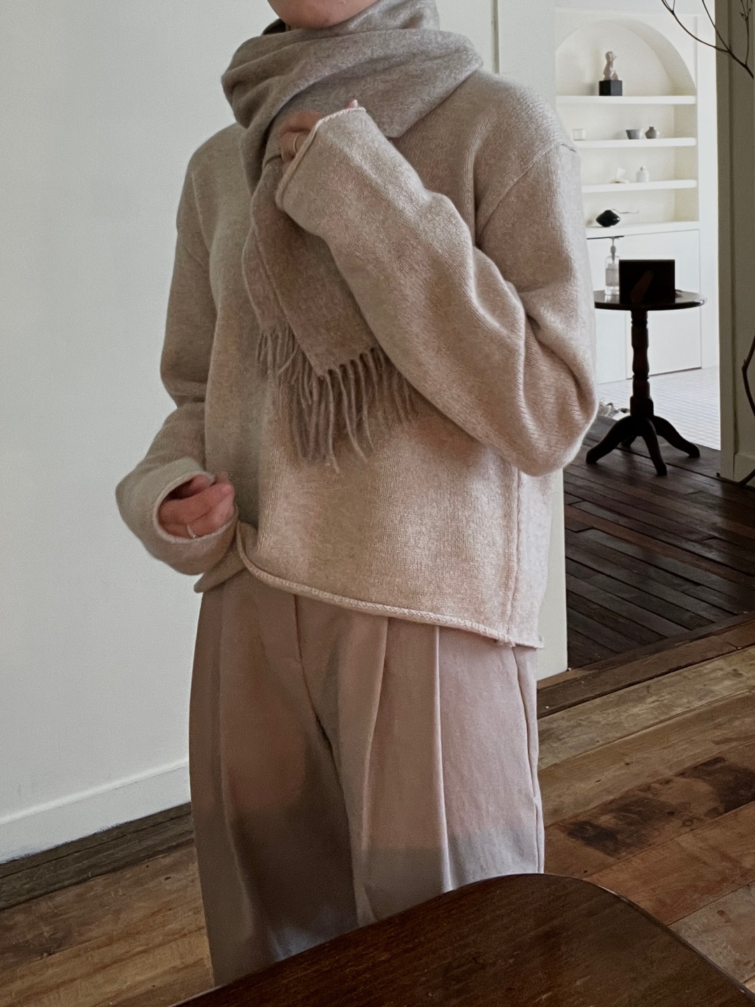 타임리스한 베이직 디자인이 매력적인 다이그 니트 소개 드려요. 전체적으로 베이직한 핏감의 깔끔한 실루엣으로 오랜 시간이 지나도 옷장에 머물며 매년 꺼내입게 되는 유행을 타지 않는 디자인이에요. 너무 오버하거나 핏 되지 않는 클래식한 실루엣이면서 미니멀한듯 네츄럴하게 여유 있는 핏감이 형성 되어요. 티셔츠를 레이어드 하여 착용하기에도 적절한 두께감과 핏감을 가지고 있으며 깔끔한 라운드 넥의 티셔츠와 매치하시거나 단독으로 매치해주셔도 예쁘게 착용 하실 수 있답니다. 베이직한 디자인과 클래식한 컬러 구성으로 데님이나 슬랙스, 스커트 등등 다양한 하의와 어우러져 활용도가 높은 아이템이에요. 깊고 부드러운 컬러감이 느껴지는 오트 베이지와 카푸치노 브라운 두가지로 준비 해봤어요. 취향대로 선택 해주세요!
