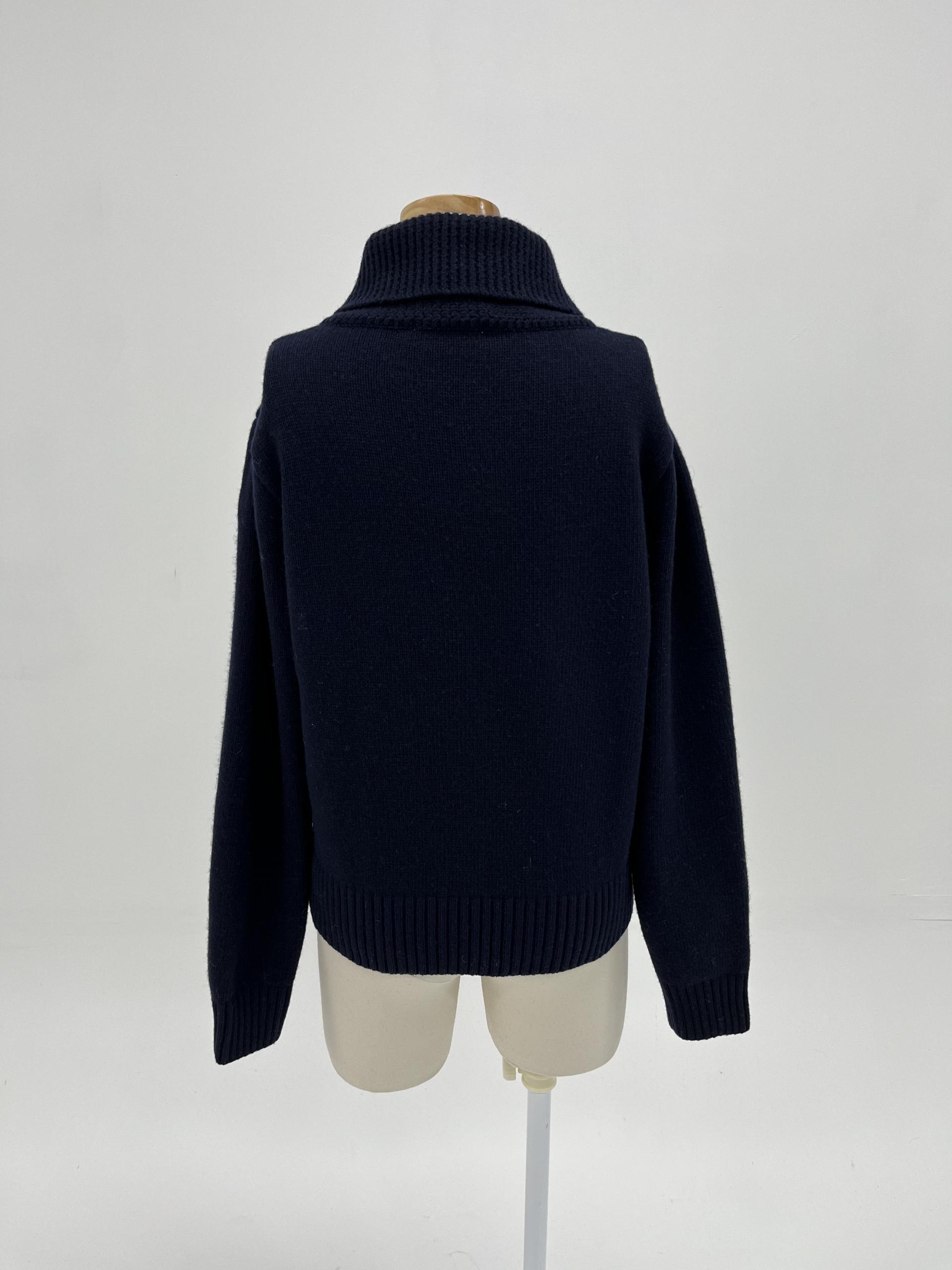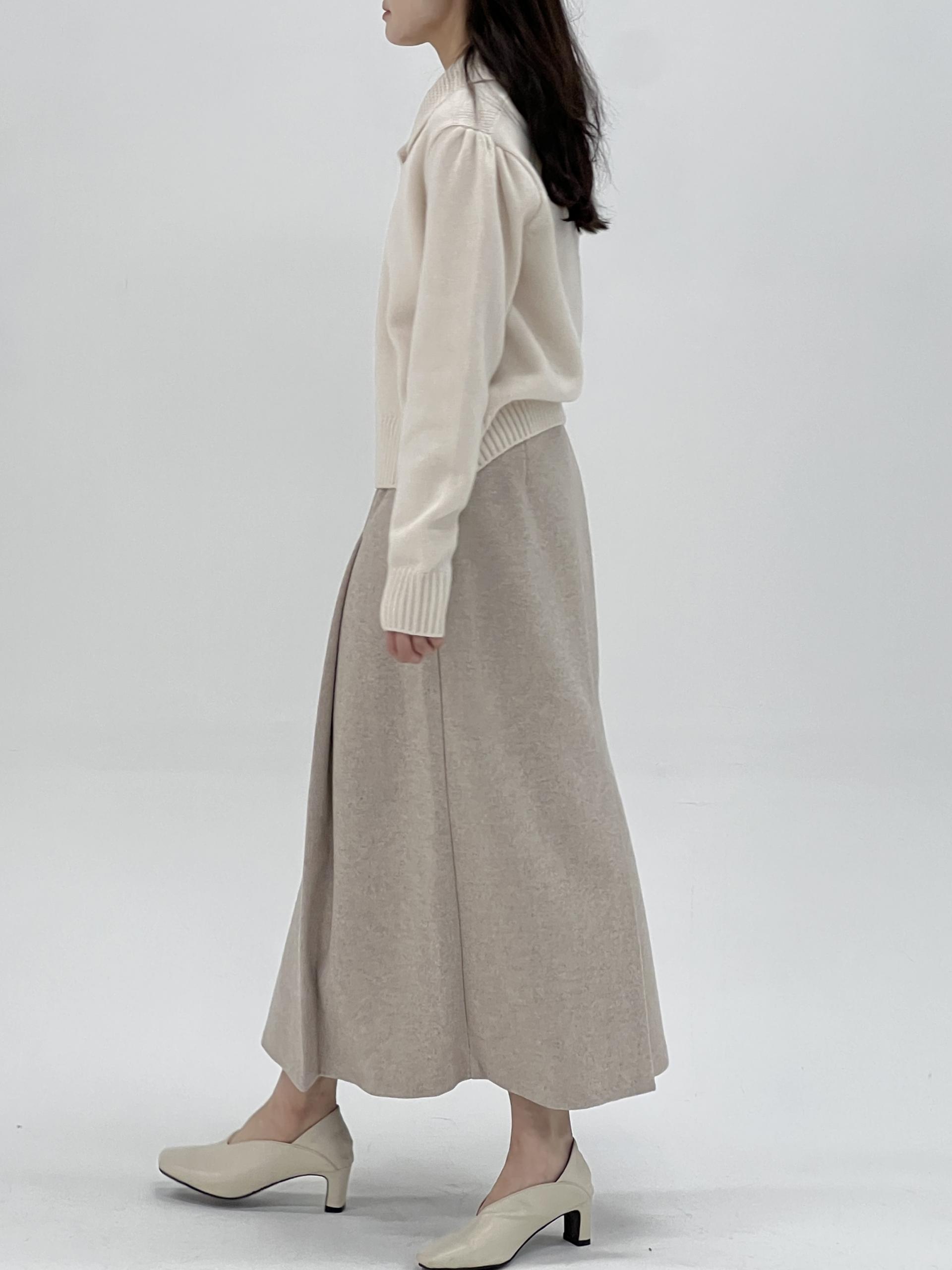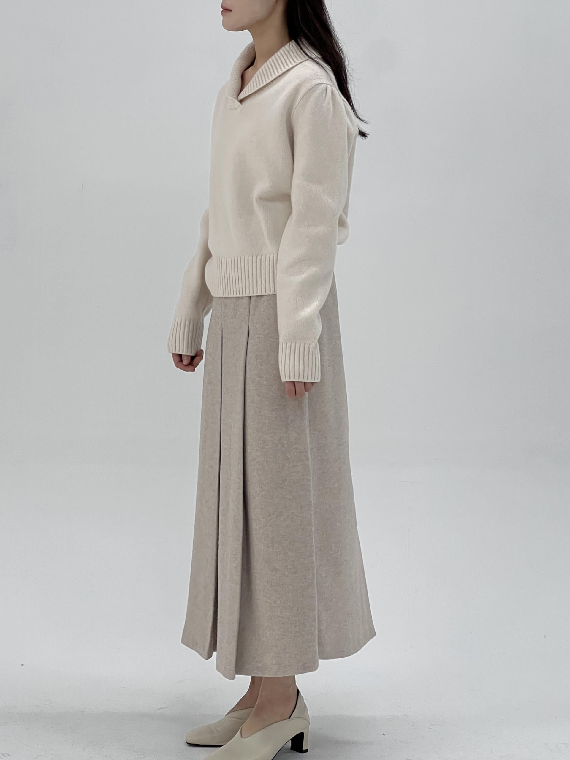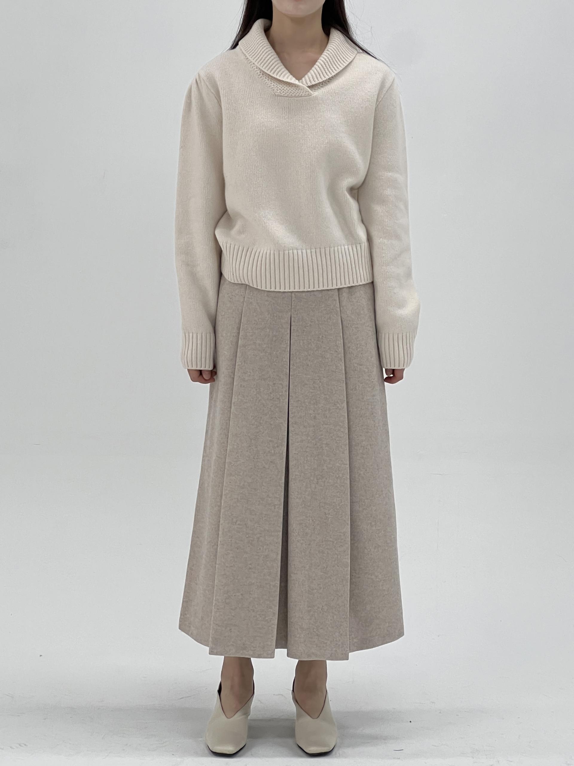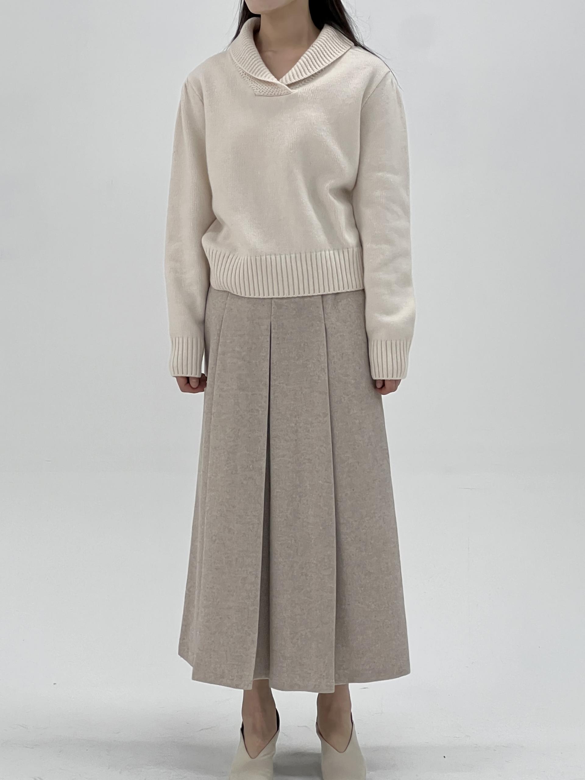 - 얕은 깊이의 숄 카라 디자인이 안정감을 느끼게 해주는 니트 웨어