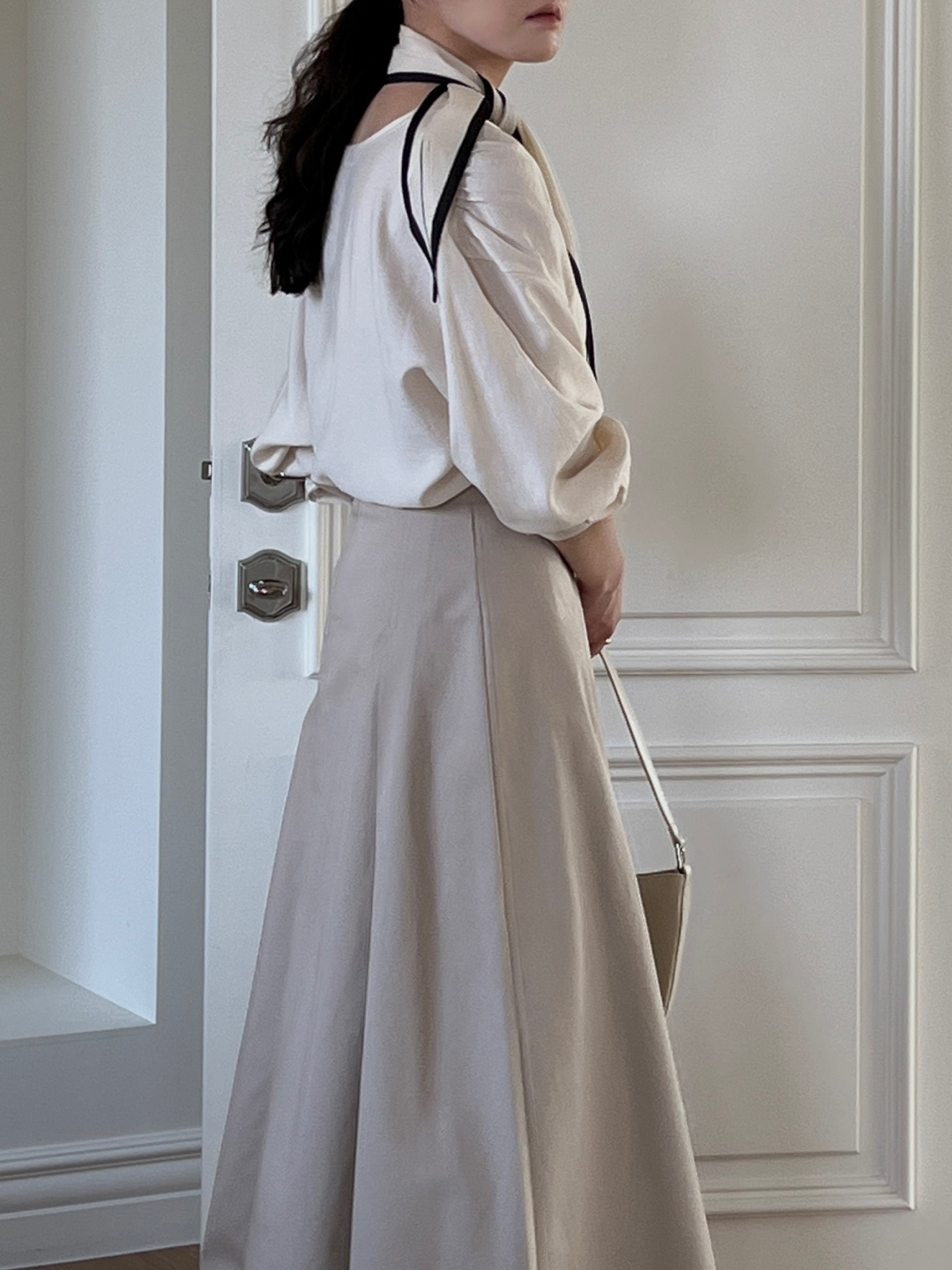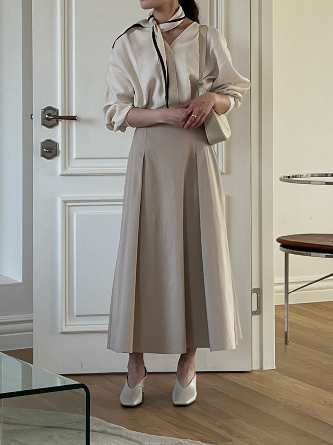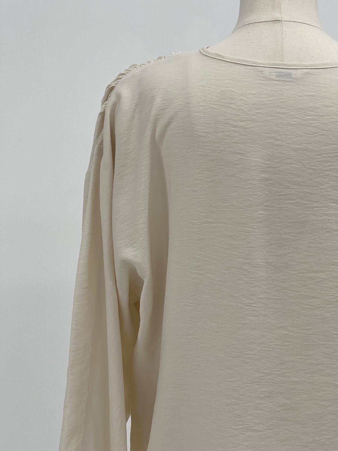 구김이 적으면서 셔링이 잔잔하게 잘잡혀있어 페미닌한 분위기가