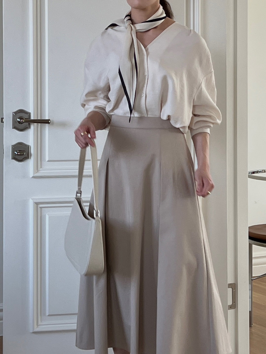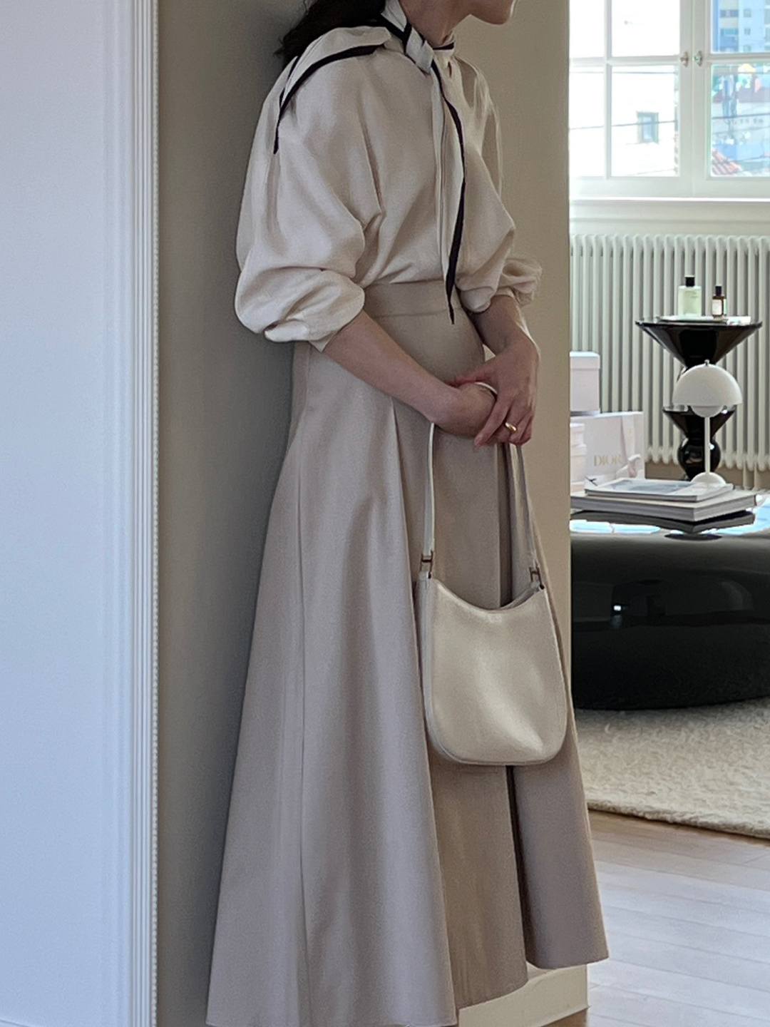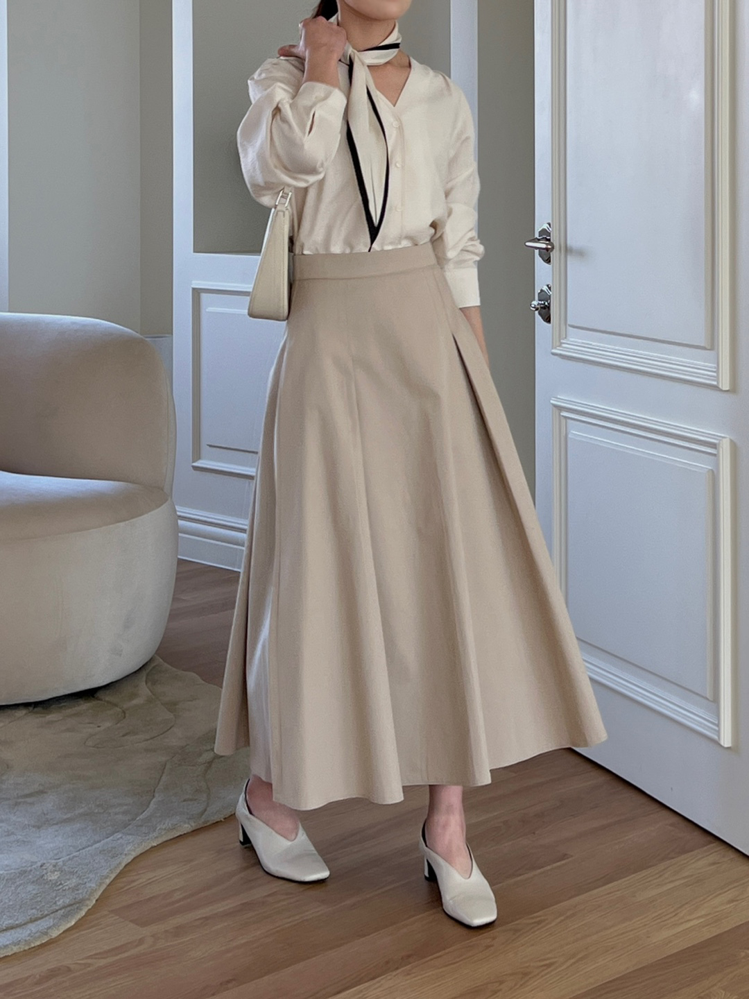 구김이 적으면서 셔링이 잔잔하게 잘잡혀있어 페미닌한 분위기가