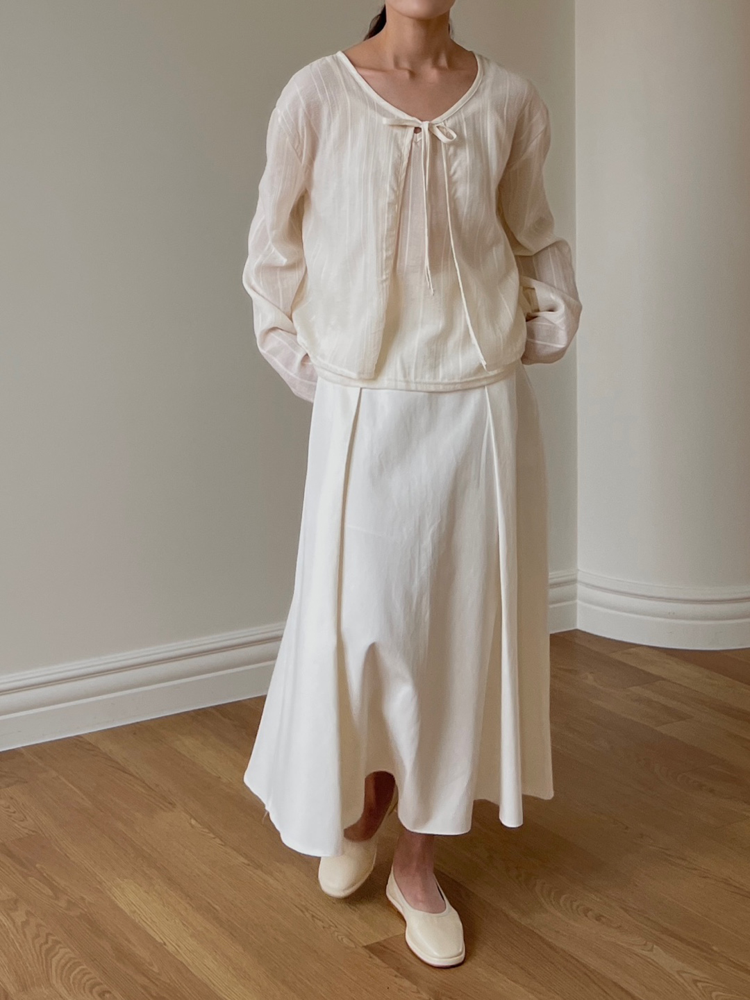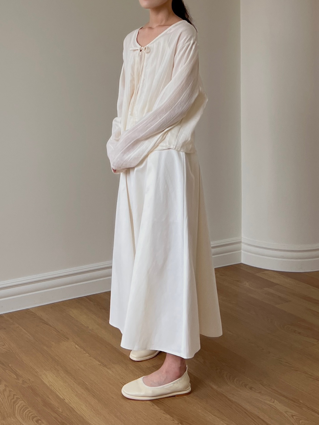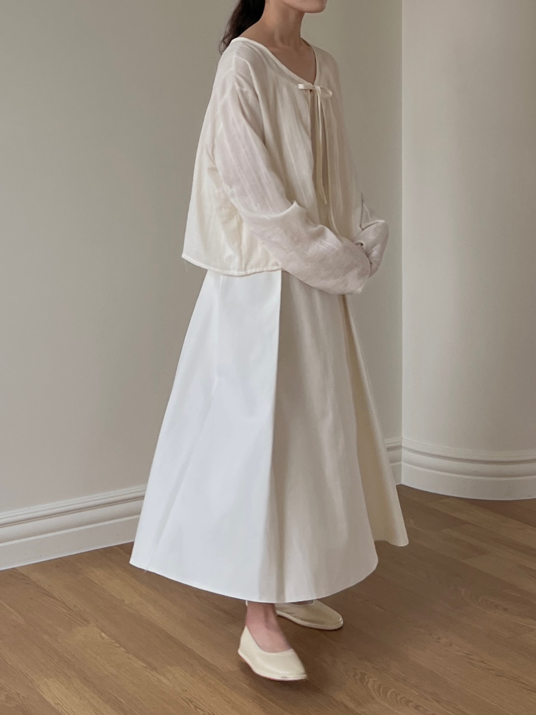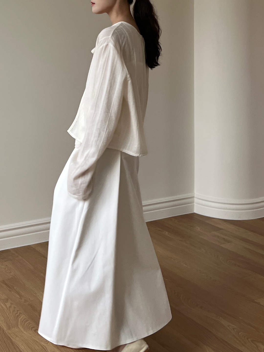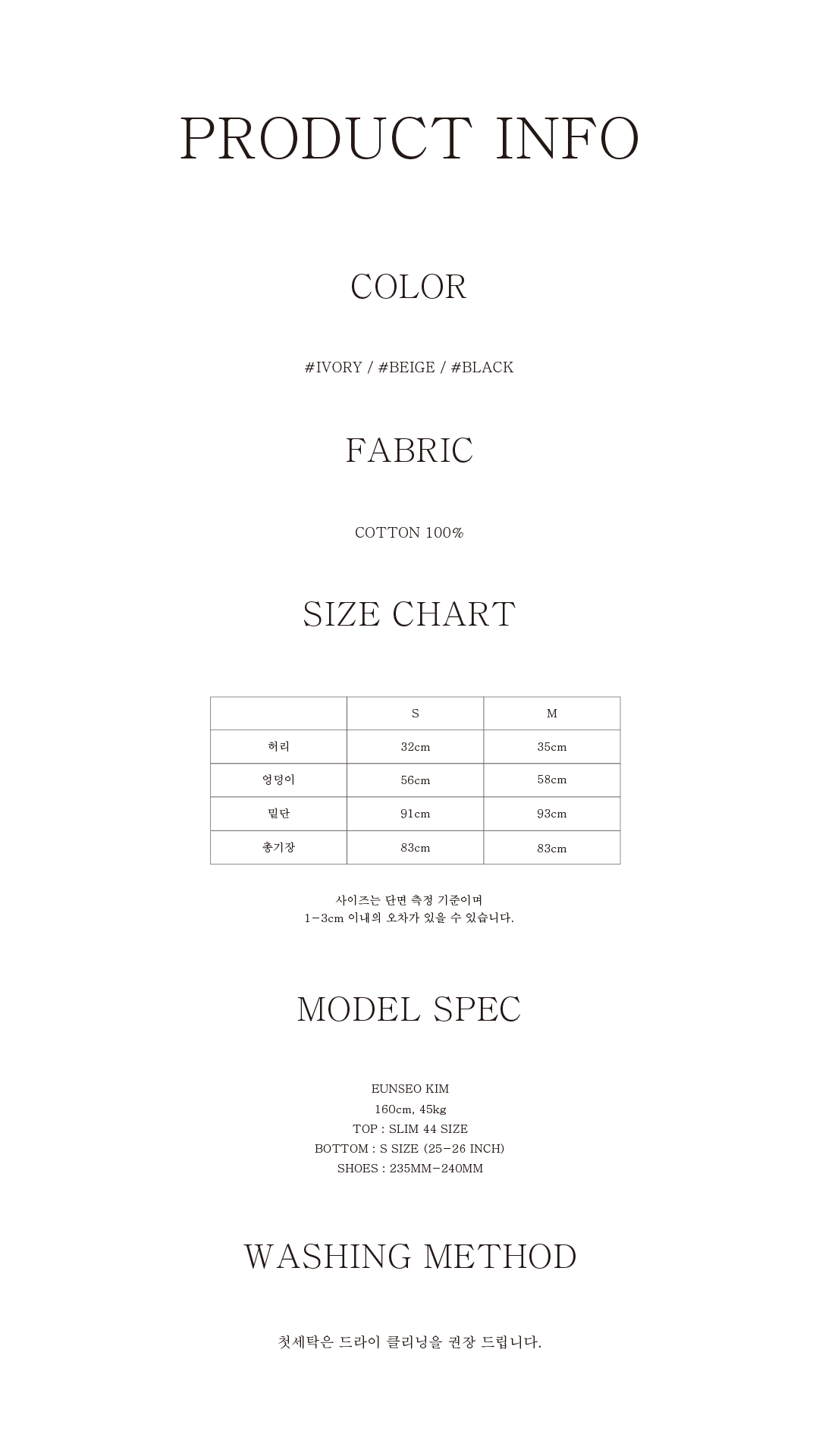 탄탄한 두께감으로 안정적인 핏을 자랑하는 코튼 훌 스커트입니다.