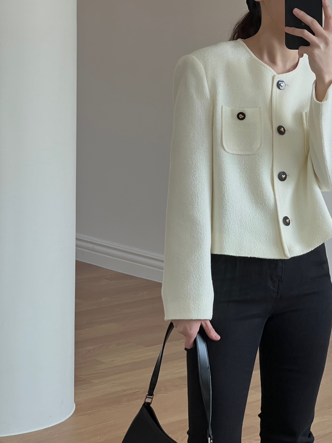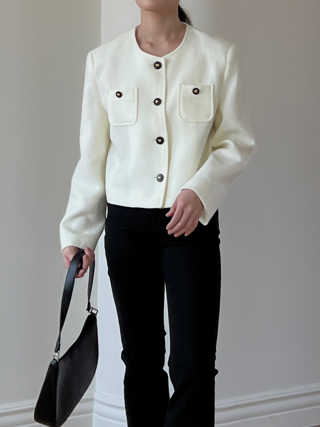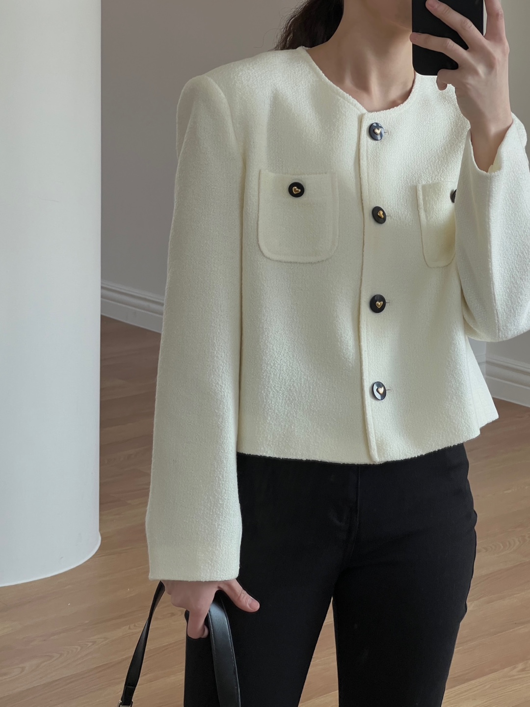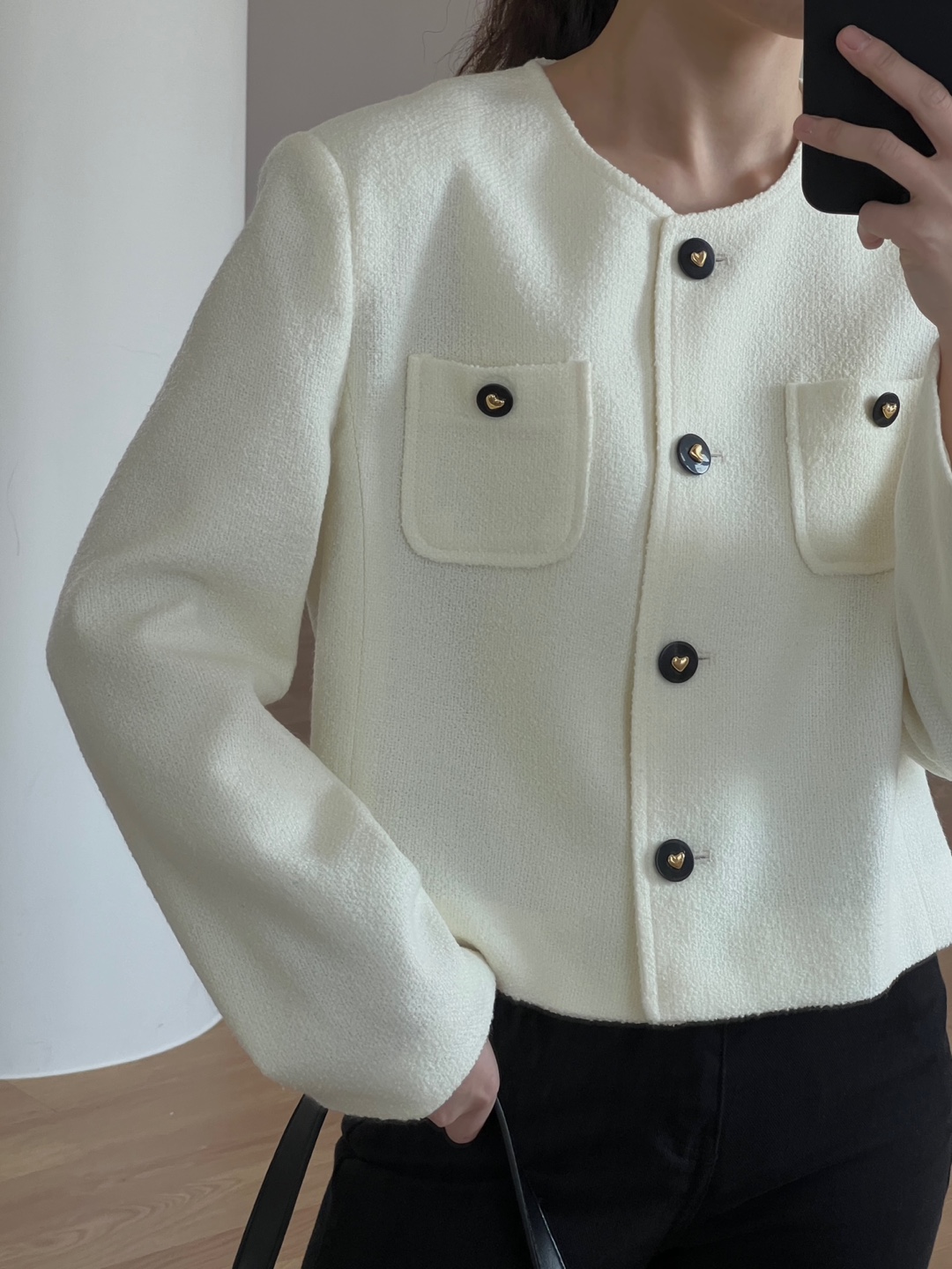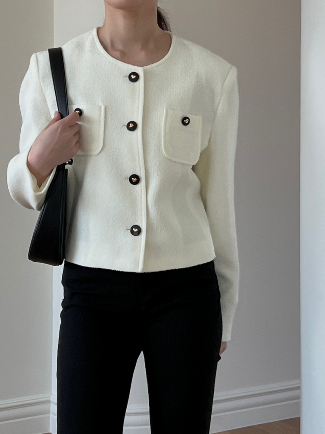 러블리한 버튼 디테일이 매력적인 리베 트위드 자켓 소개드려요.
