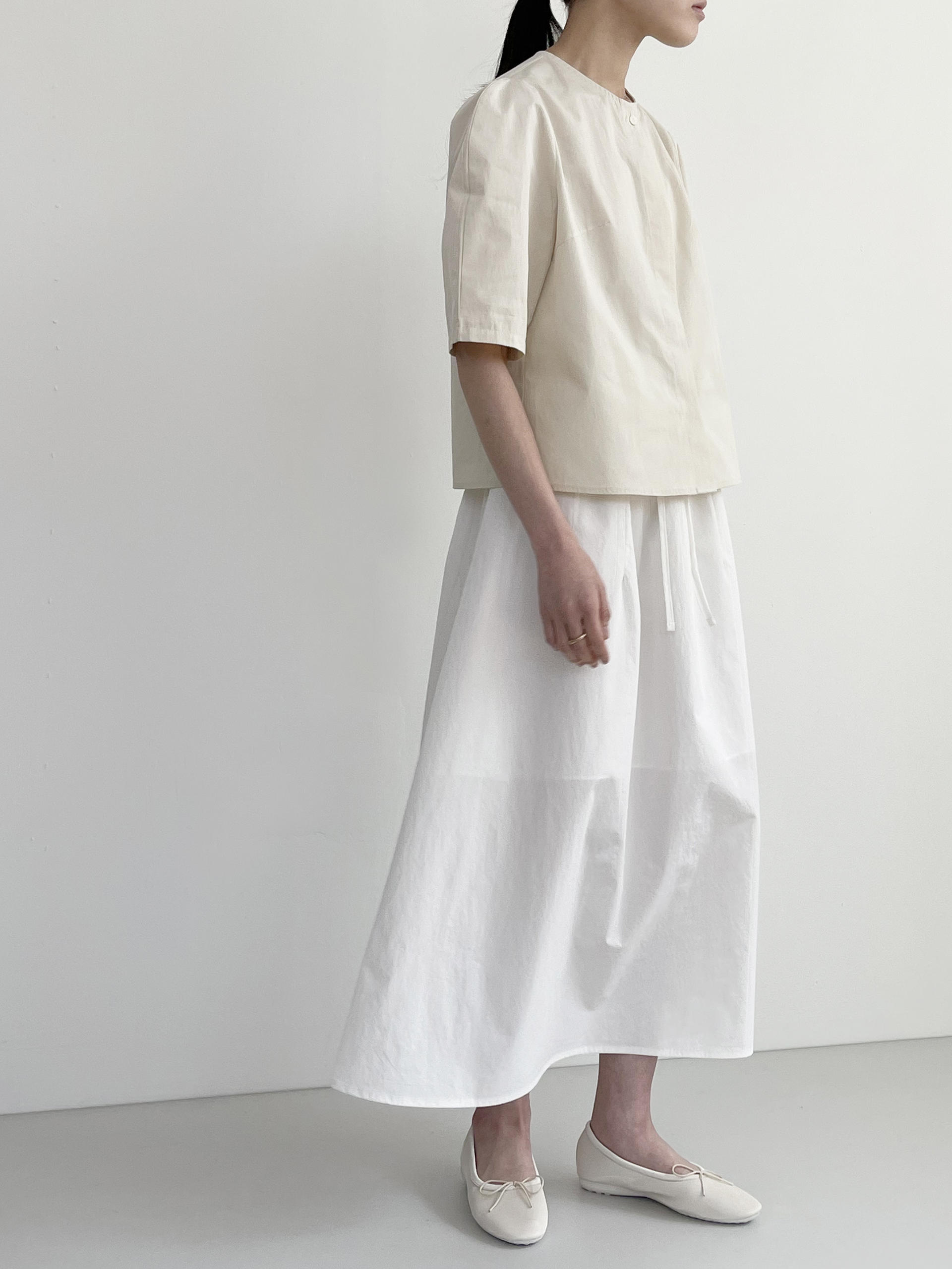 미니멀, 네츄럴한 무드의 코튼 훌 스커트입니다.