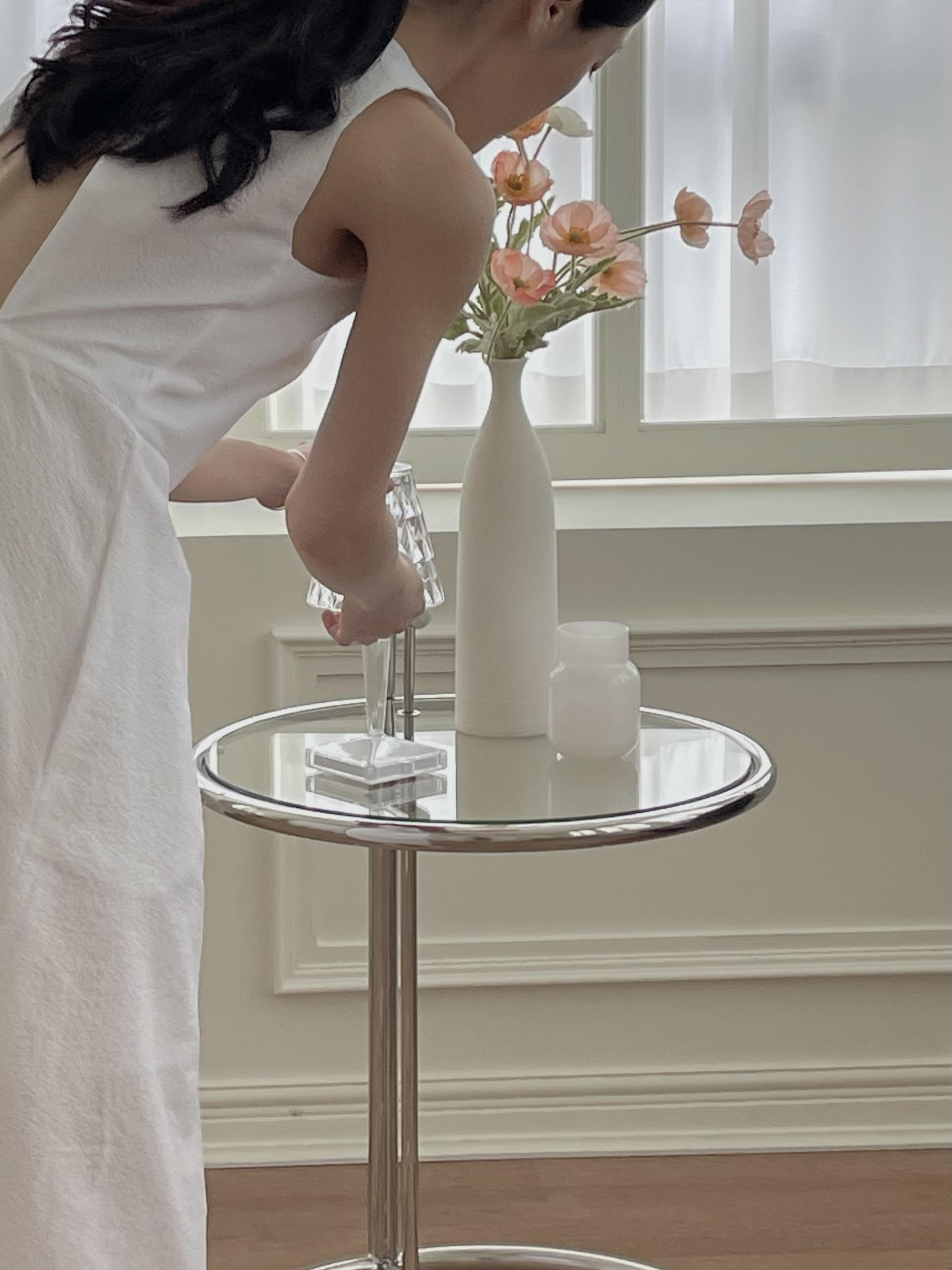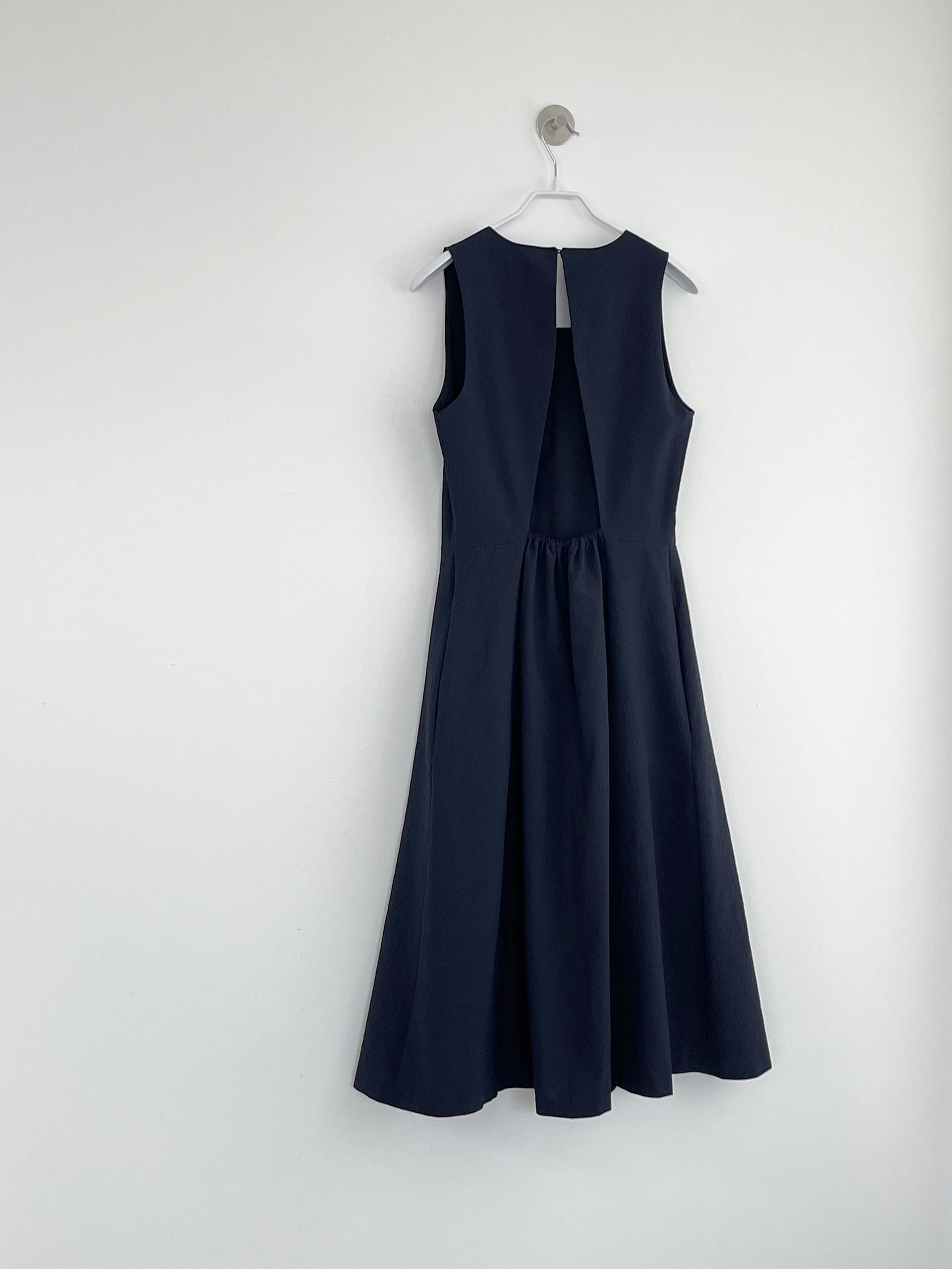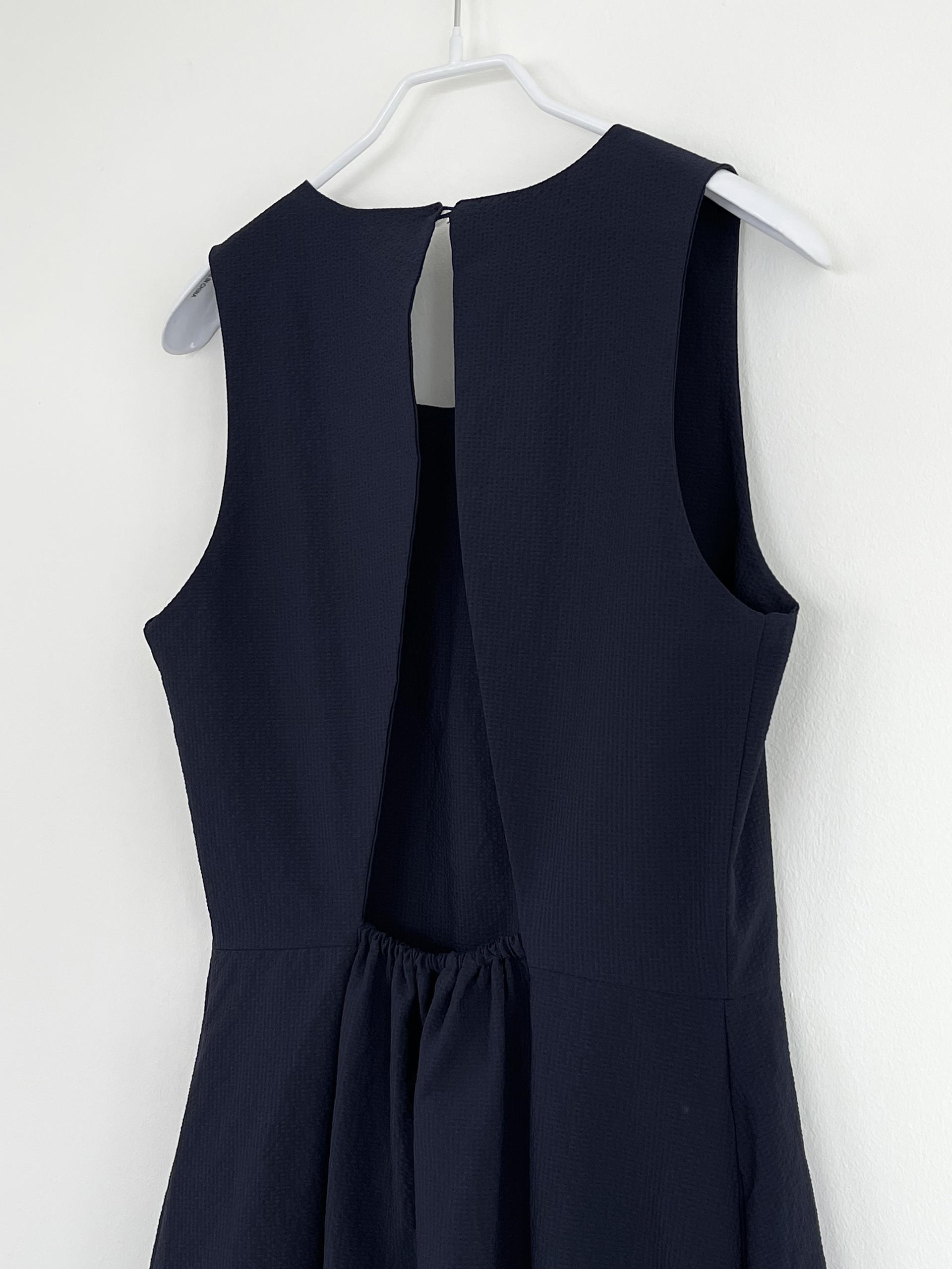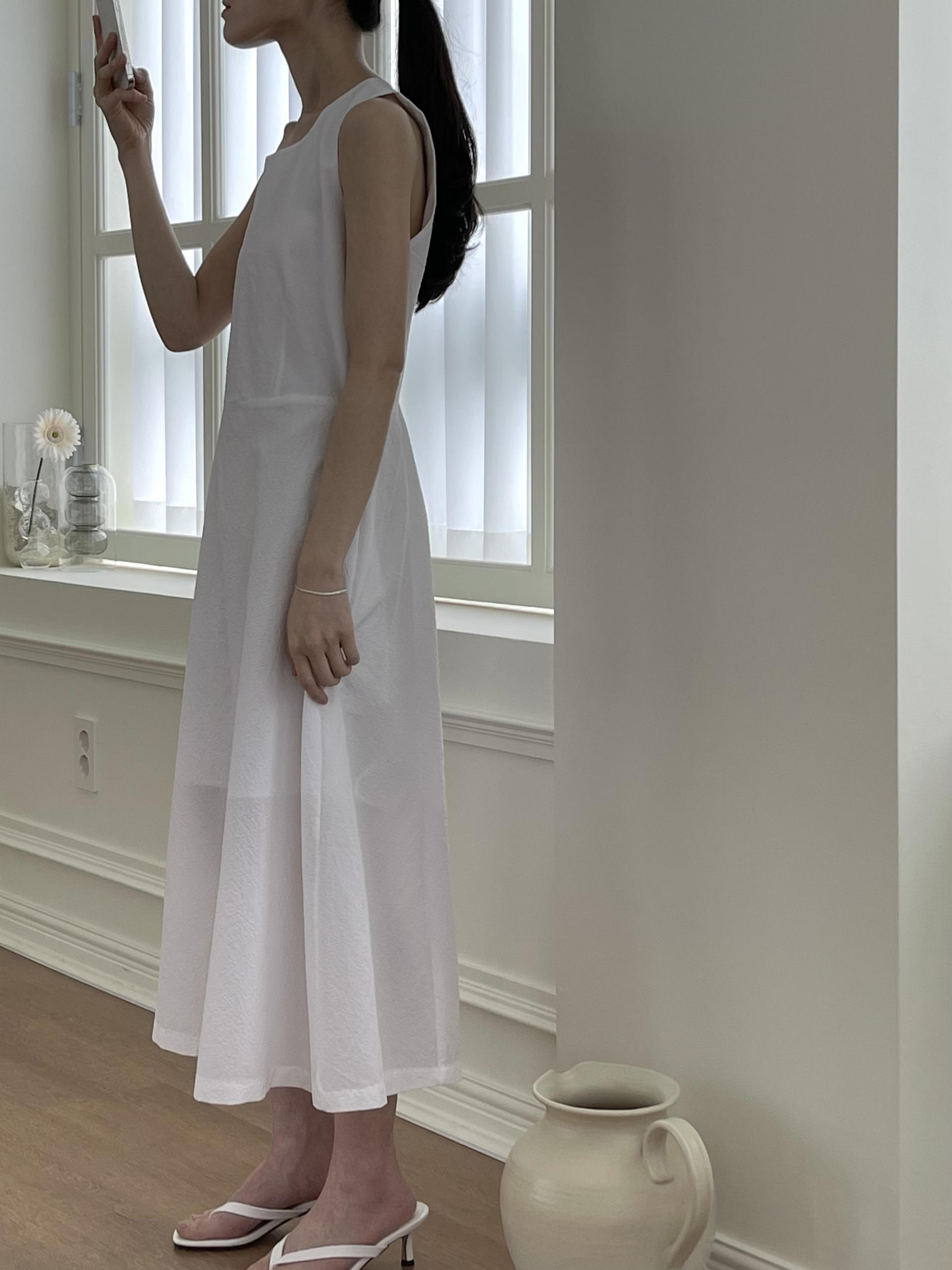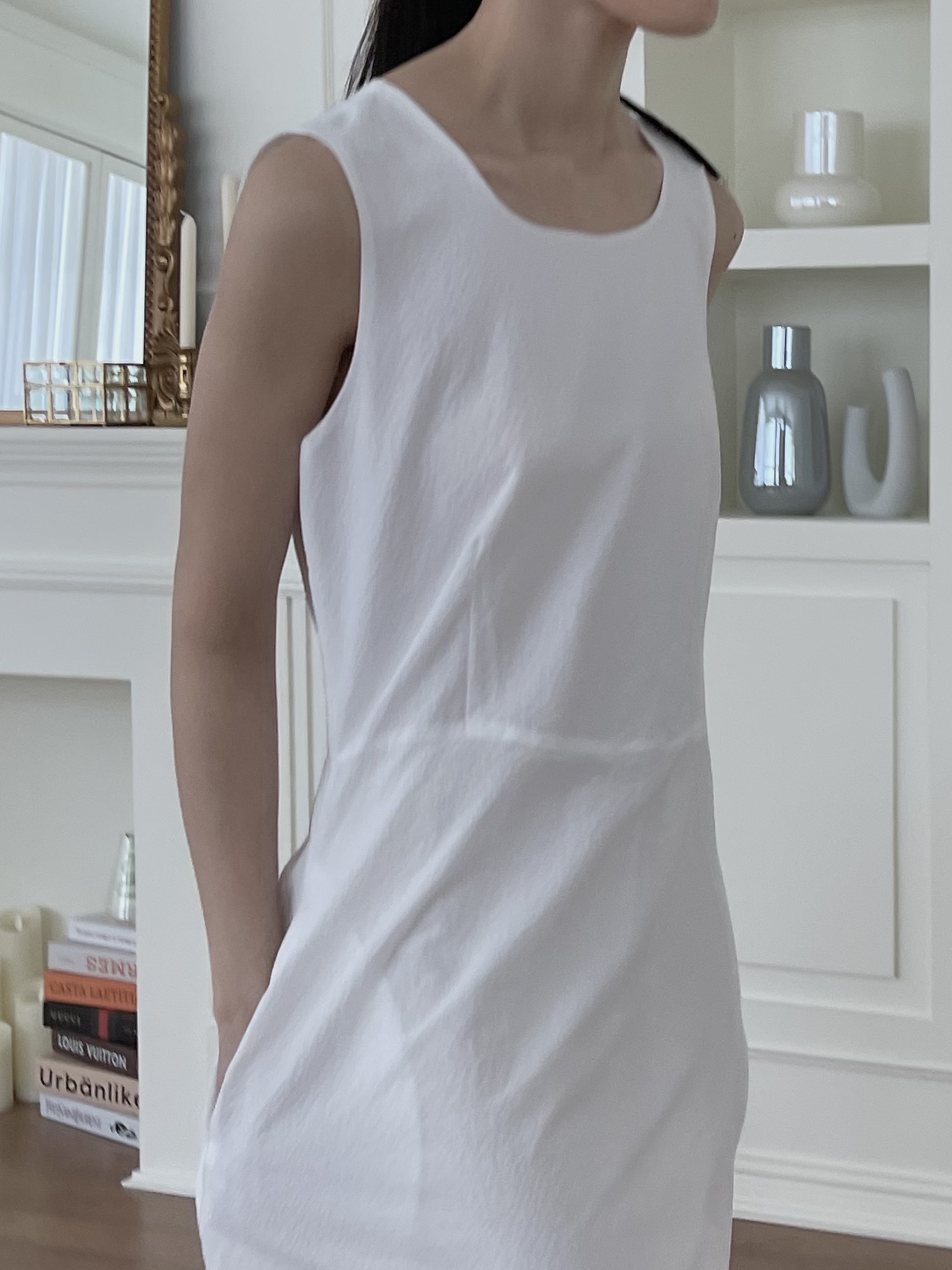 - 심플한 라운드넥, 뒷판 네크 안쪽 원버튼 여밈 / 홀