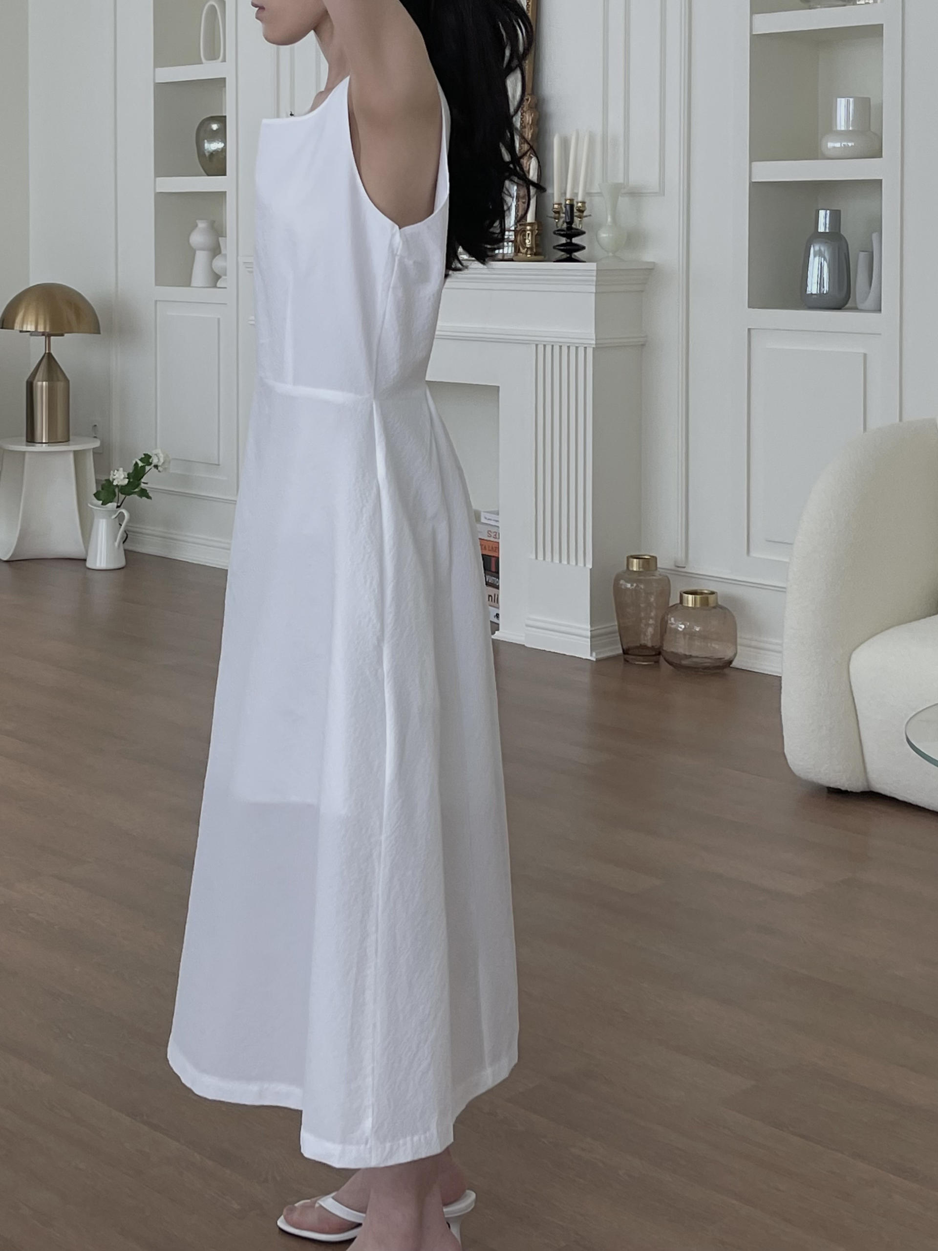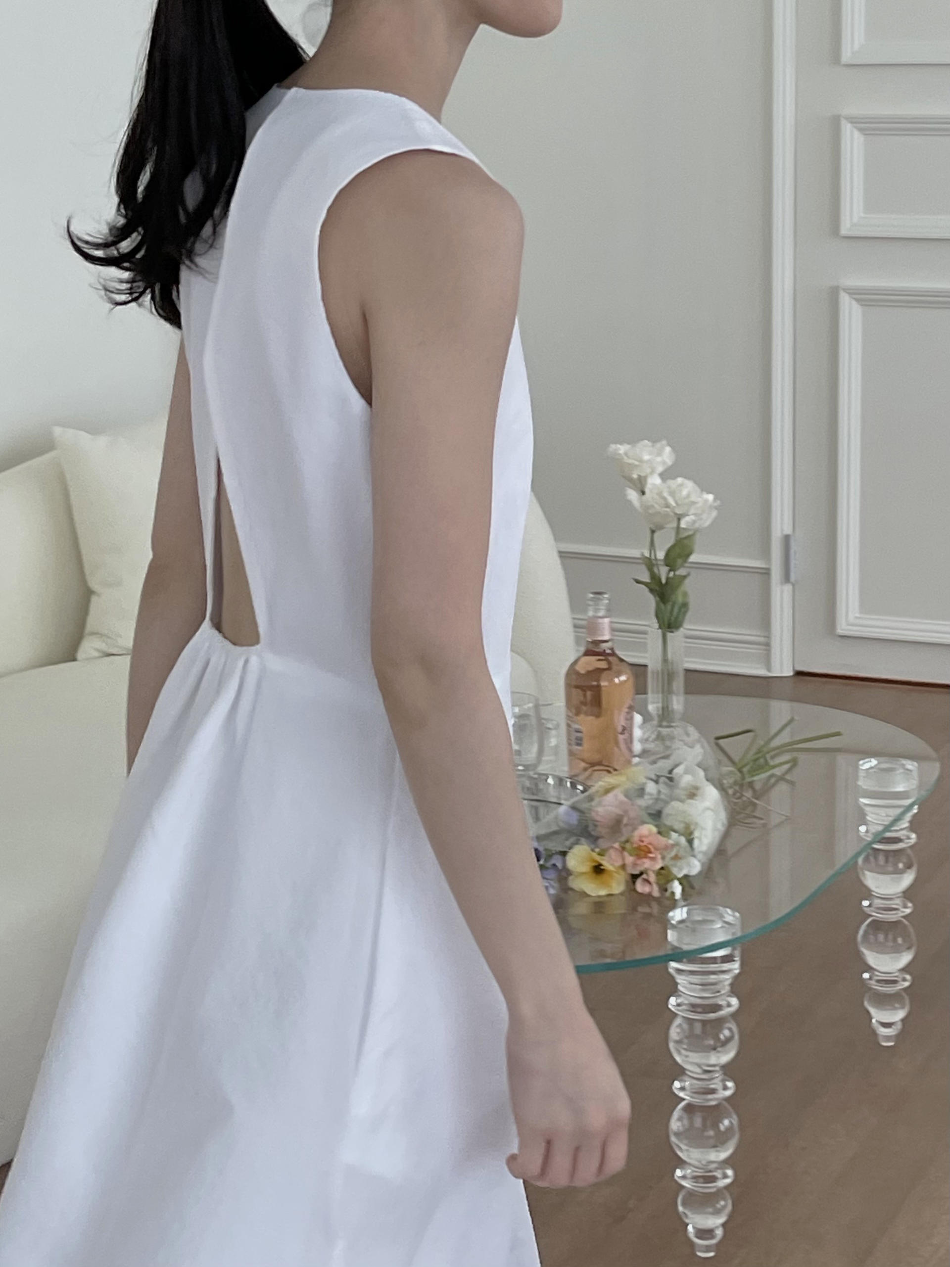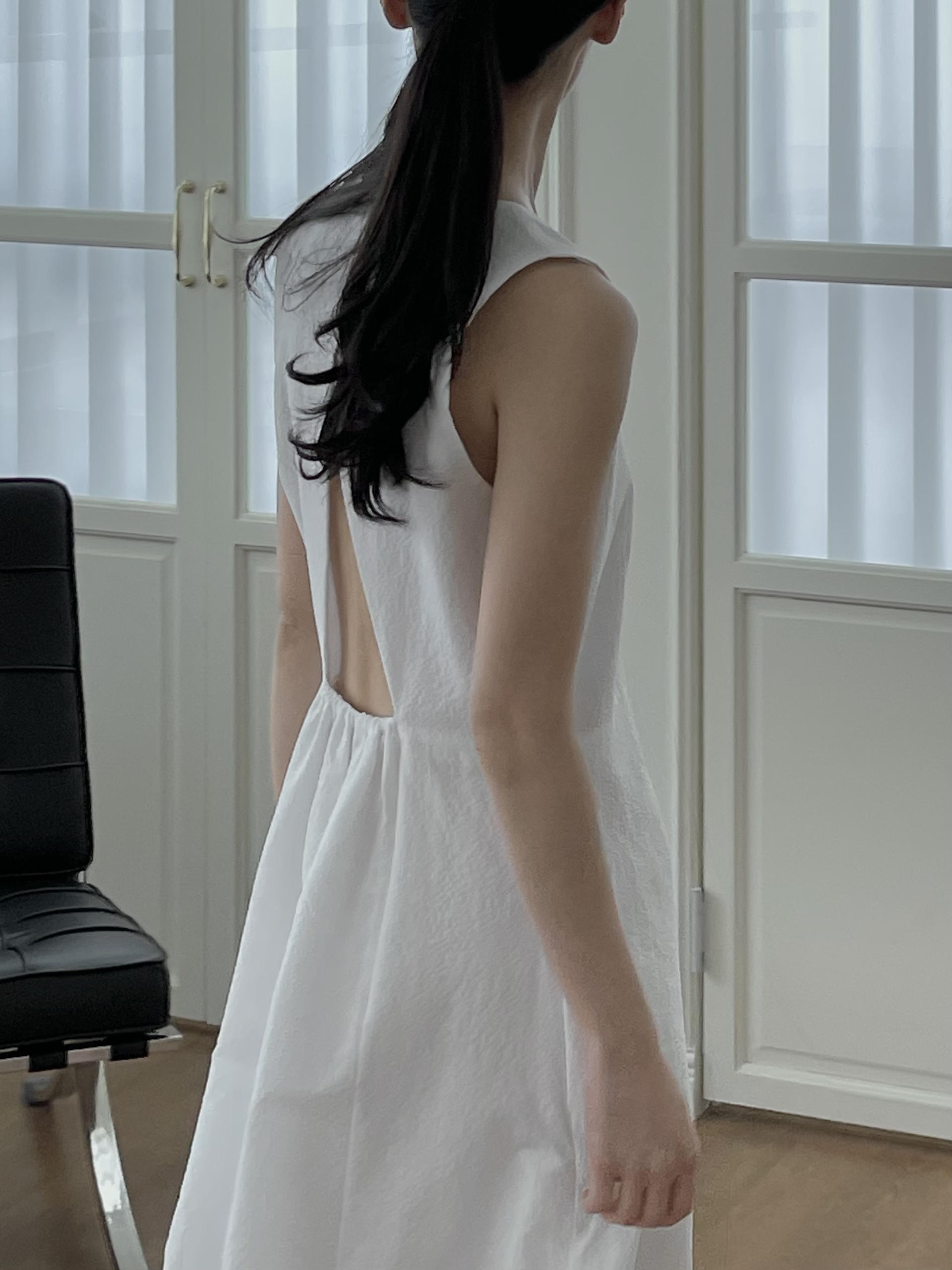 - 얇은 밴딩 처리한 백 홀 포인트, 허리 다트