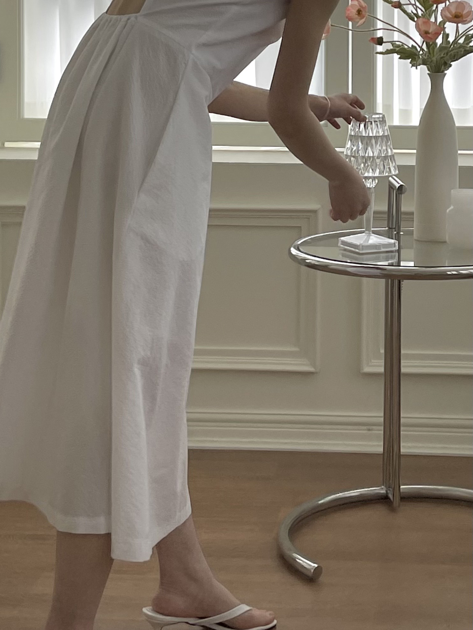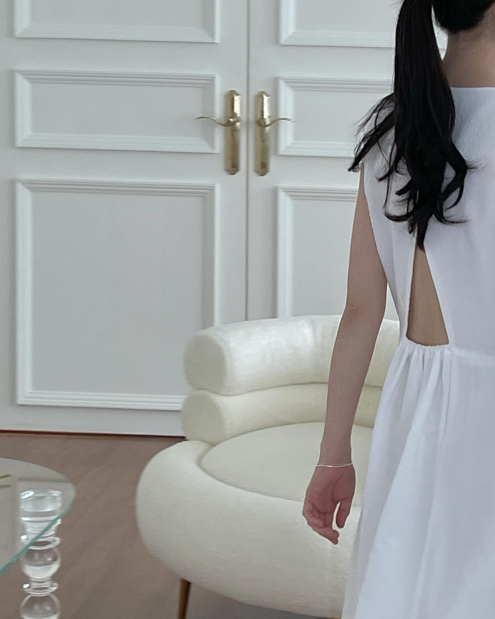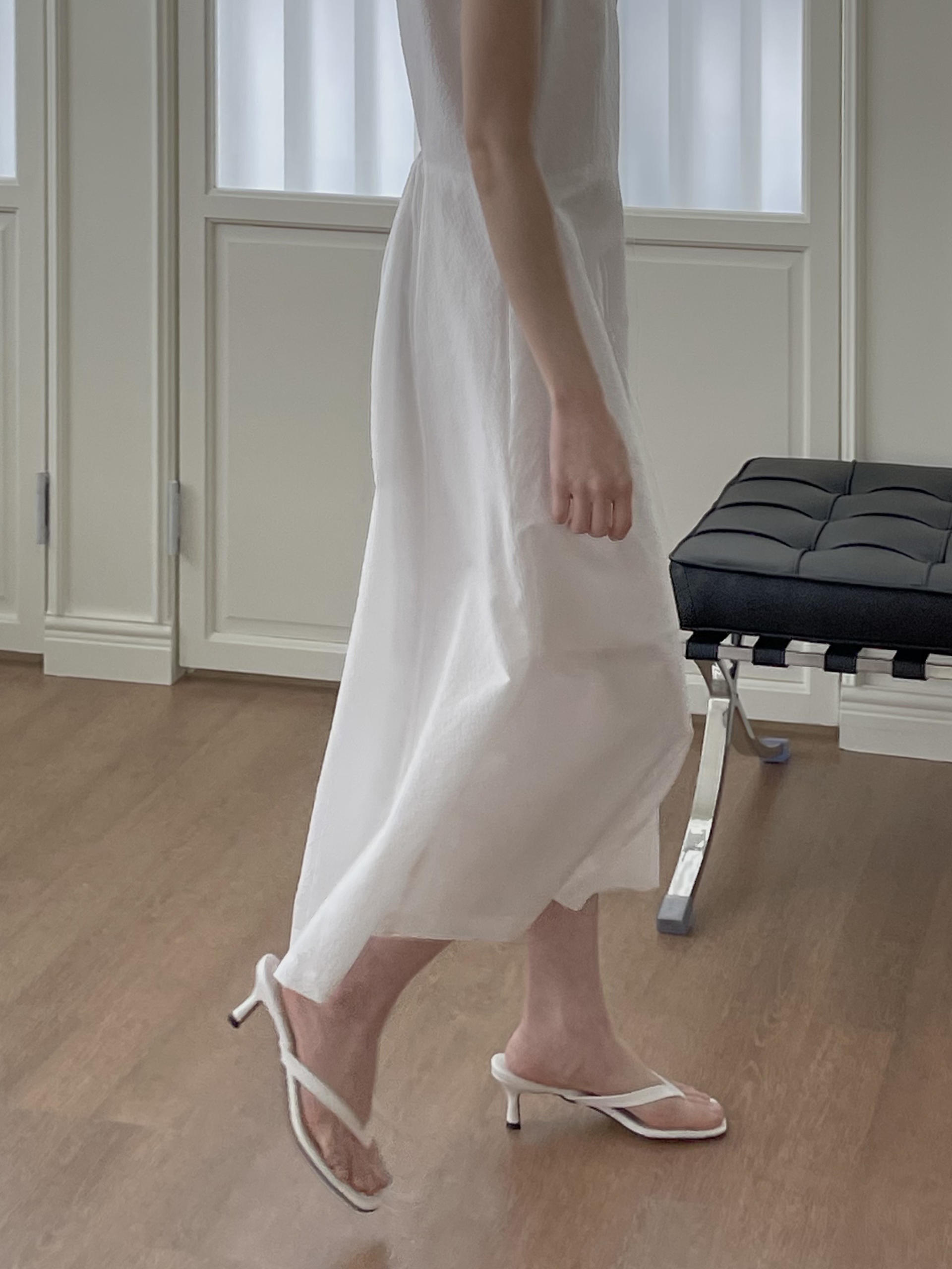 - 얇은 밴딩 처리한 백 홀 포인트, 허리 다트