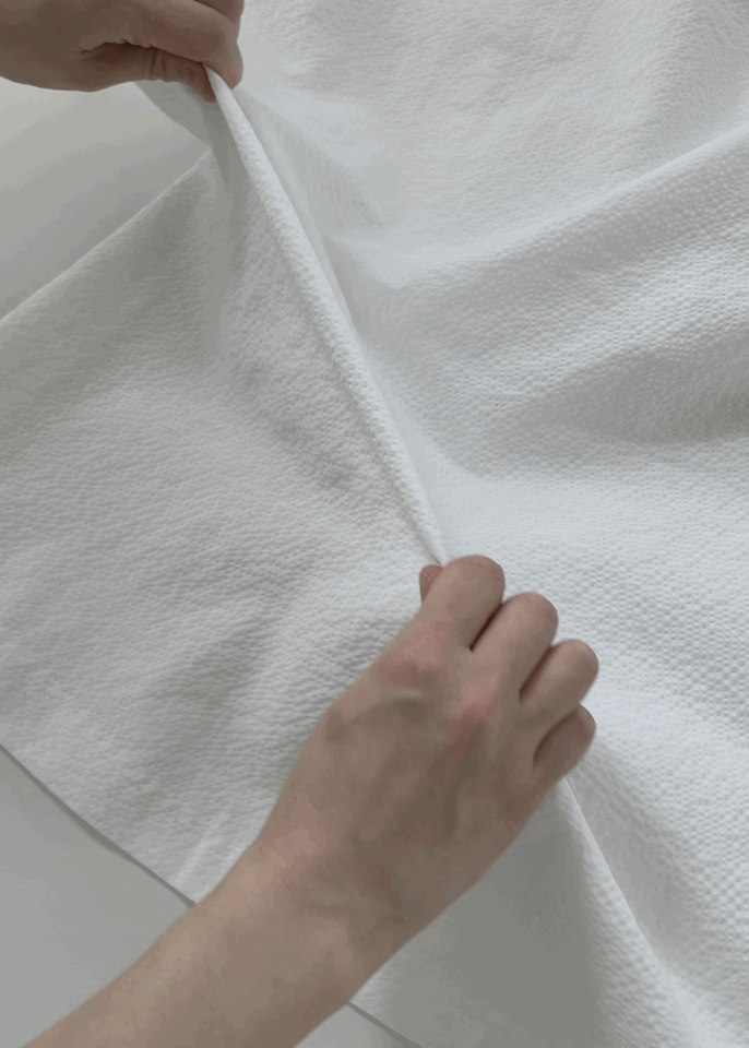 바이어스 방향으로 쭉쭉 늘어나는 시어서커 원단을 사용하여