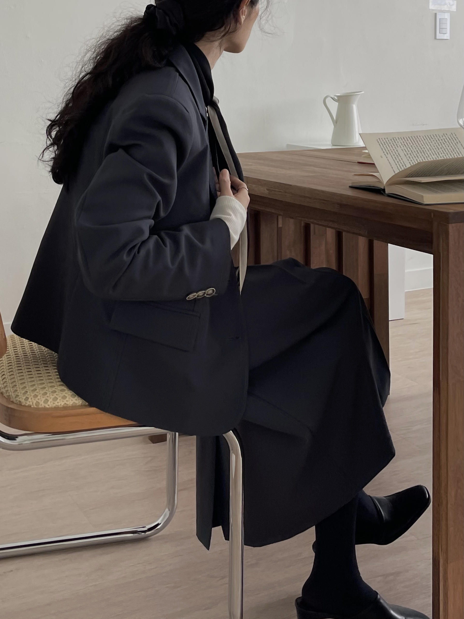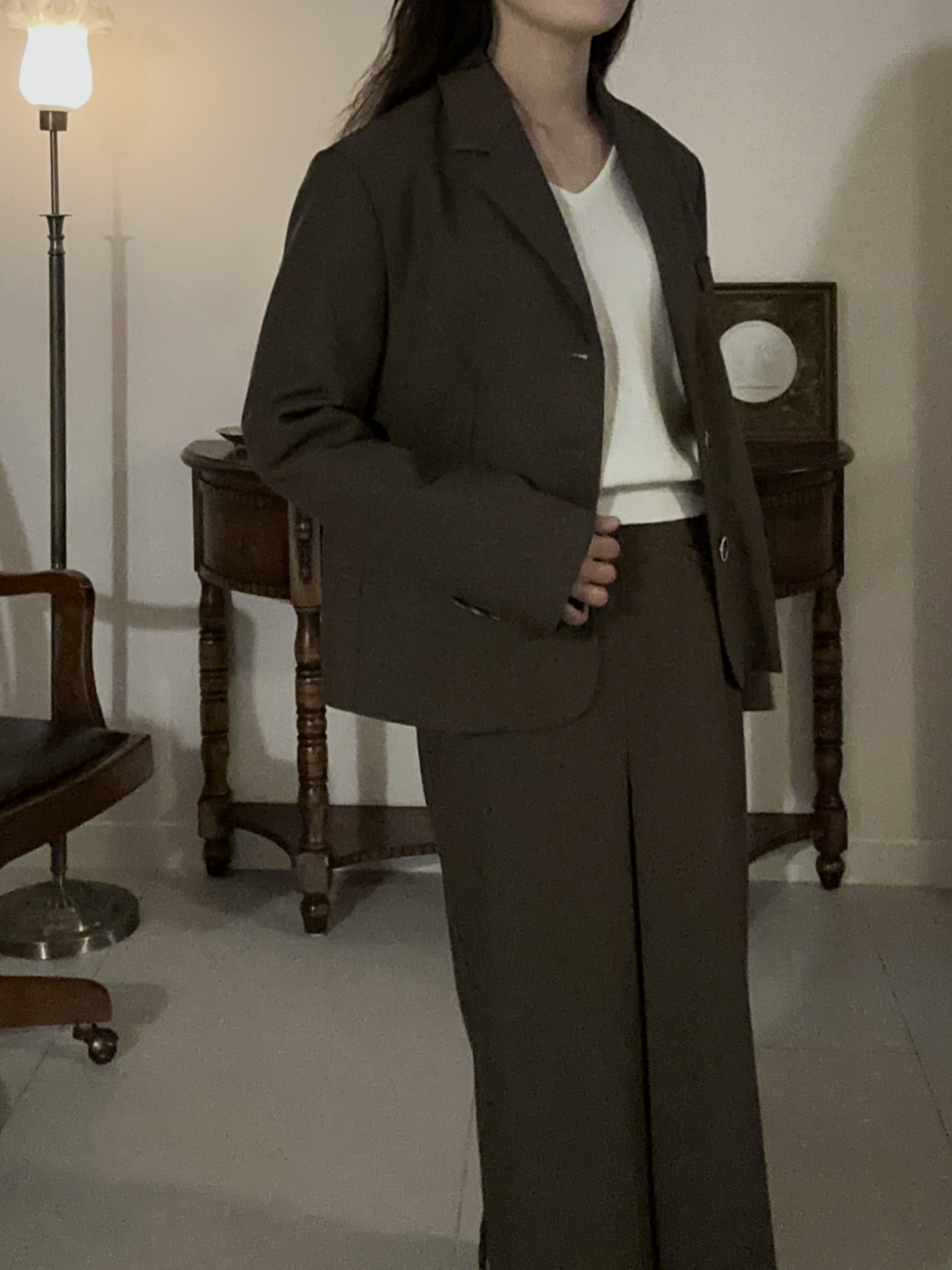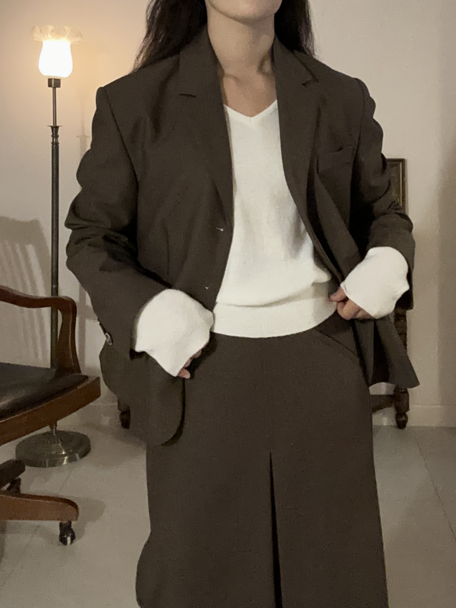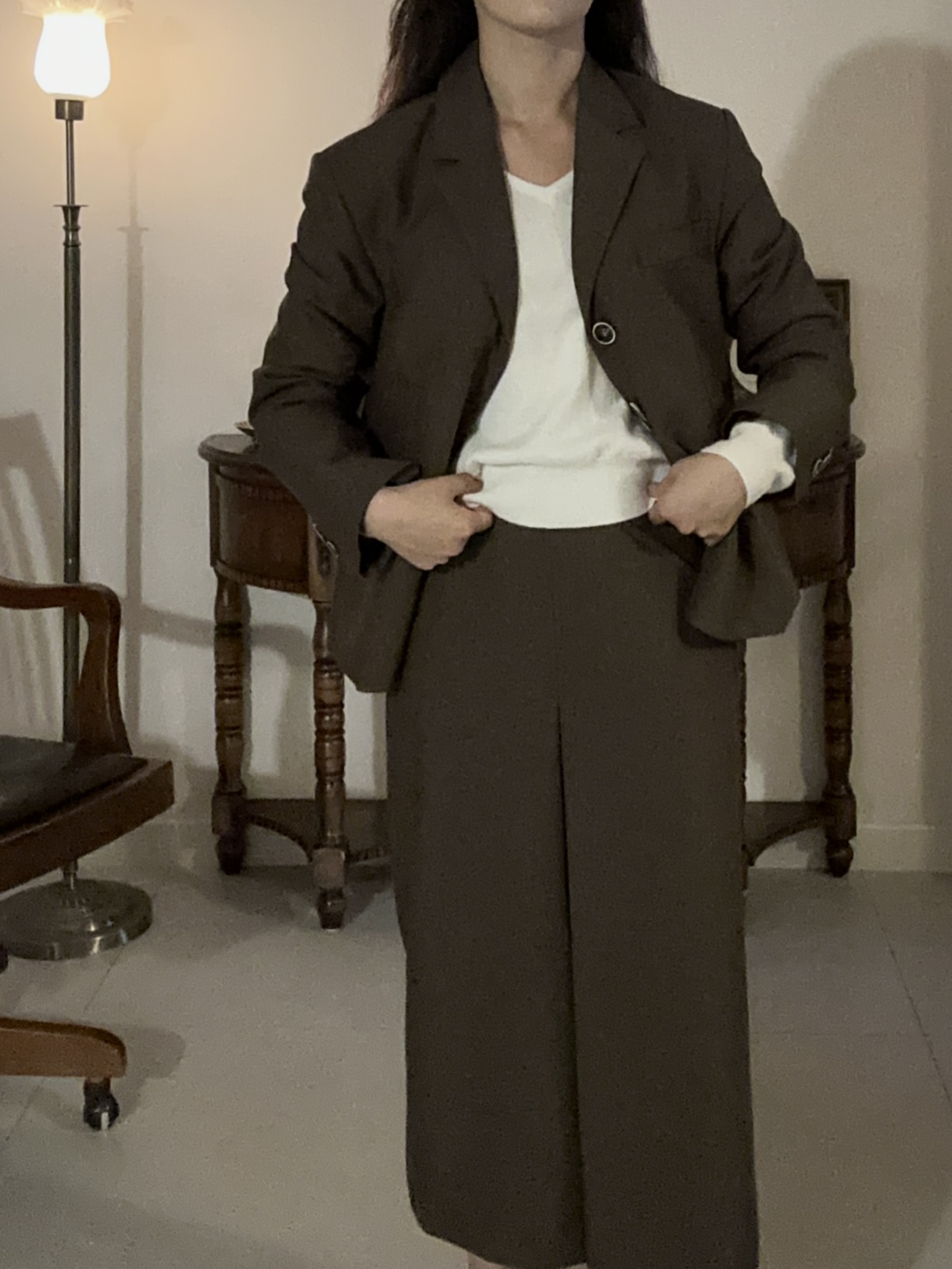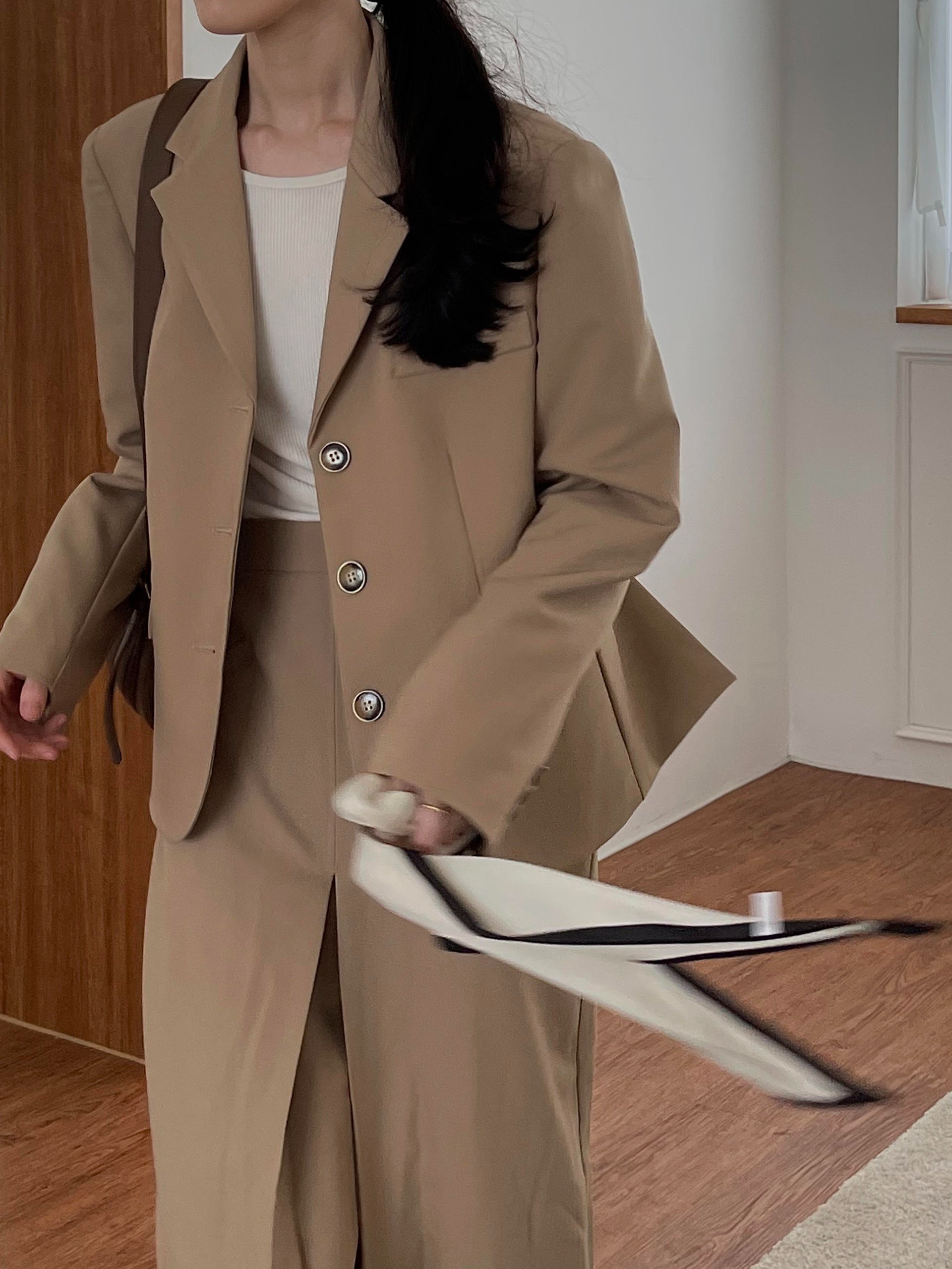 - 간절기에는 셋업 단독으로 겨울에는 롱 코트와 레이어드 코디하기 용이