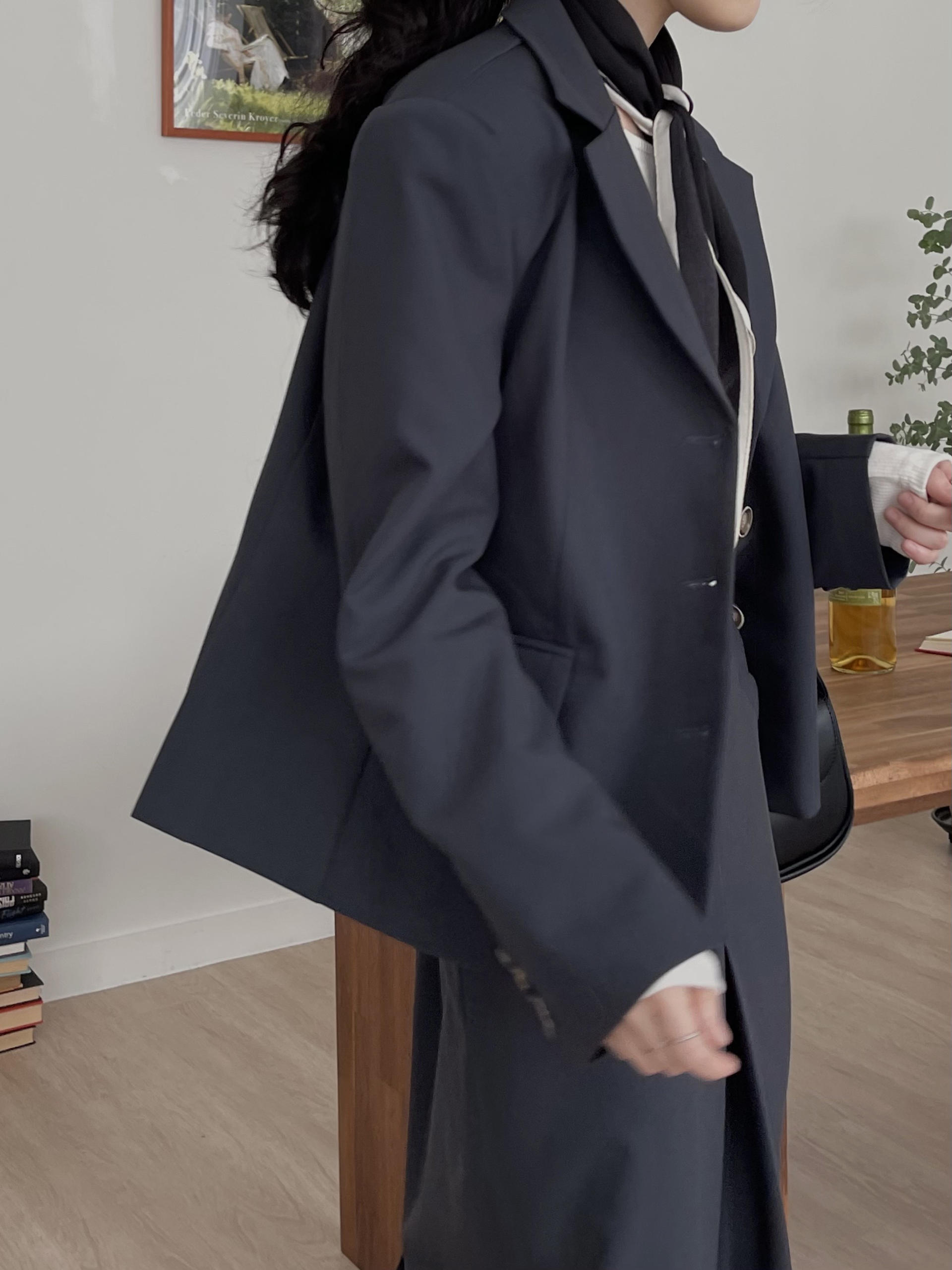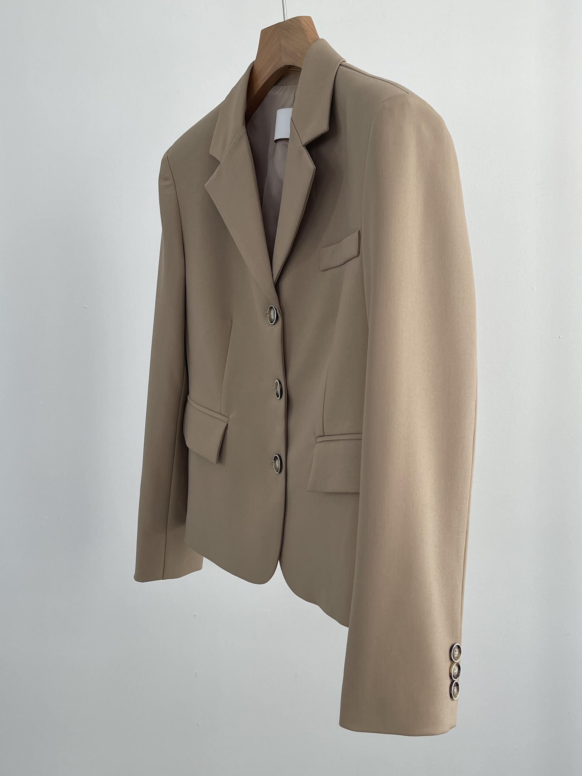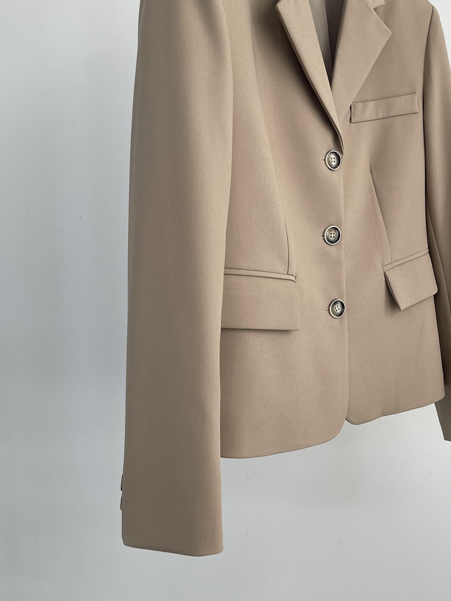 - 프론트 다트 / 싱글 브레스트 / 숄더 패드 / 플랩 포켓 / 소매 쓰리 버튼