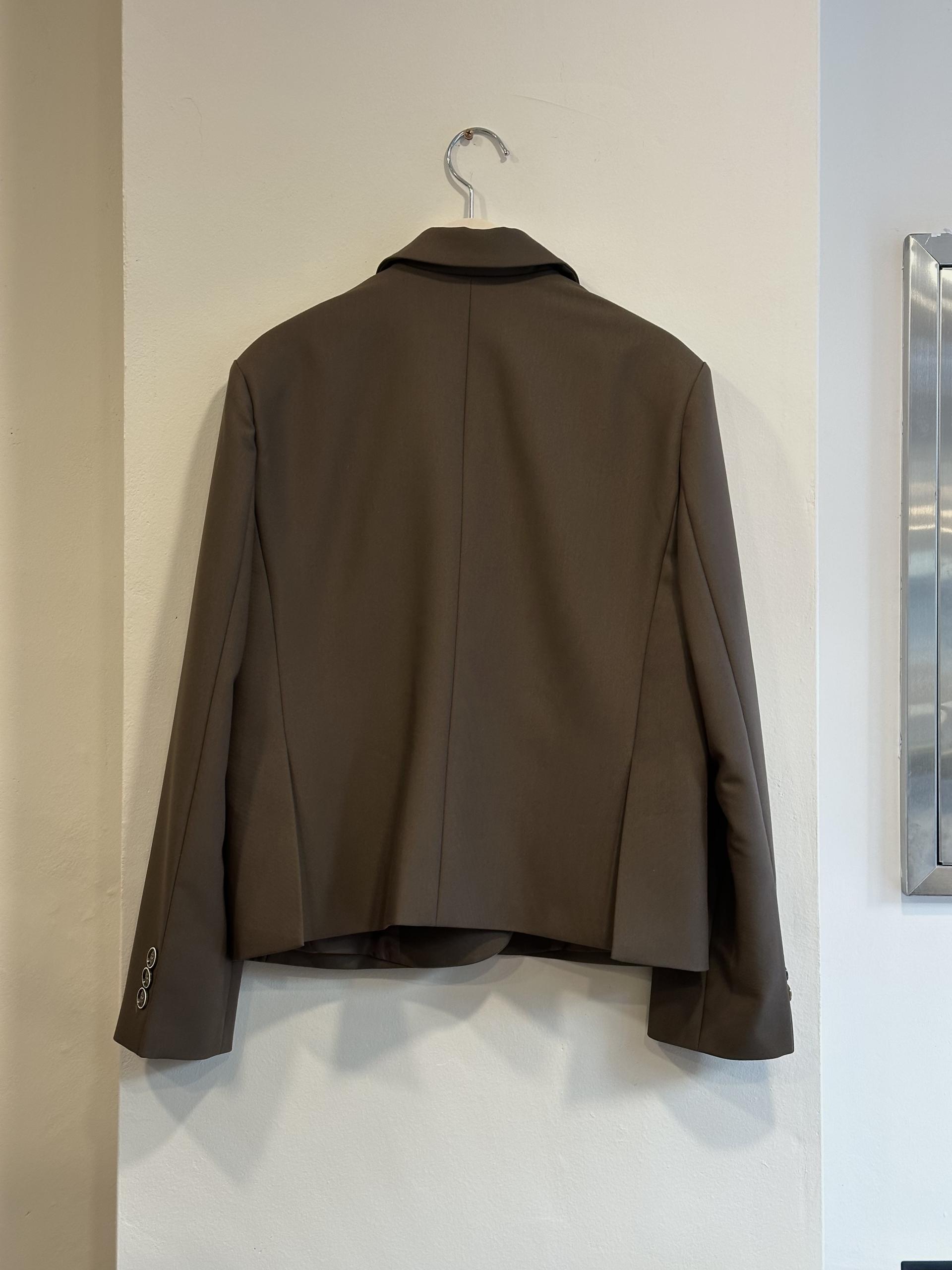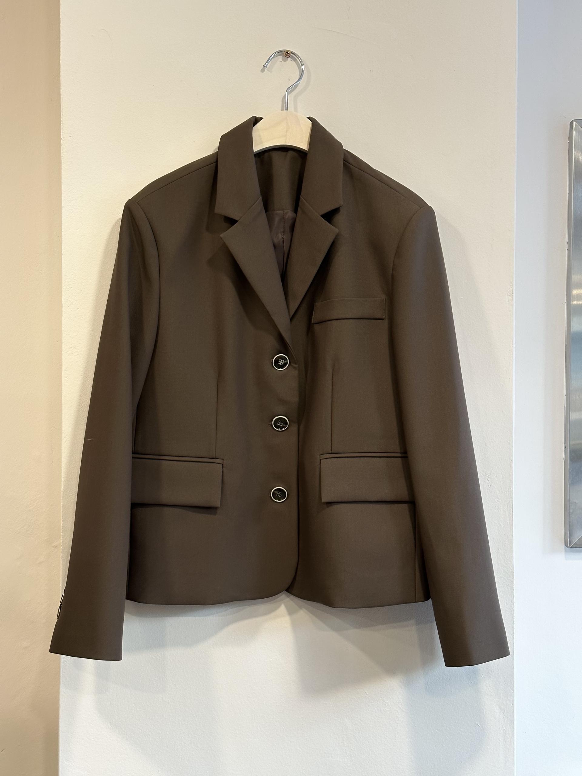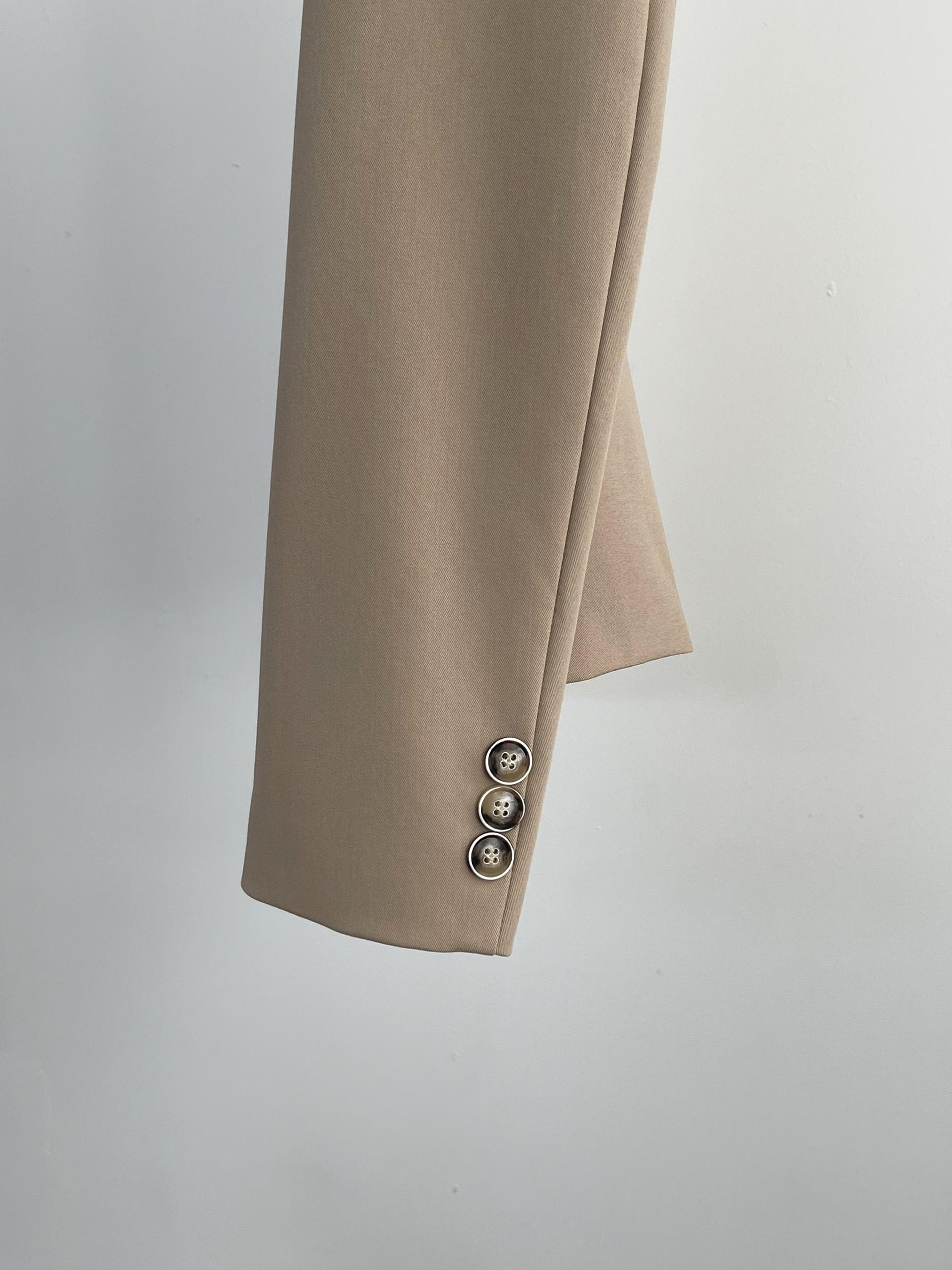 - 프론트 다트 / 싱글 브레스트 / 숄더 패드 / 플랩 포켓 / 소매 쓰리 버튼