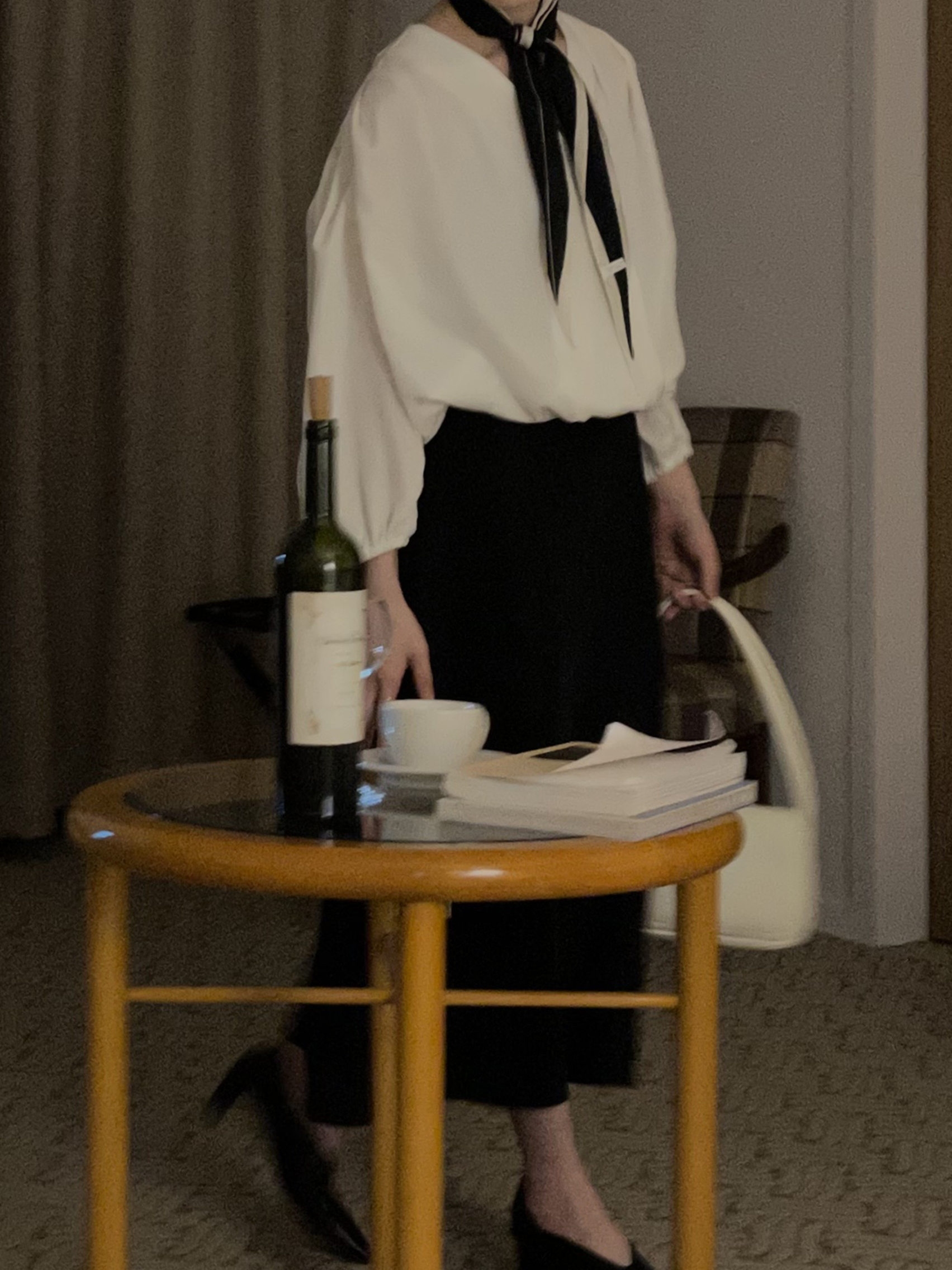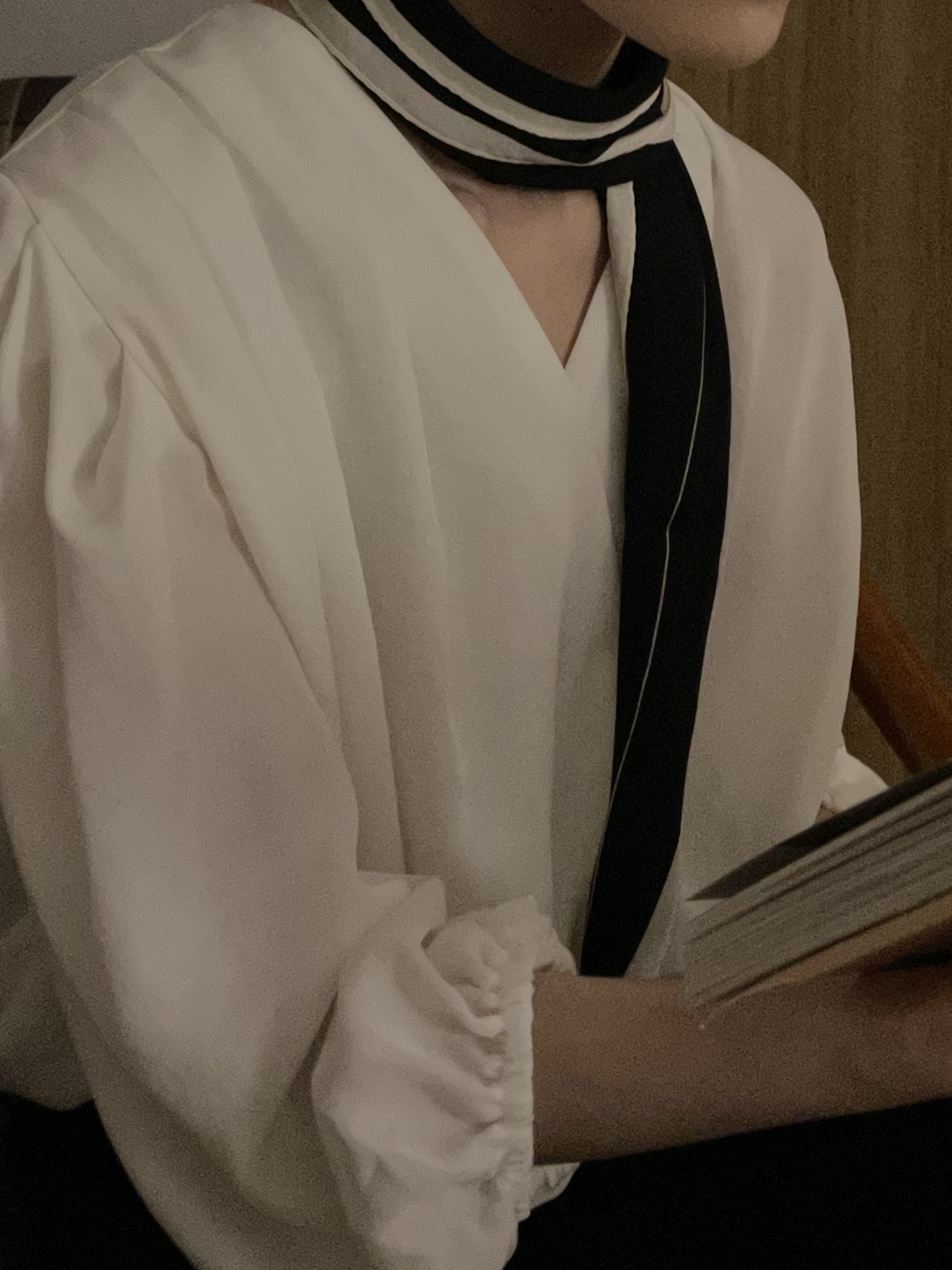 구김이 크지 않은 도톰한 크레이프로 만들어졌으며 본래 광택감