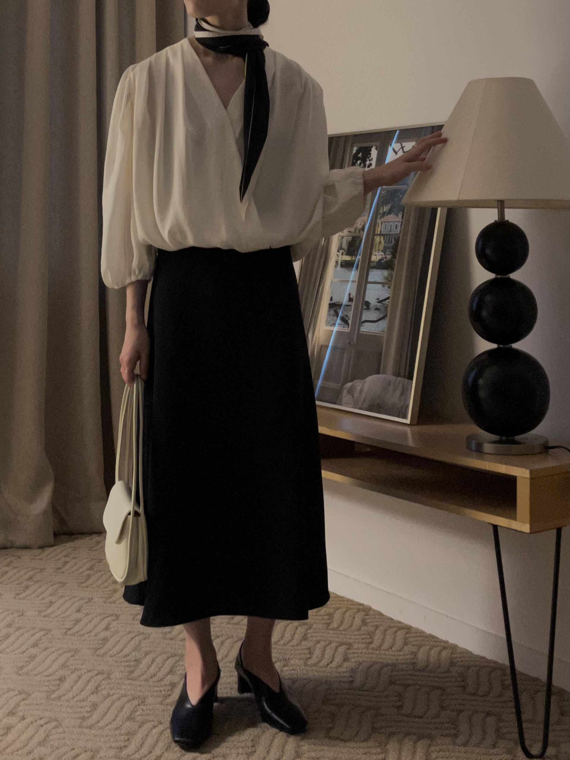 예쁘게 떨어지는 우아한 실루엣의 스커트랍니다.